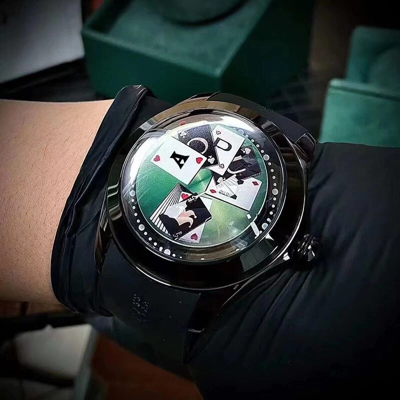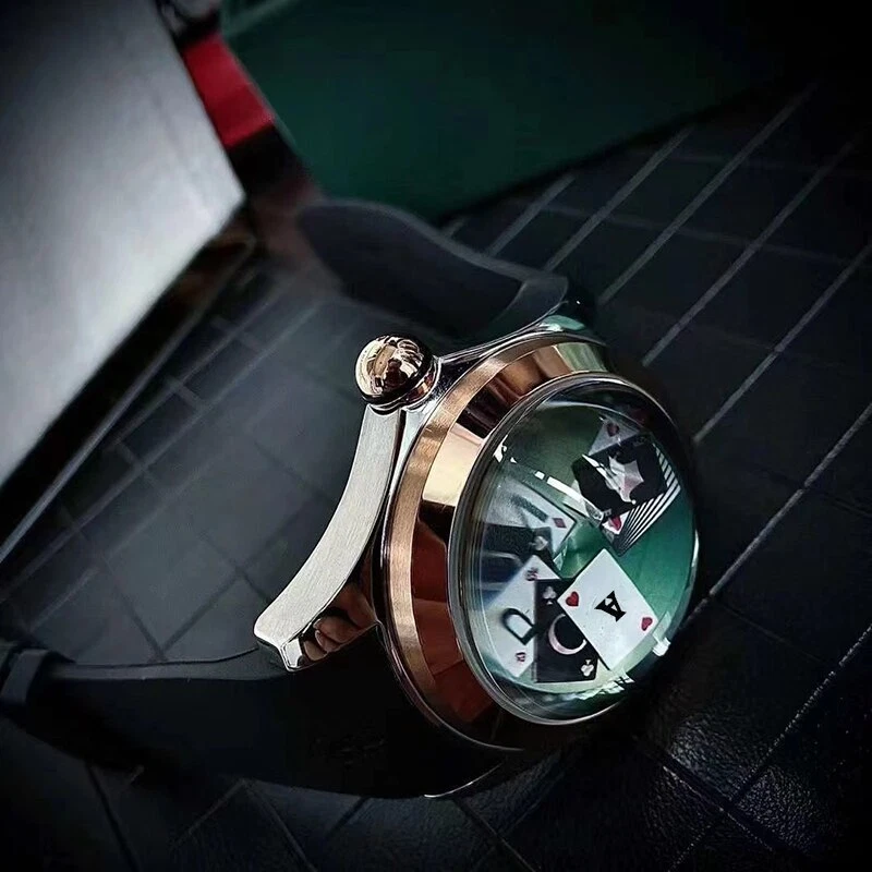 New Arrival Automatic Poker Design Bubble Glass Art and Fashion Watch