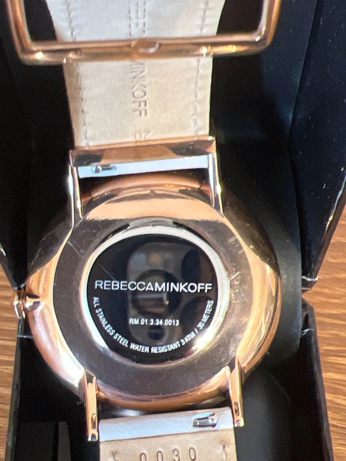 Rebecca Minkoff Stainless Steel Quartz Rose Gold Watch, New Battery. VG Cond.