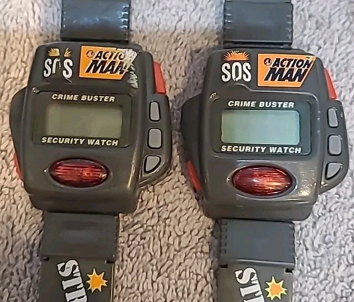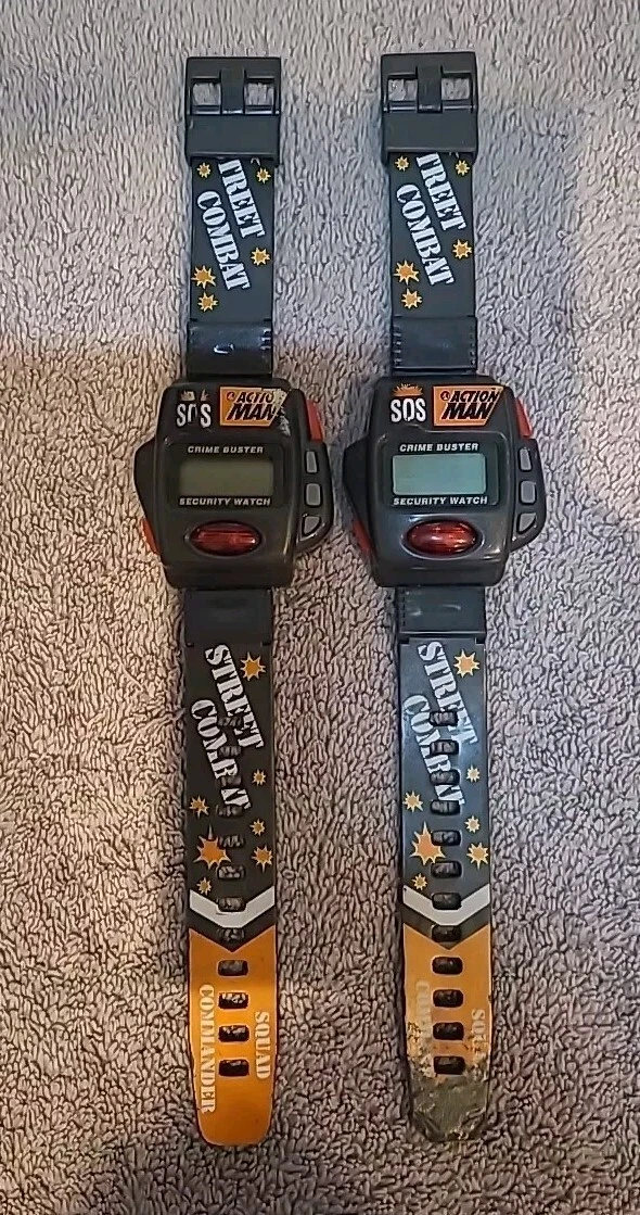 Pair Of Vintage RARE 1996 Hasbro Action Man 'Crime Buster' Toy Watches As Seen