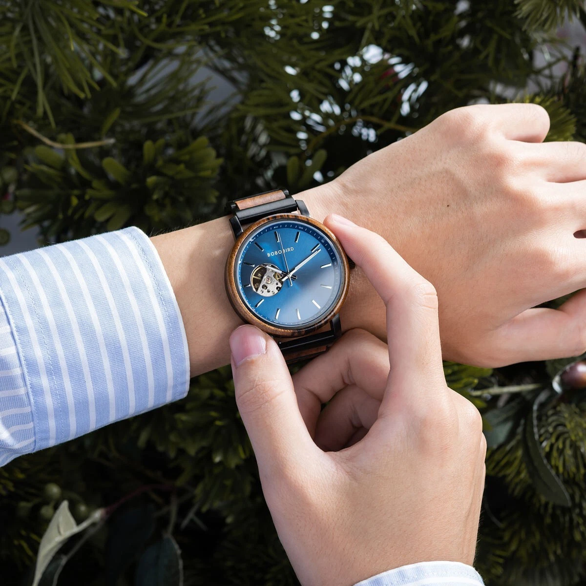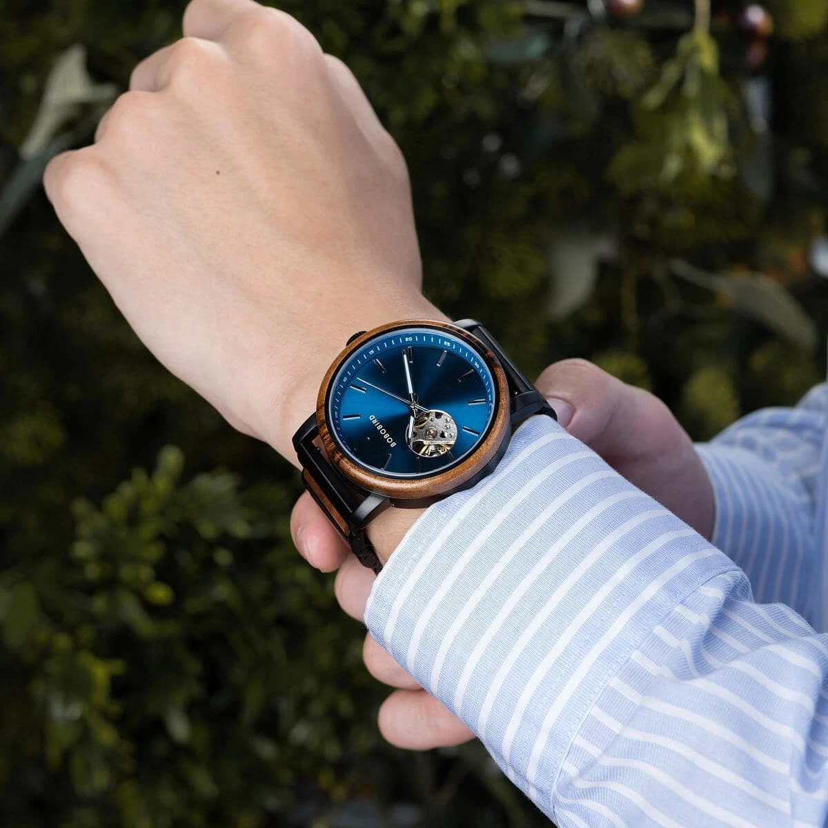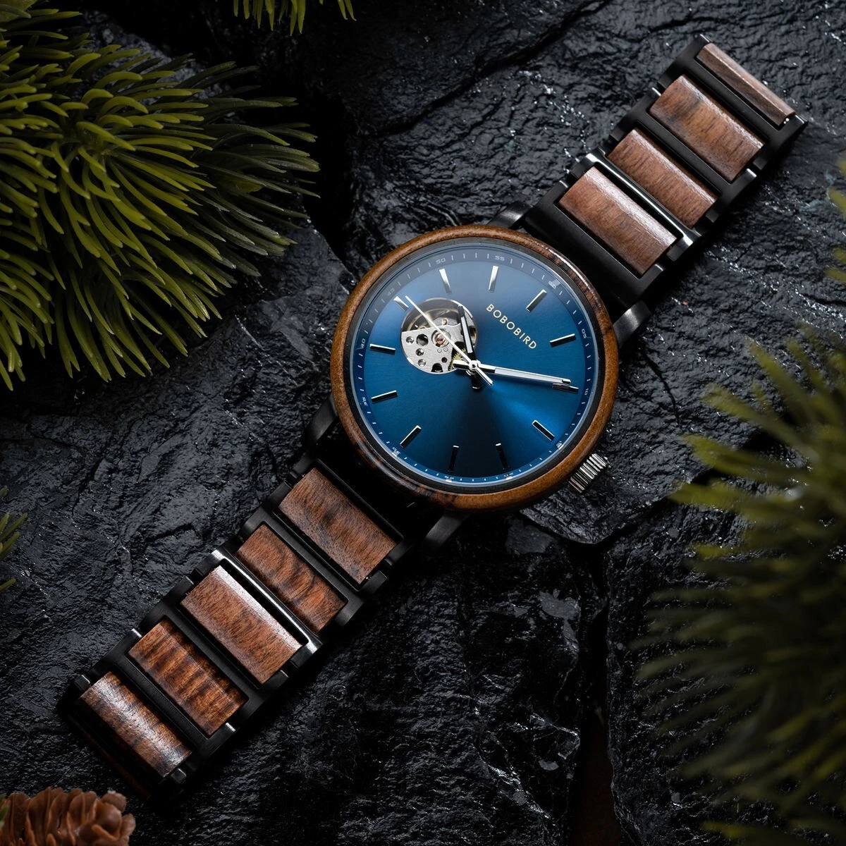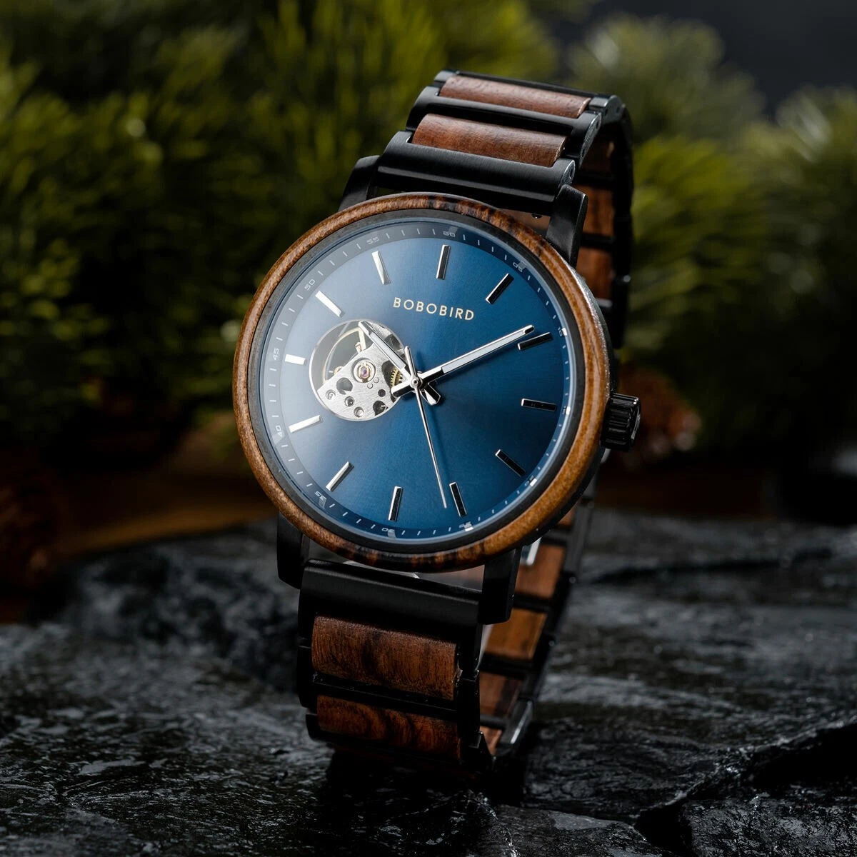 Engraved Watch, Mens Watch, Wooden Watch, Automatic Watch | 1 year anniversary