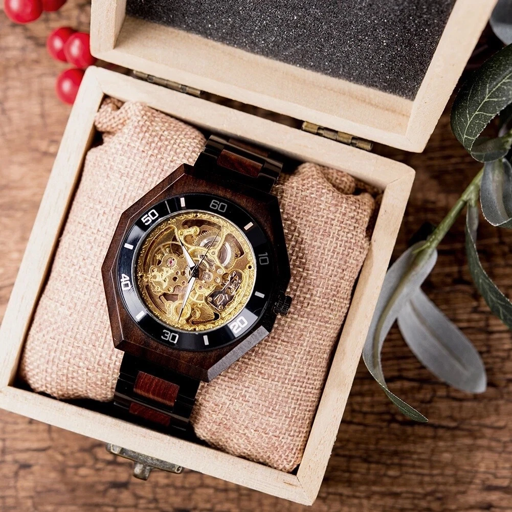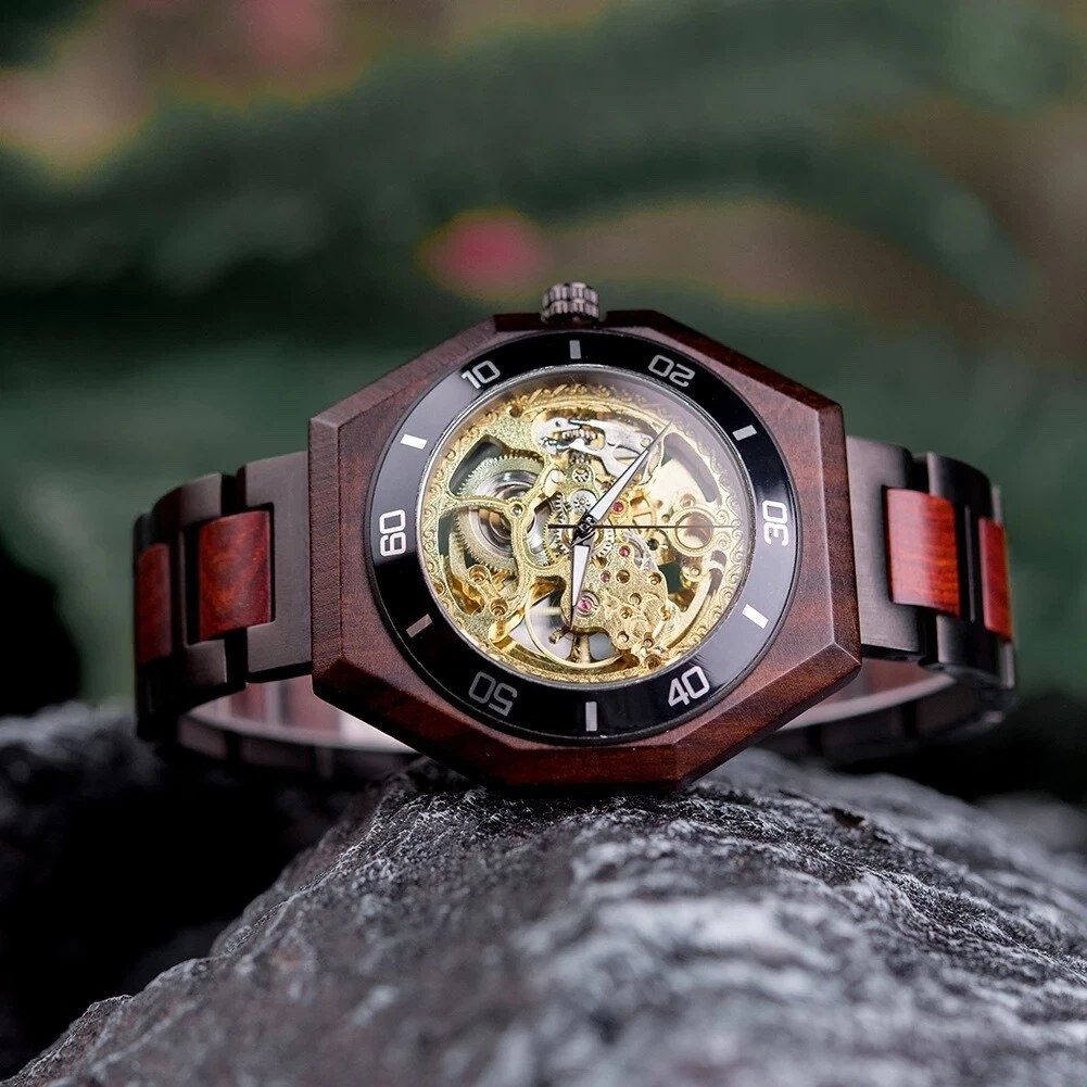 Successful Men's Metallic Wooden Automatic Mechanical Vintage gift Watch