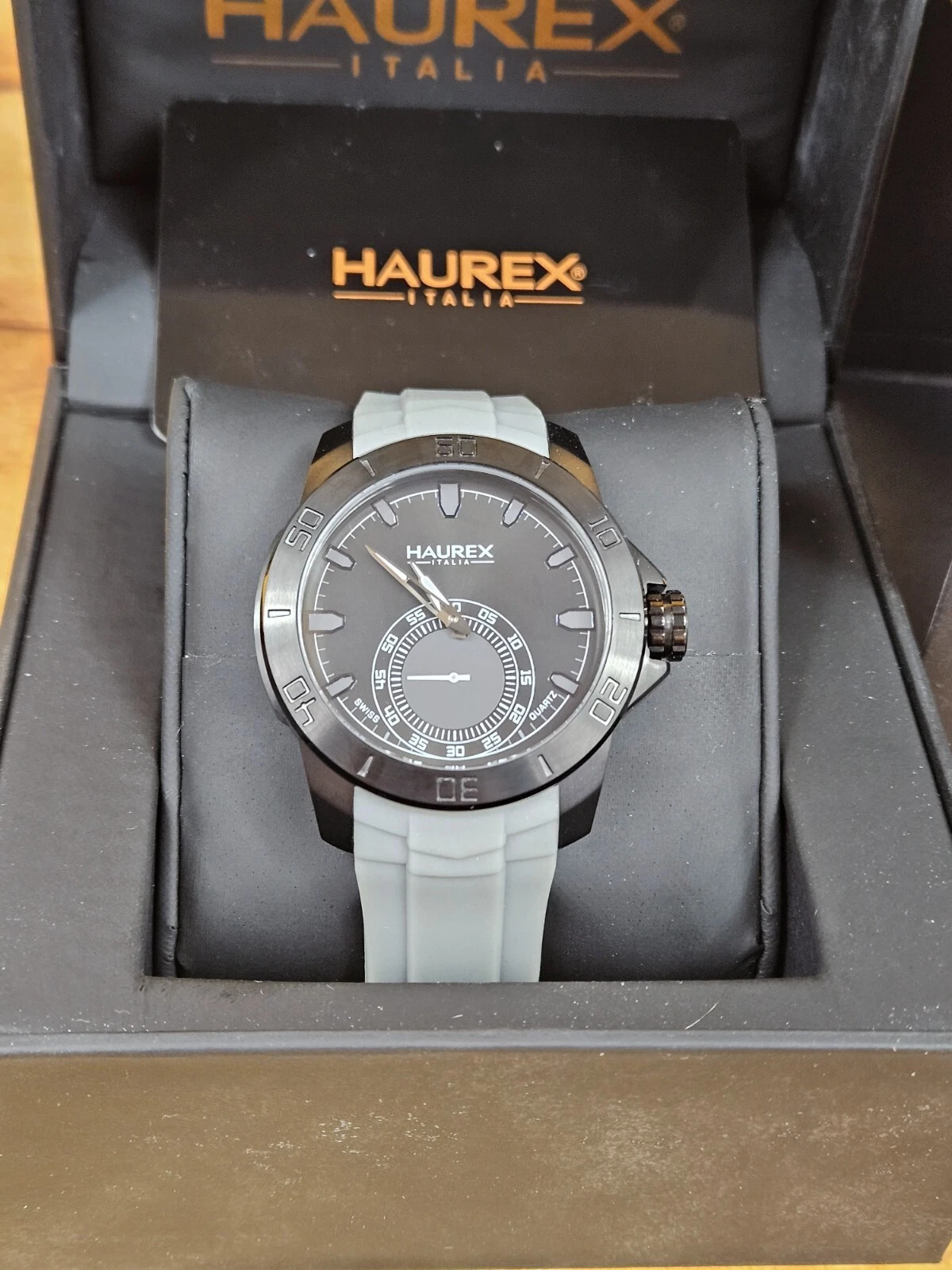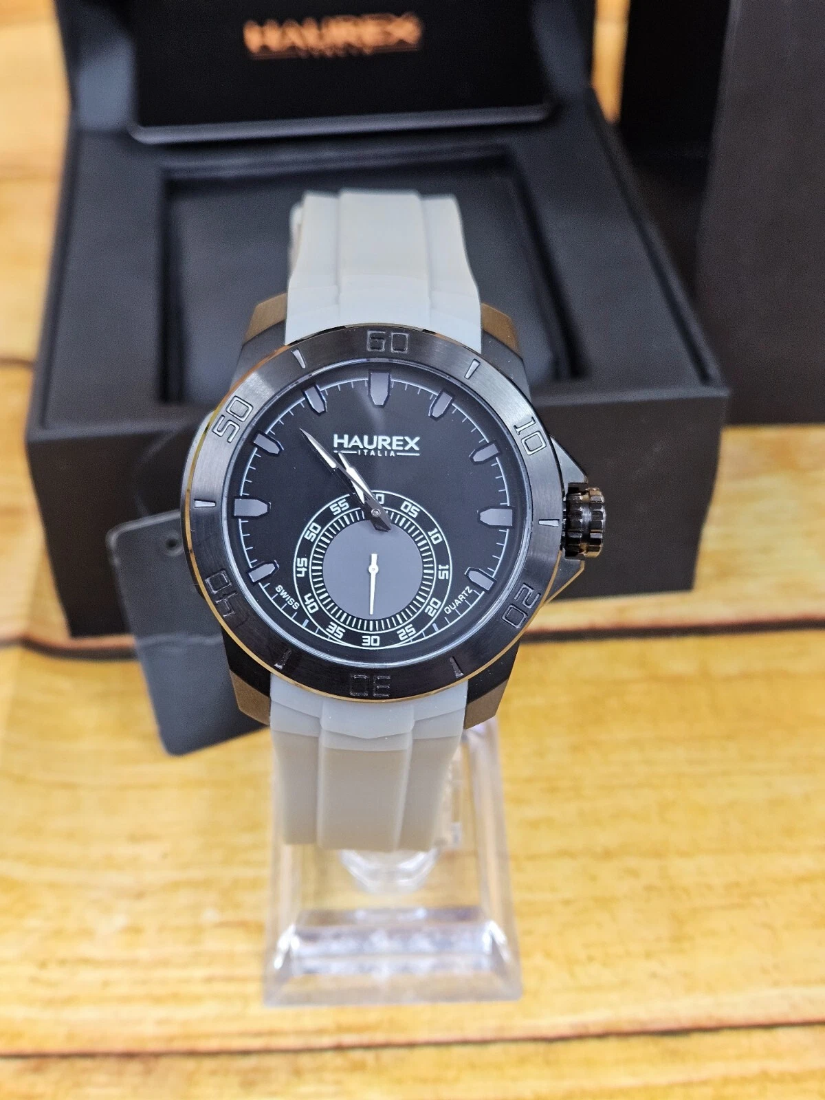 Haurex Italy Men's 3N503UJJ Acros Black Coated Steel Grey Rubber Strap Watch