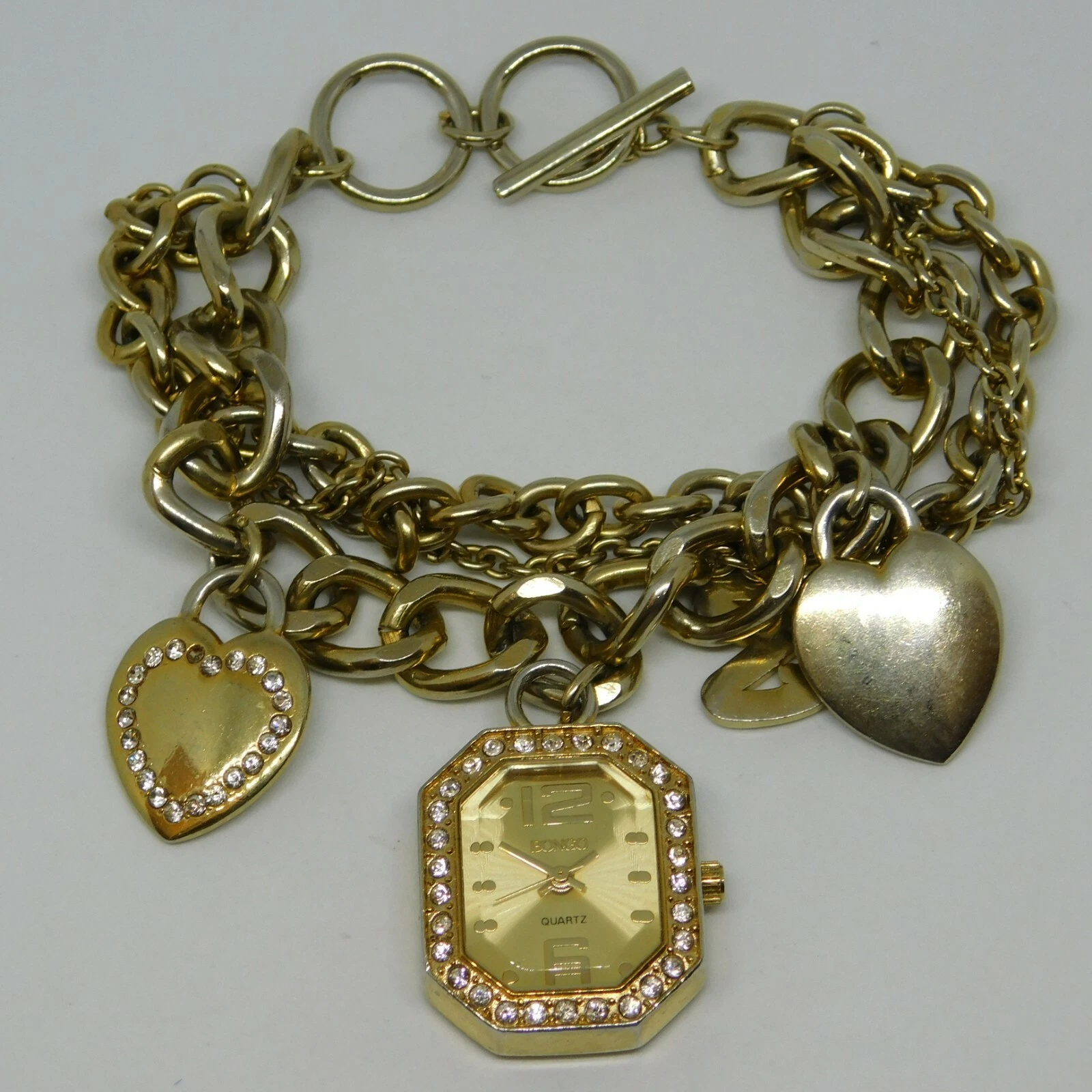 BONGO #BG2482 Charm Bracelet Quartz Analog Women's Watch Sz. 6 3/4" New Battery