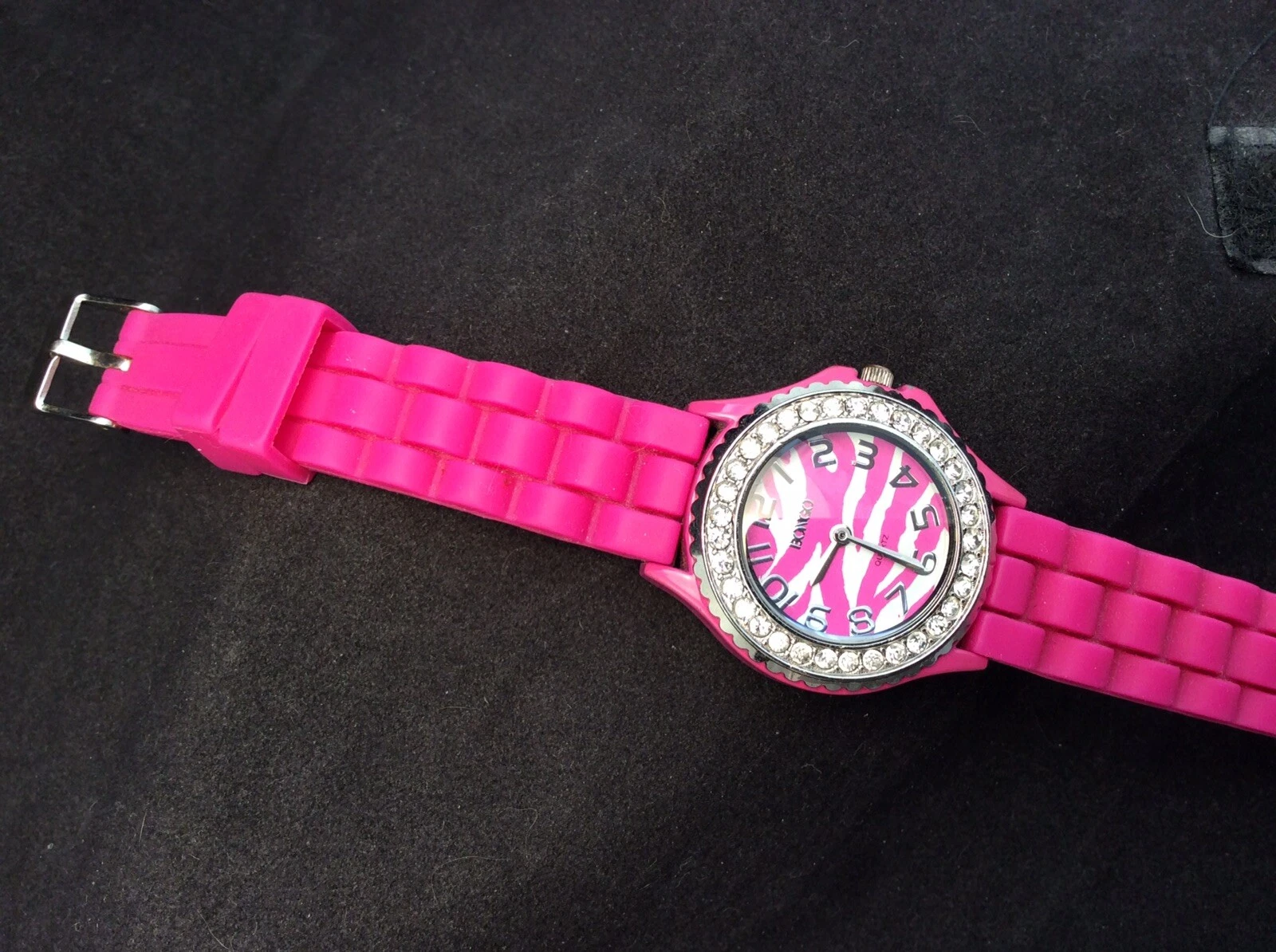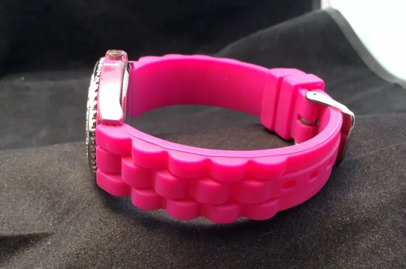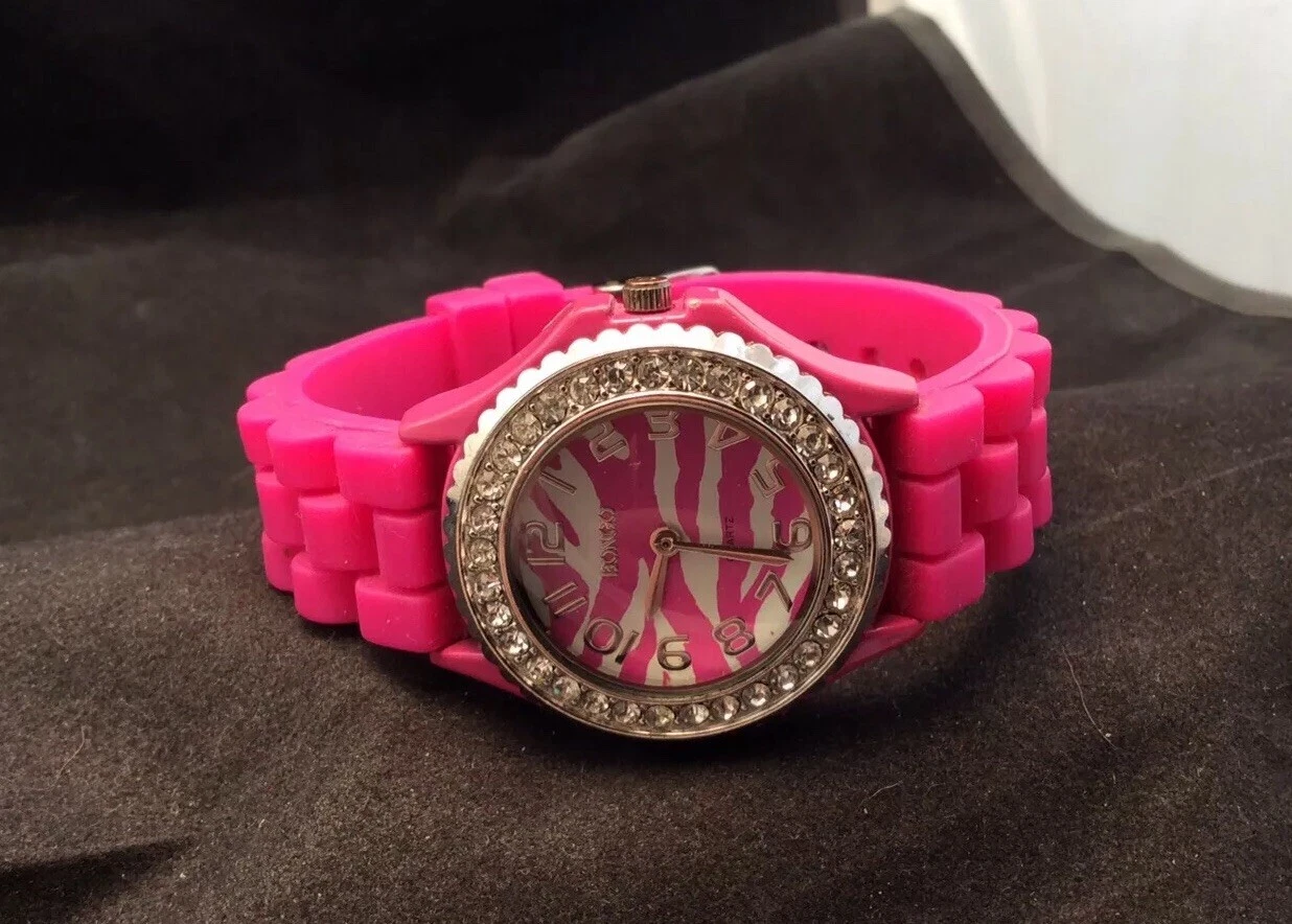 Ladies Pink Tiger Stripes Face Silicon Bracelet Bongo Quartz Watch New Battery