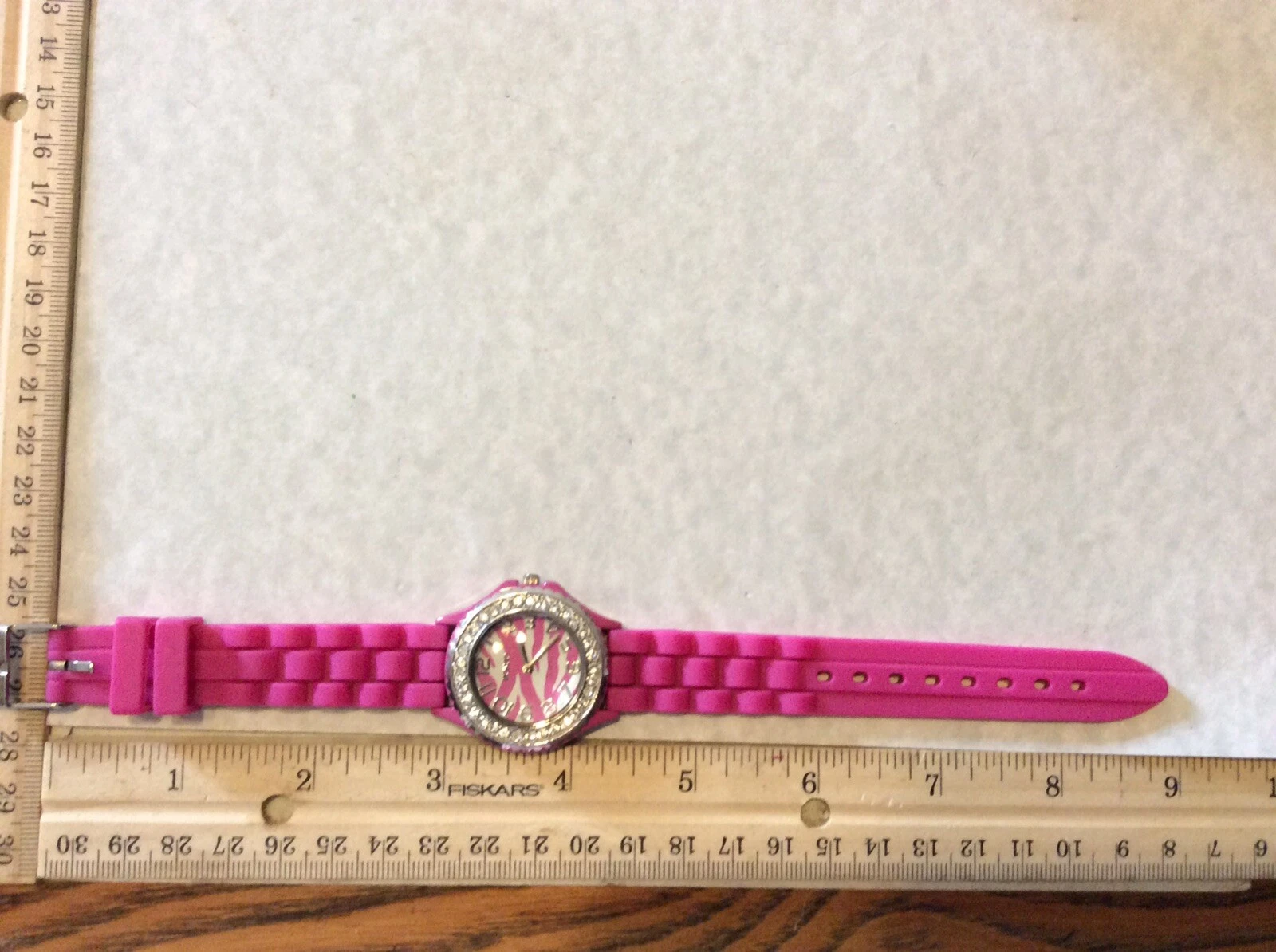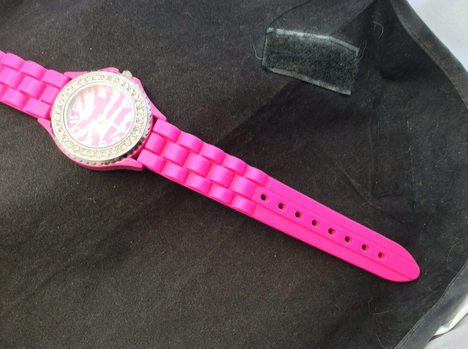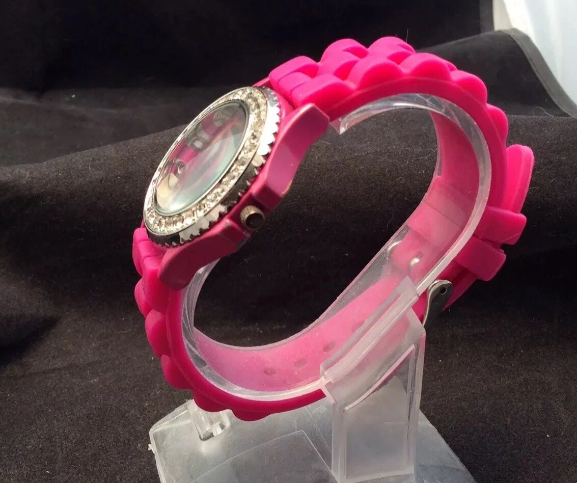 Ladies Pink Tiger Stripes Face Silicon Bracelet Bongo Quartz Watch New Battery