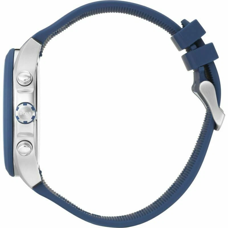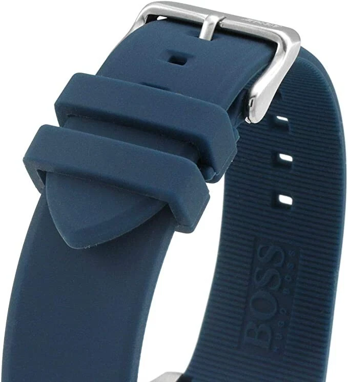 NEW GENUINE HUGO BOSS VELOCITY HB1513717 BLUE SILICONE STRAP & BLACK MENS WATCH