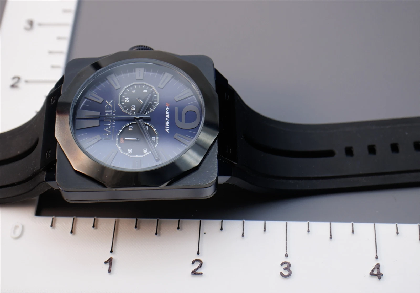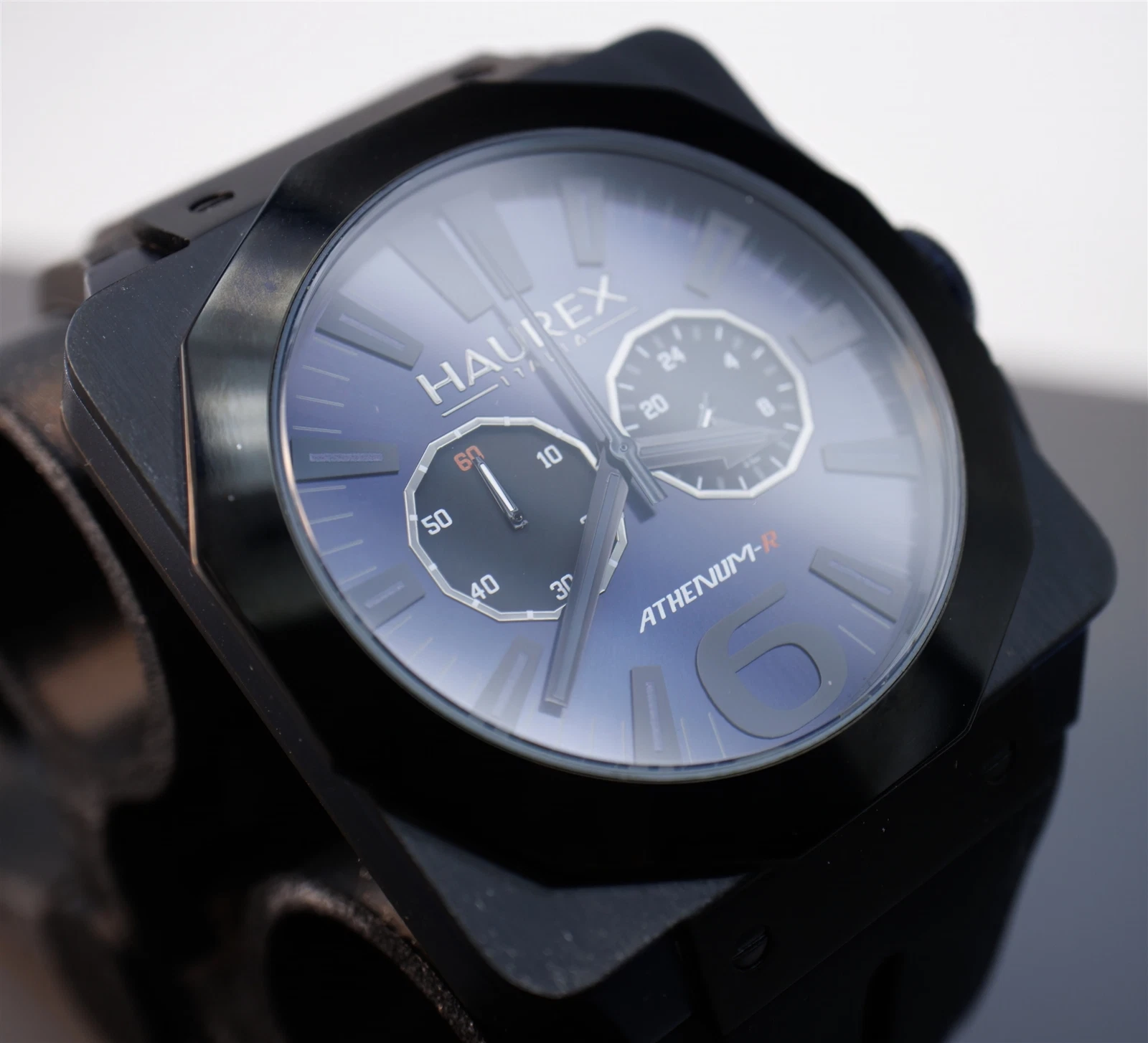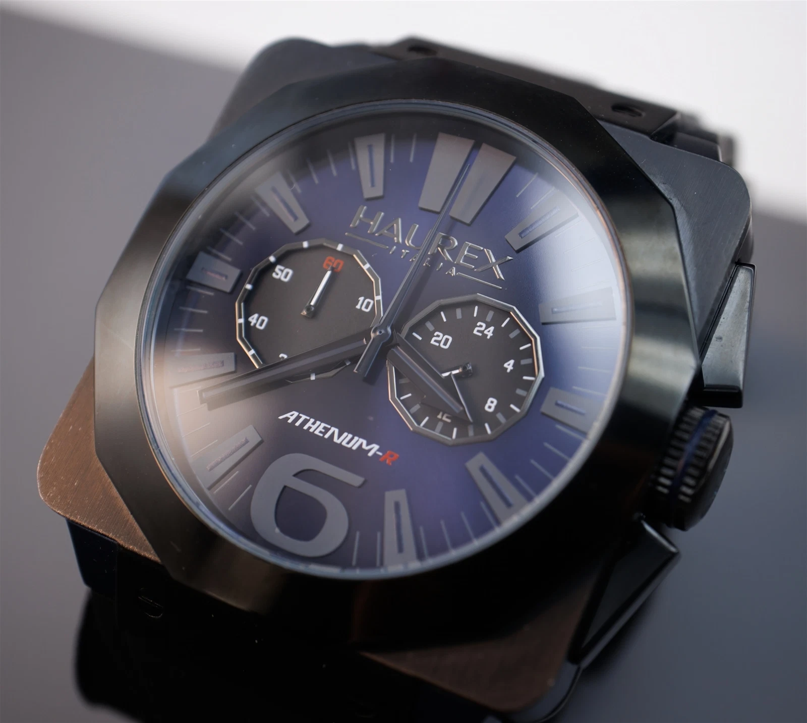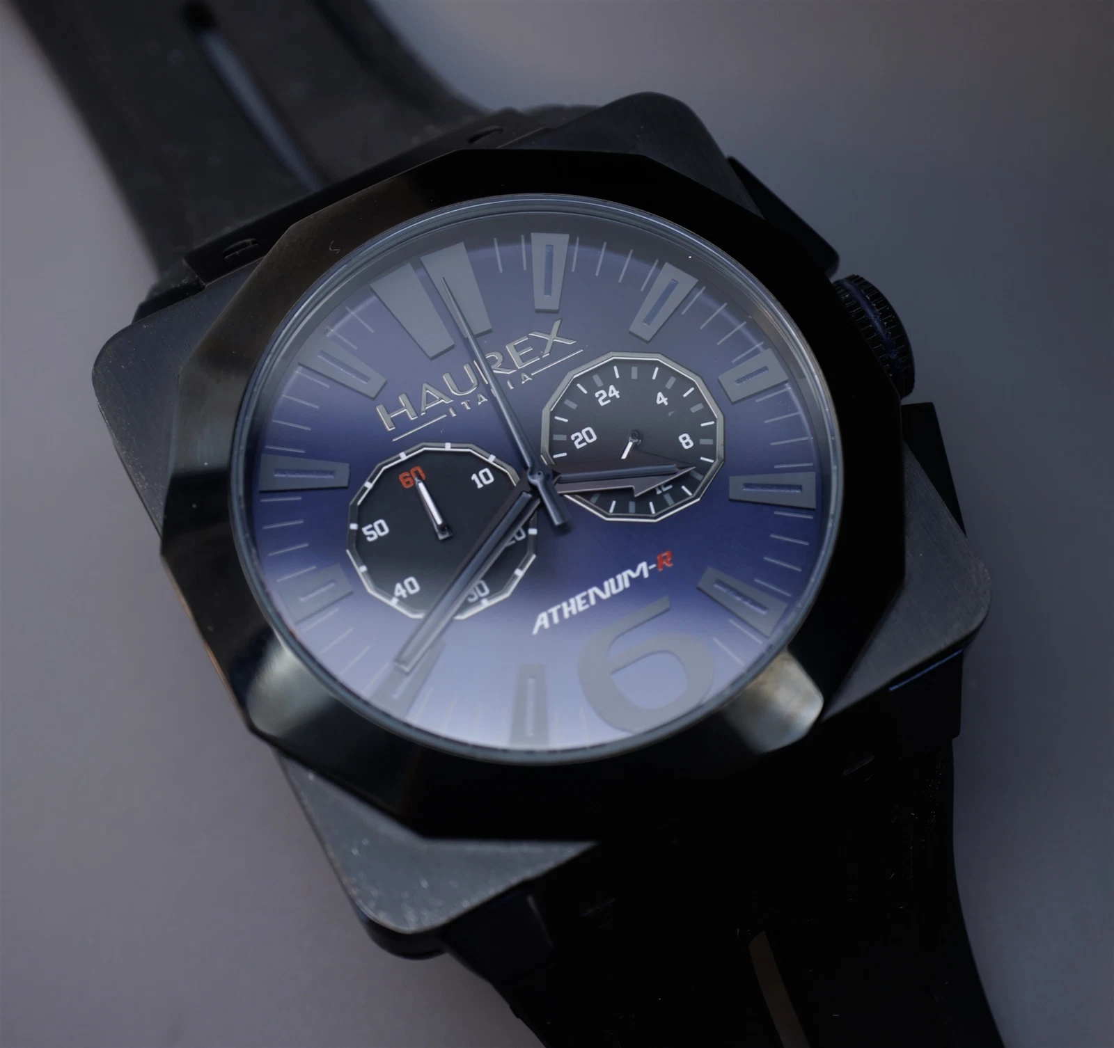 Haurex Athenium-R Square Chronograph Watch Blue /Black Fume Dial 3N372UNB