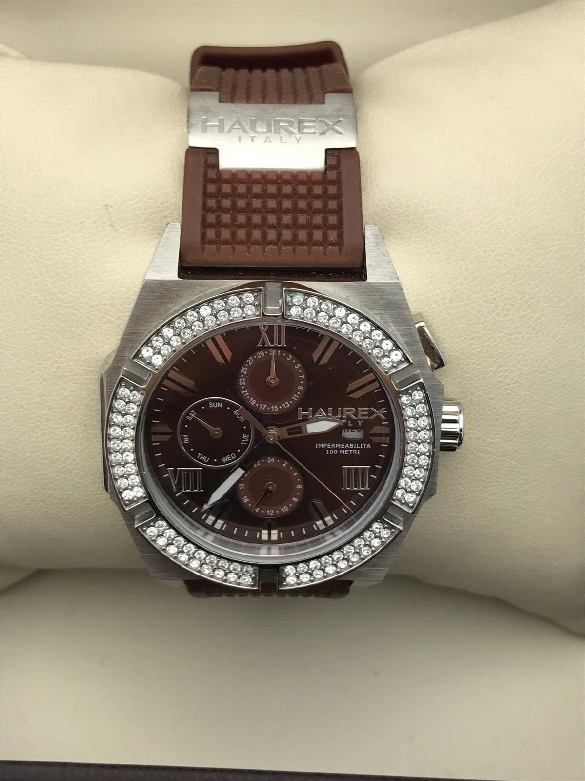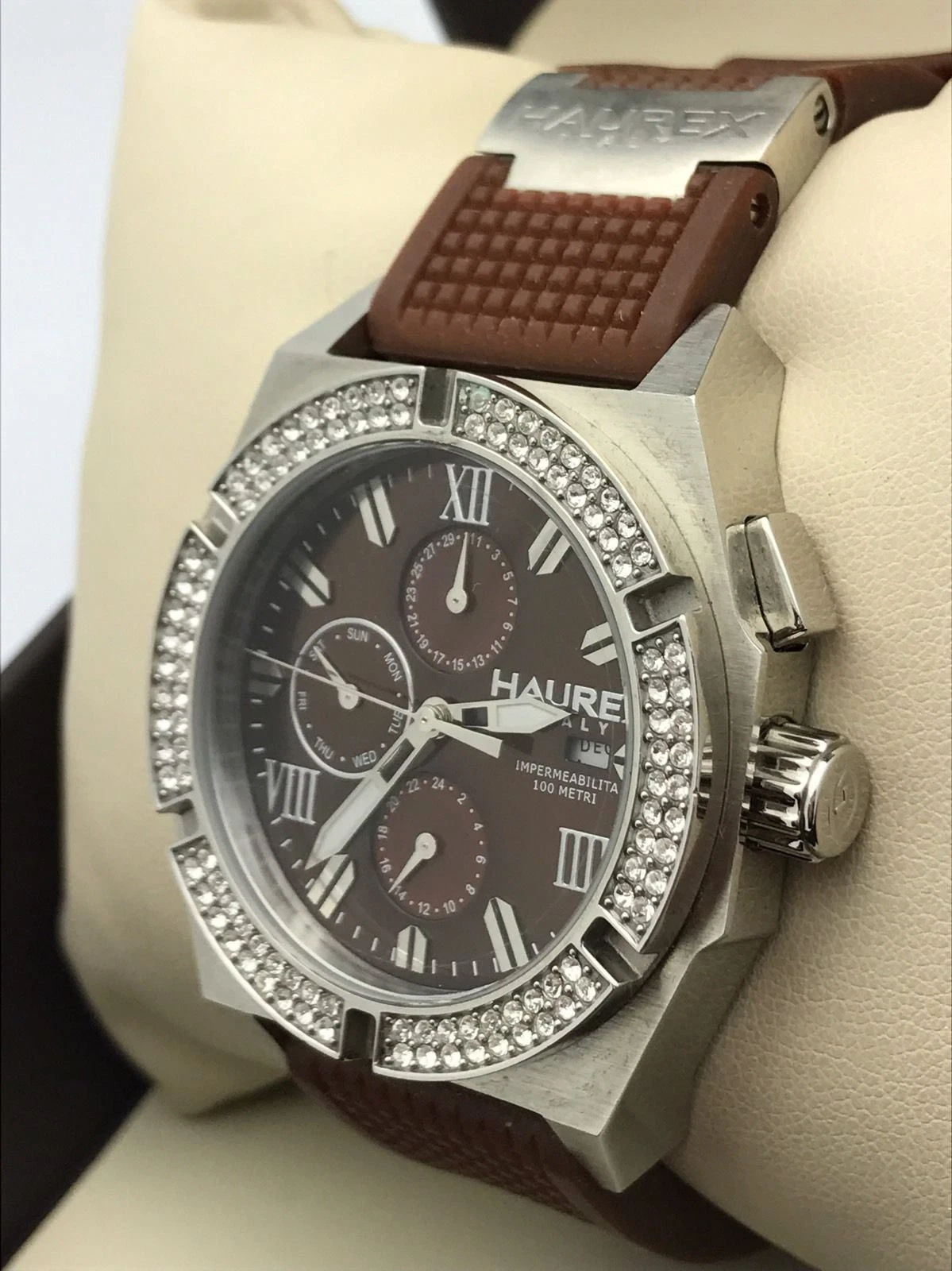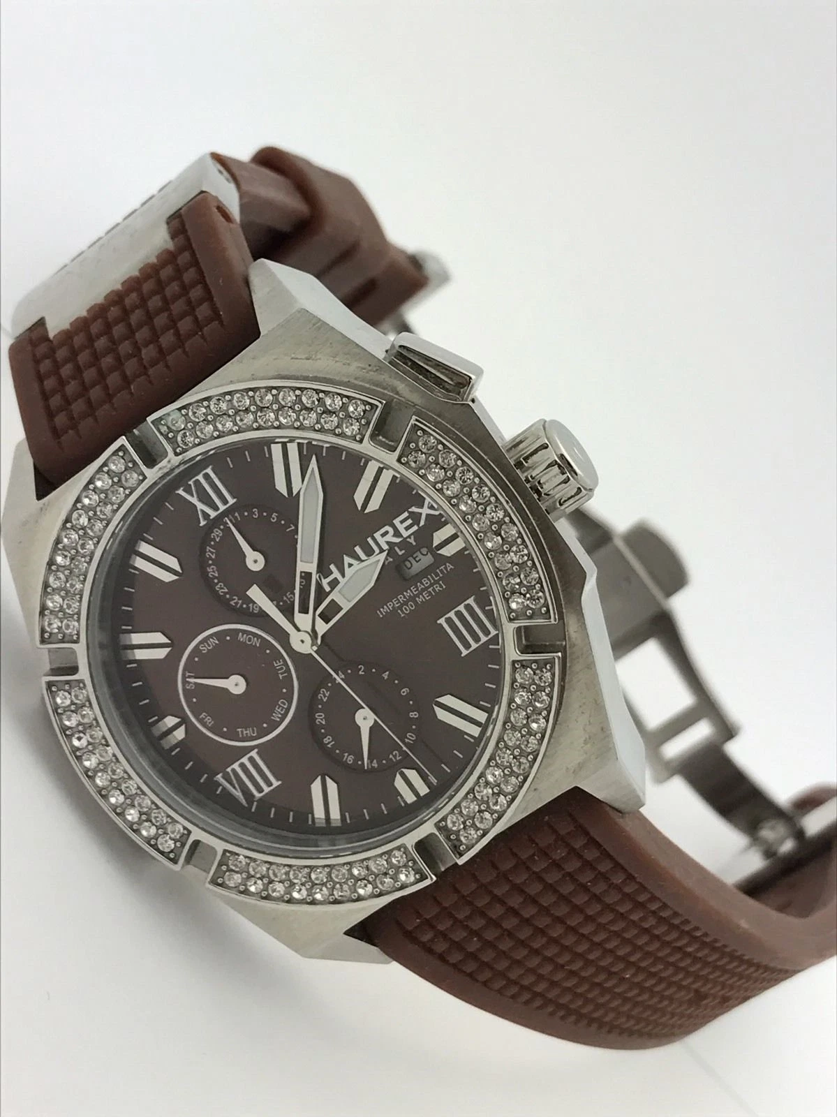 Haurex Italia Challenger Brown Dial and Rubber Chronograph Unisex Watch 1S305DMH