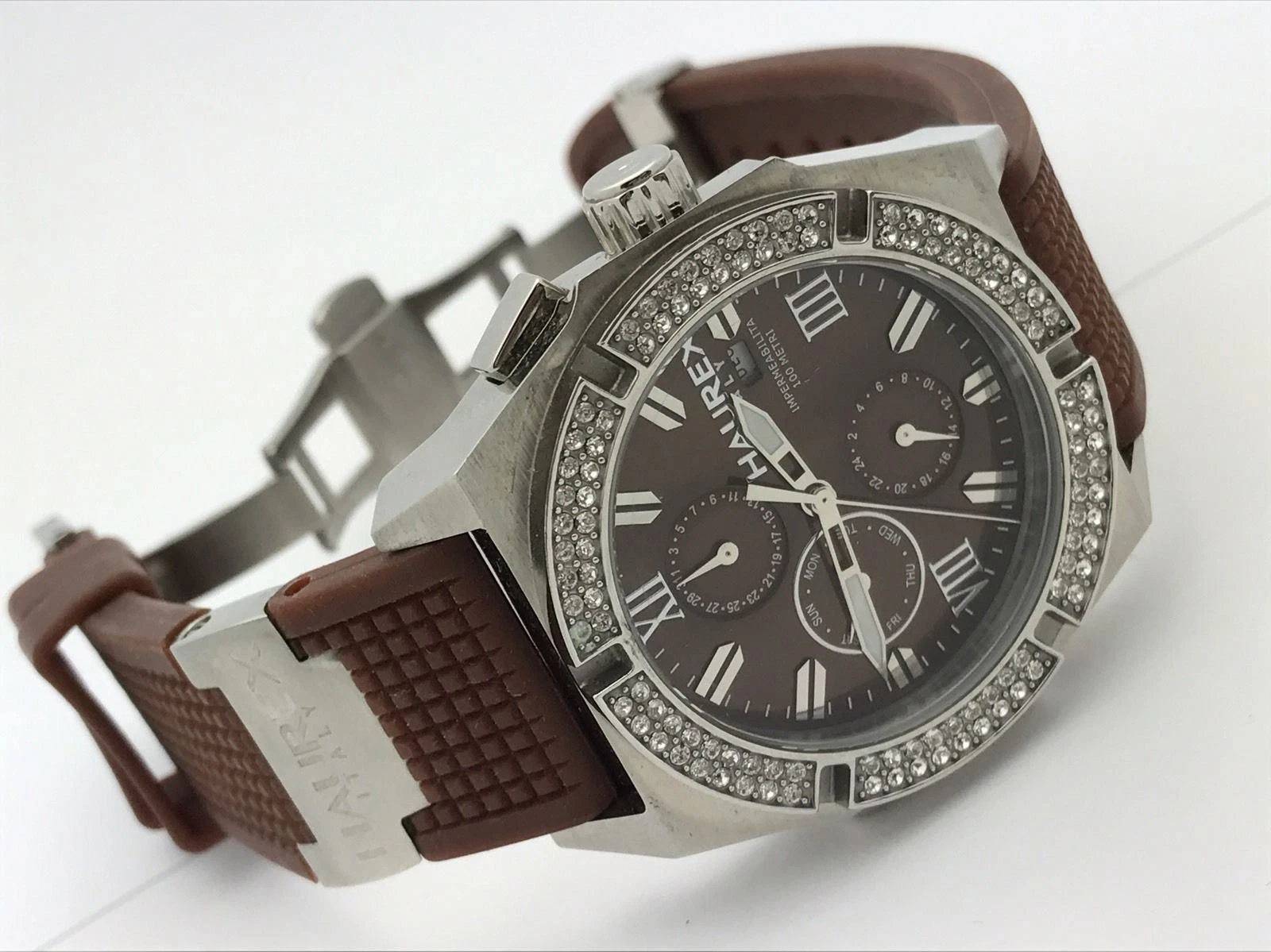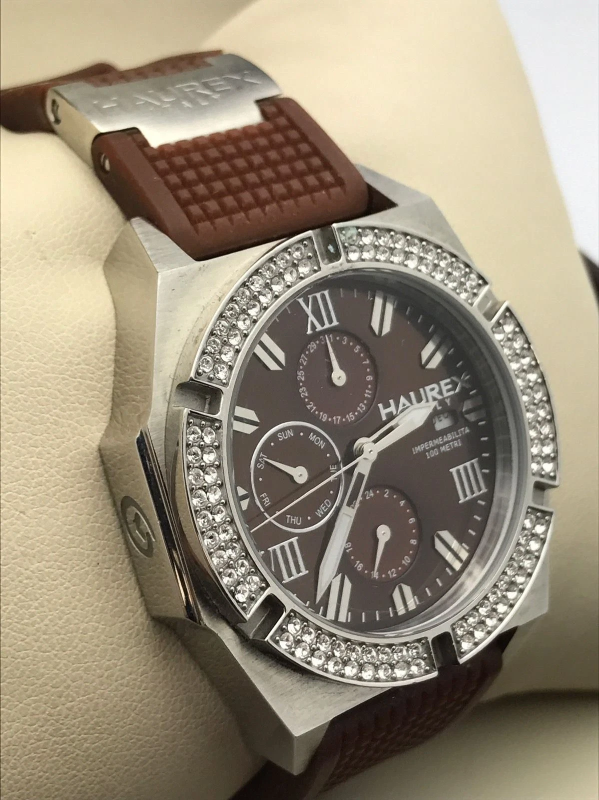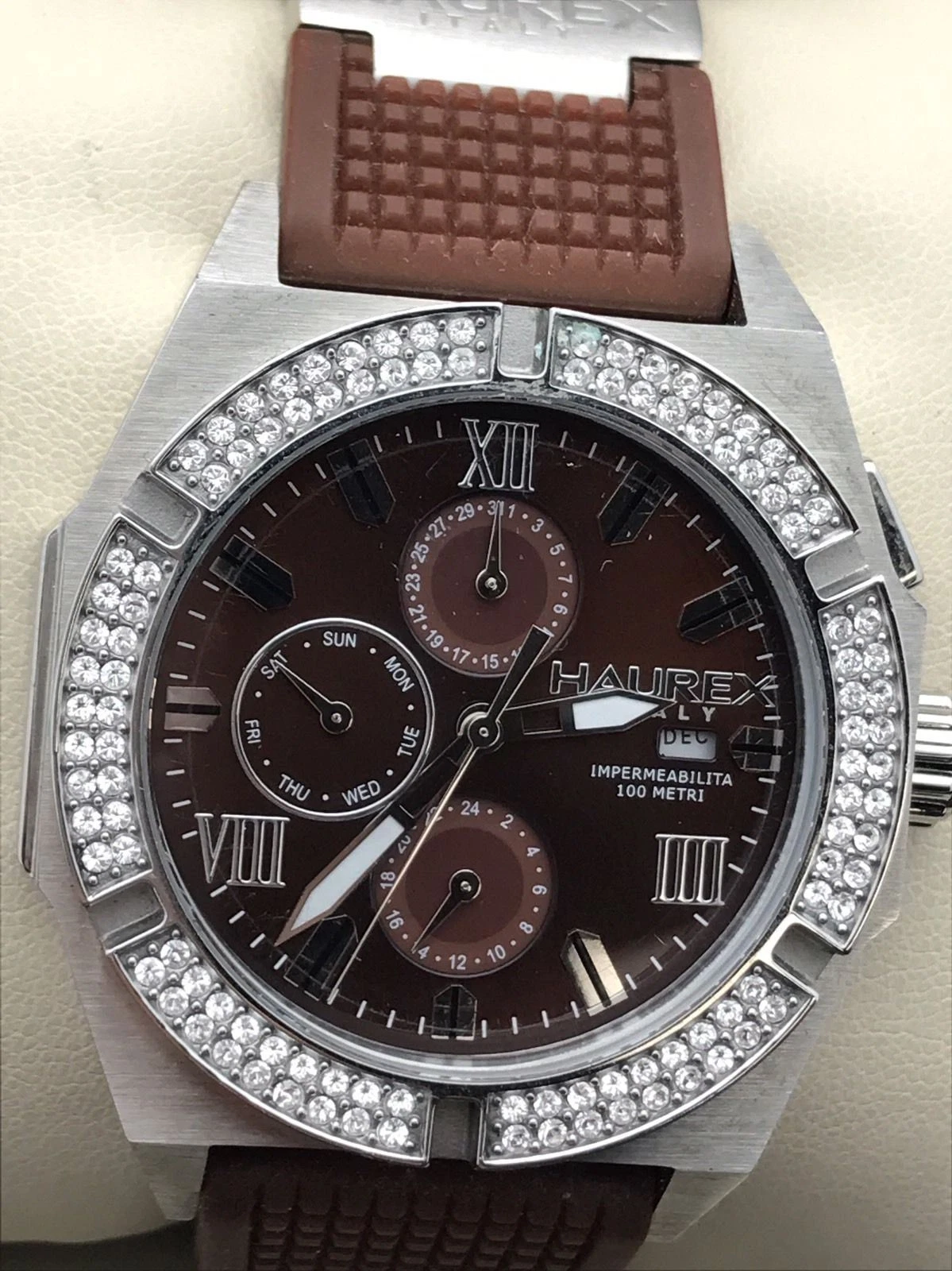 Haurex Italia Challenger Brown Dial and Rubber Chronograph Unisex Watch 1S305DMH