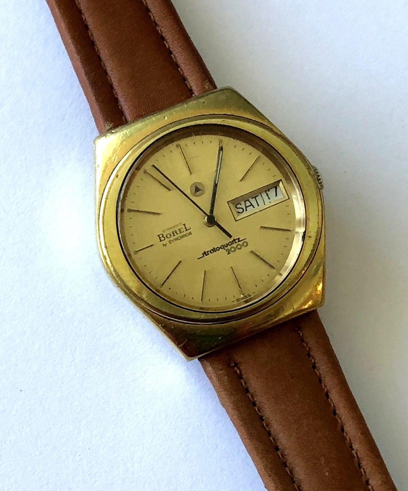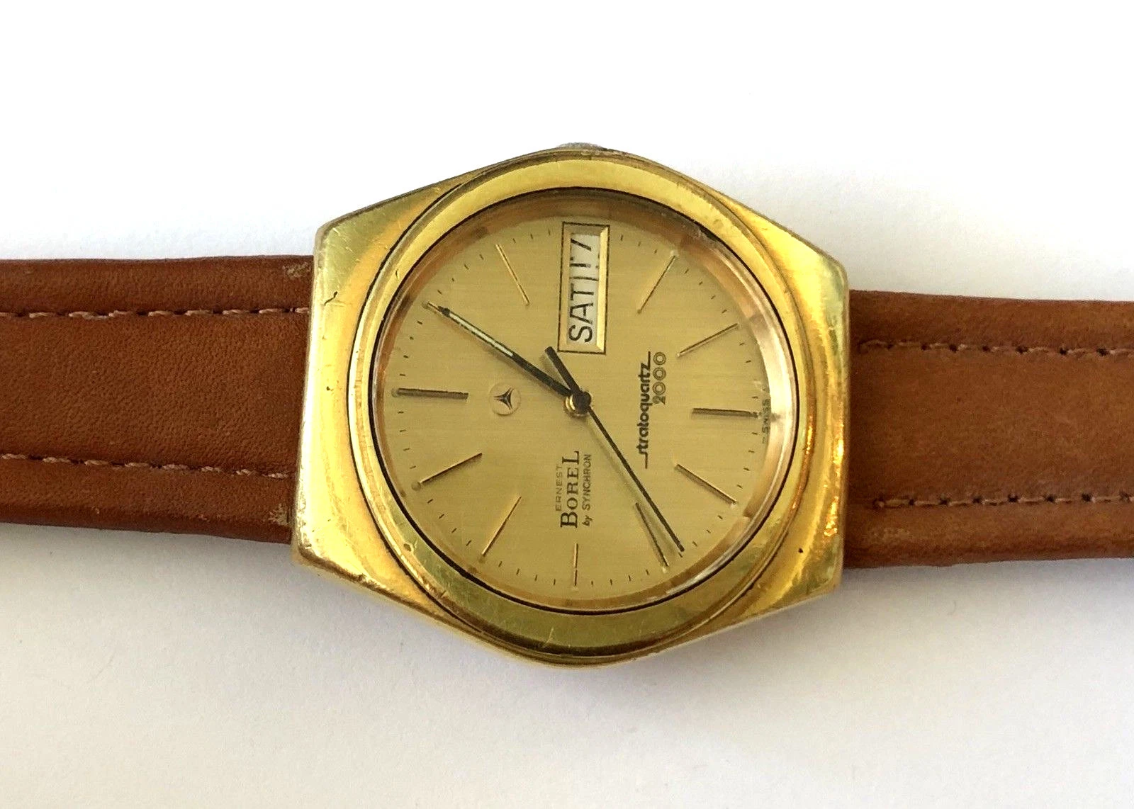Ernest Borel By Synchron Stratoquartz 2000 Mens Watch Runs Day Date