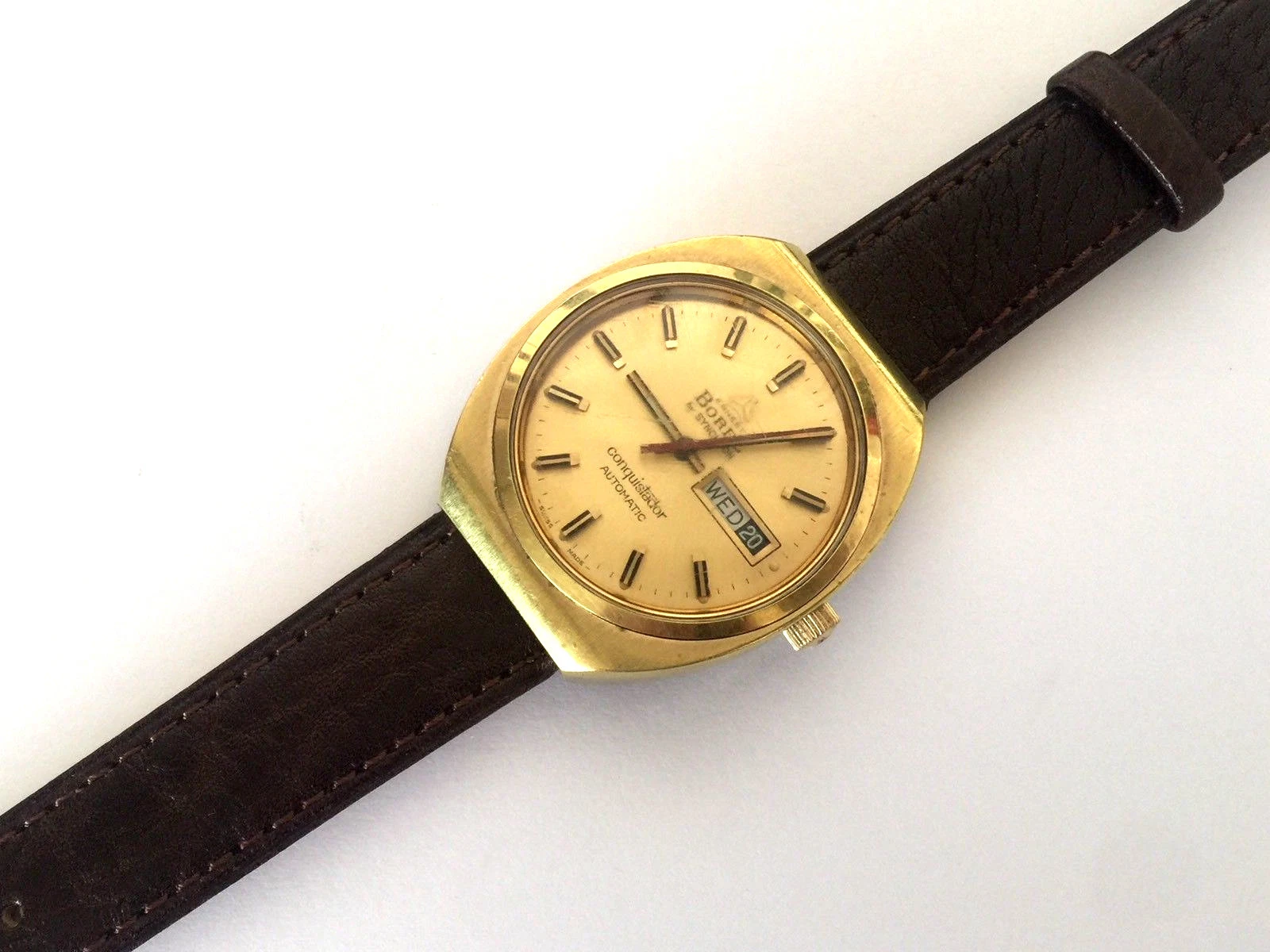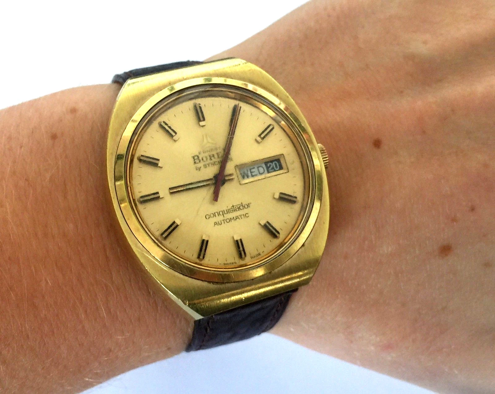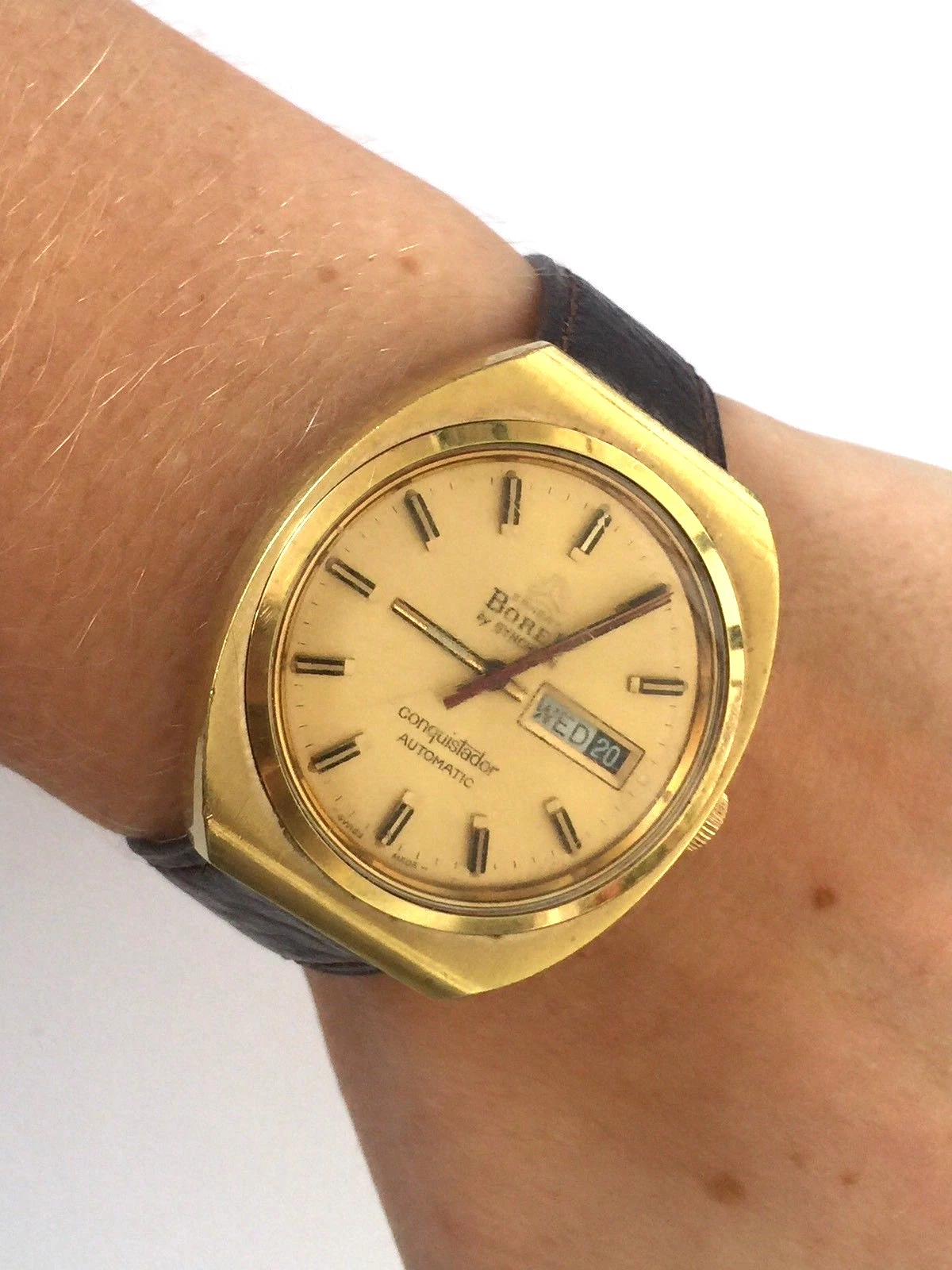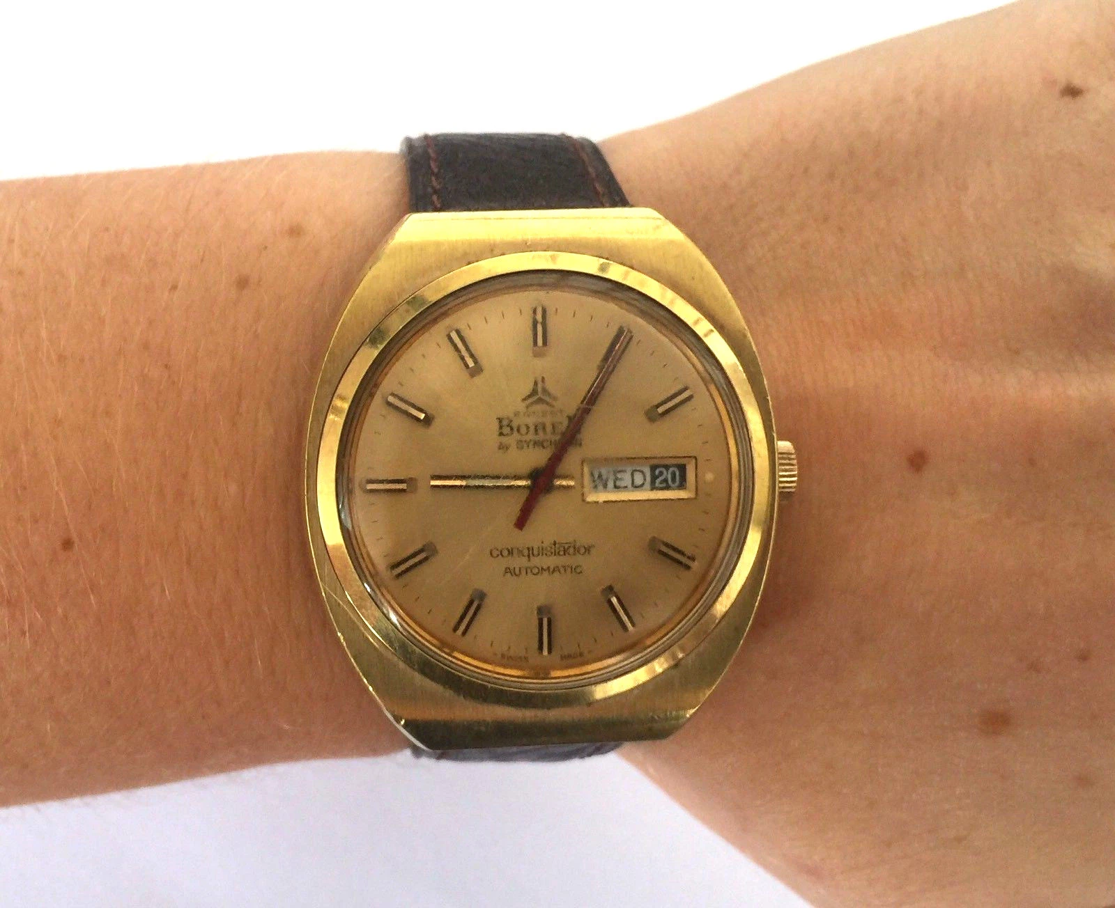 VINTAGE BOREL BY SYNCHRON CONQUISTADOR AUTOMATIC SWISS WATCH DAY DATE RUNS