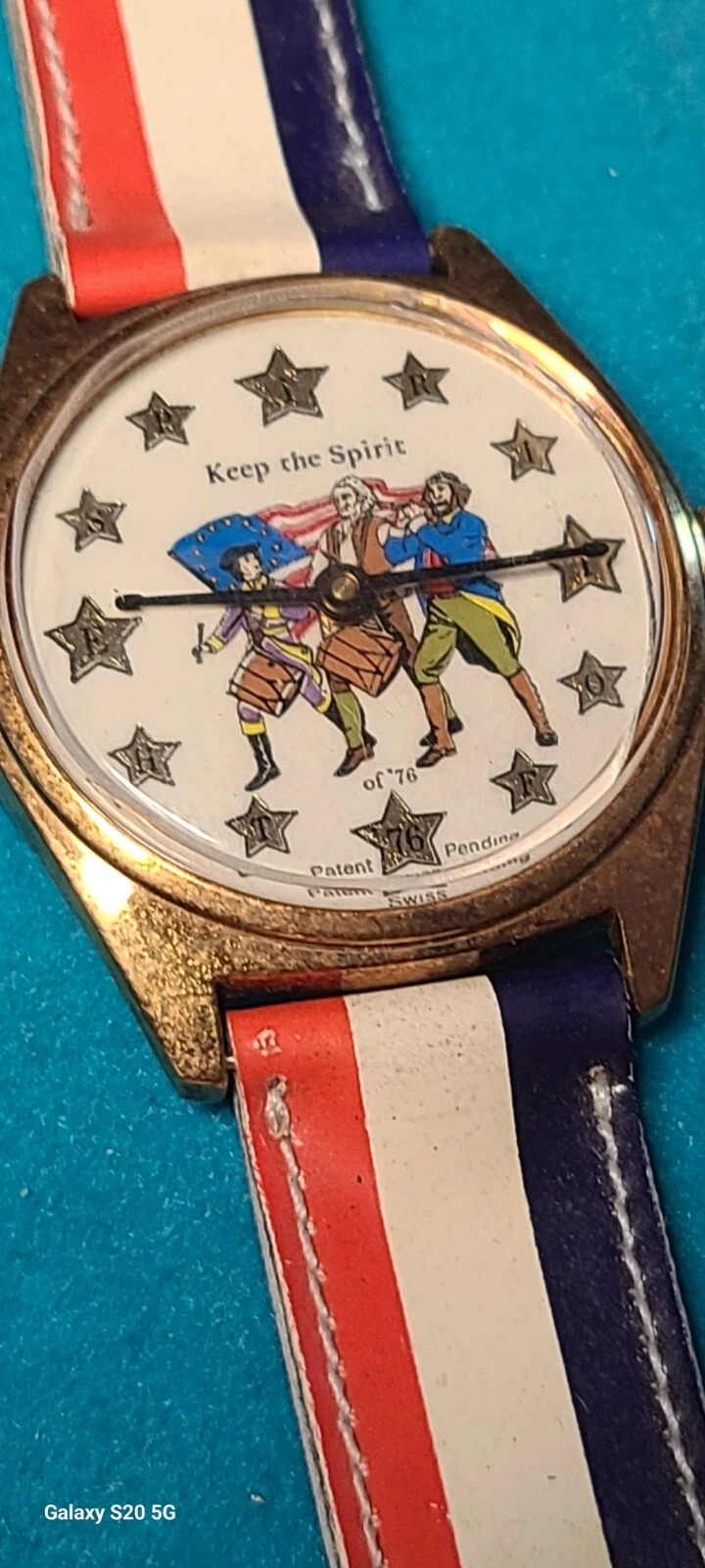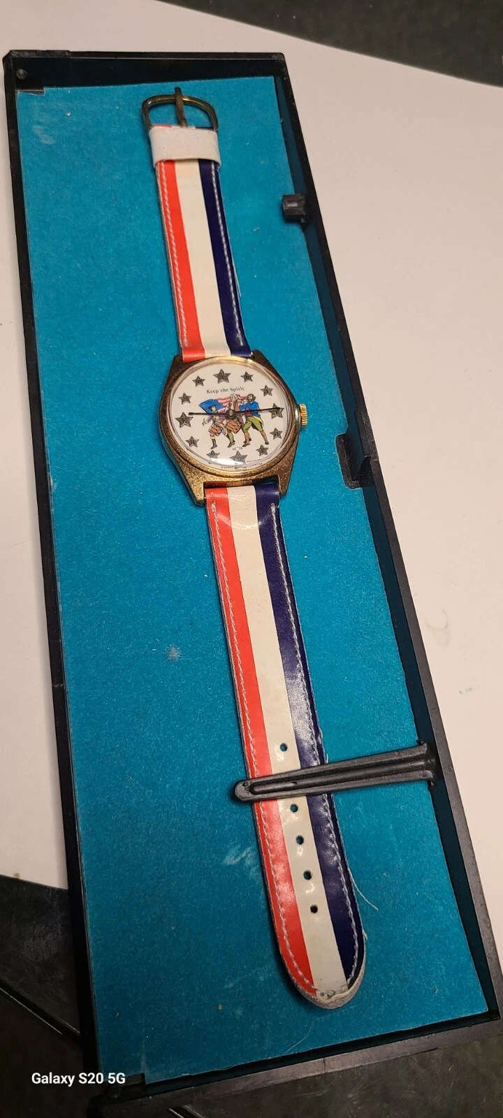 The Spirit of ’76 Watch in Original Case Red, White, Blue Band Self Winding
