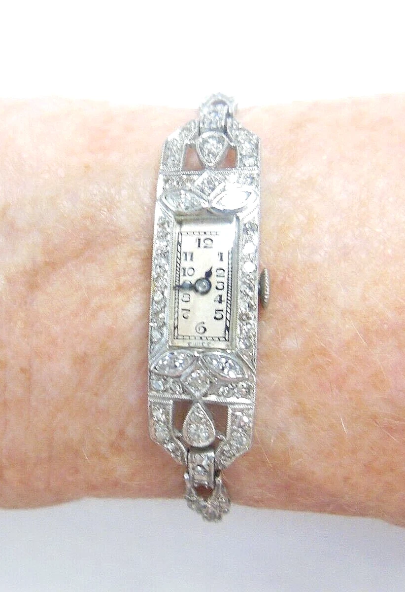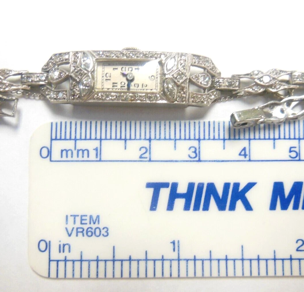 Platinum And Diamond Set Case & Band, Vintage Helbros 17J Woman's Wrist Watch