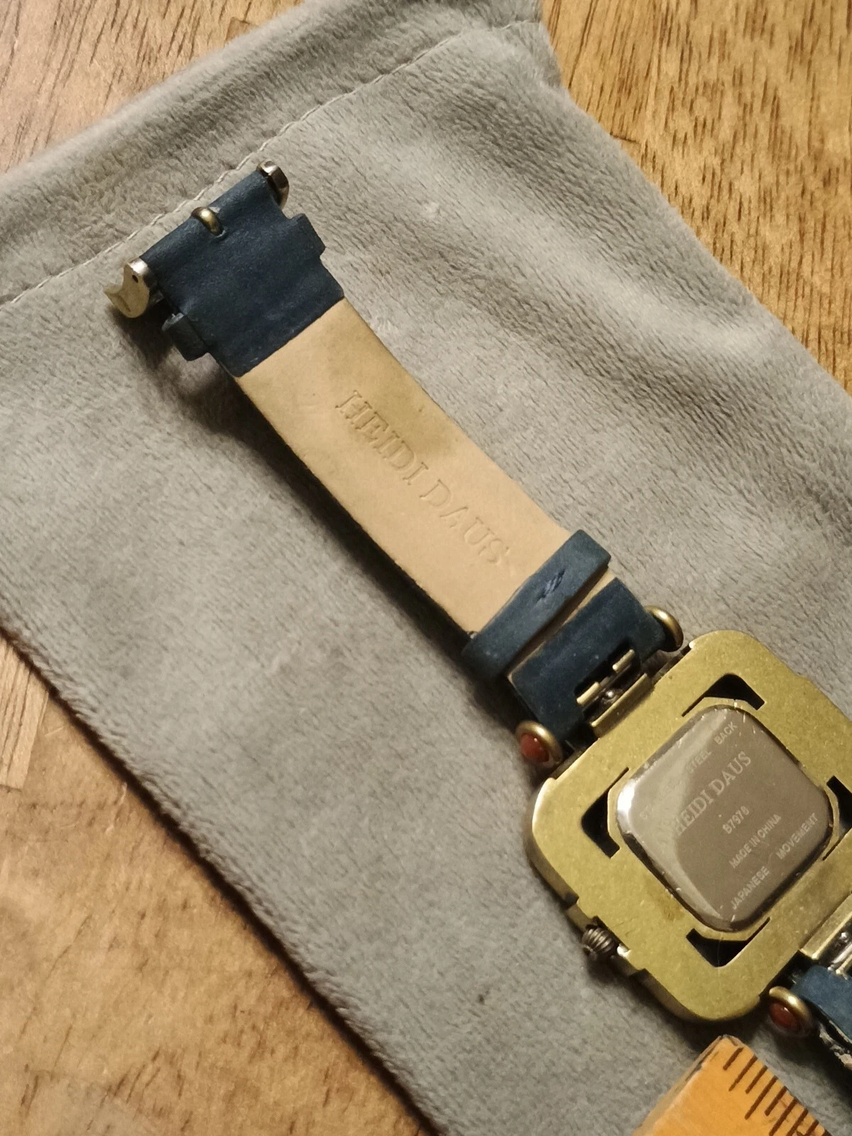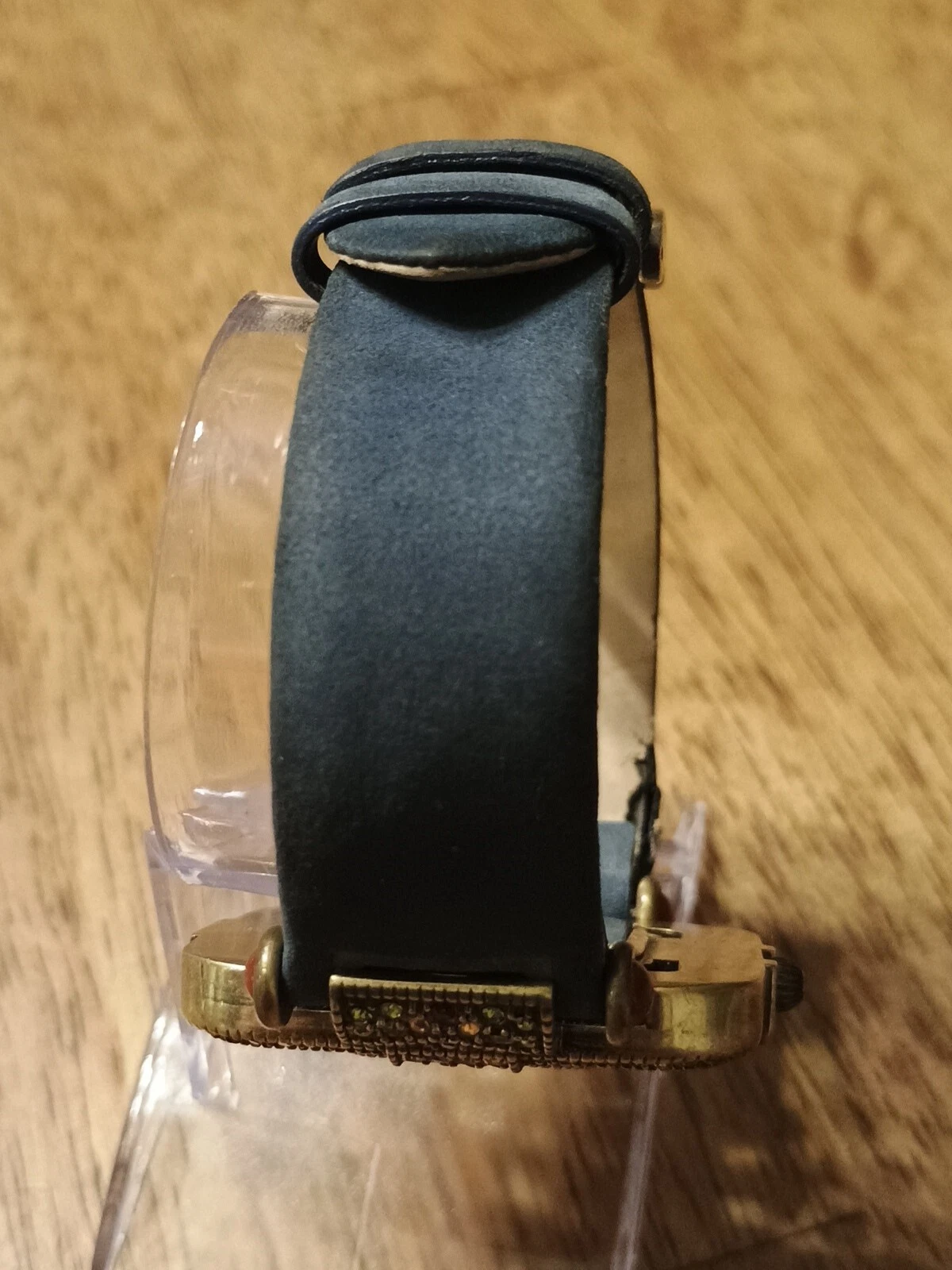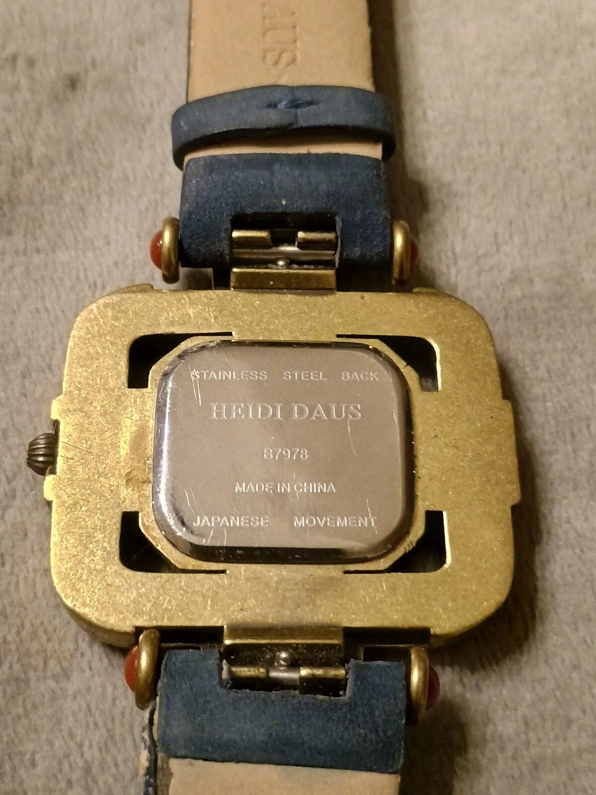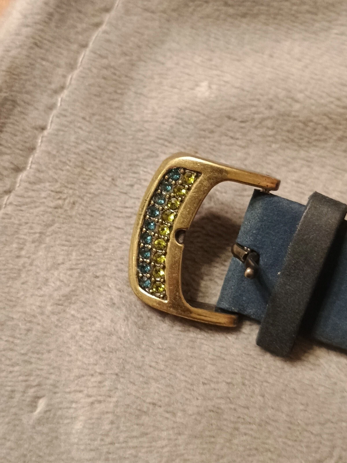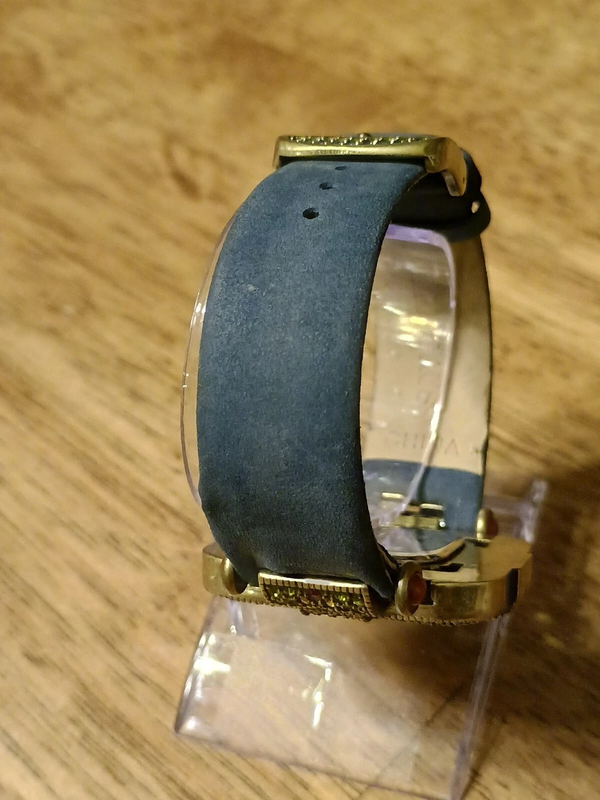 HTF Heidi Daus Multi-Color Swarovski Crystal Watch Blue Suede Art Deco STUNNING!