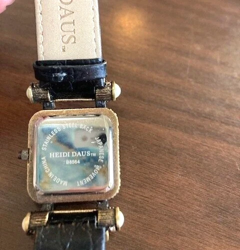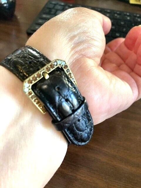 Heidi Daus Vintage "Timeless Beauty" Pave' Bezel Black Leather Strap Watch