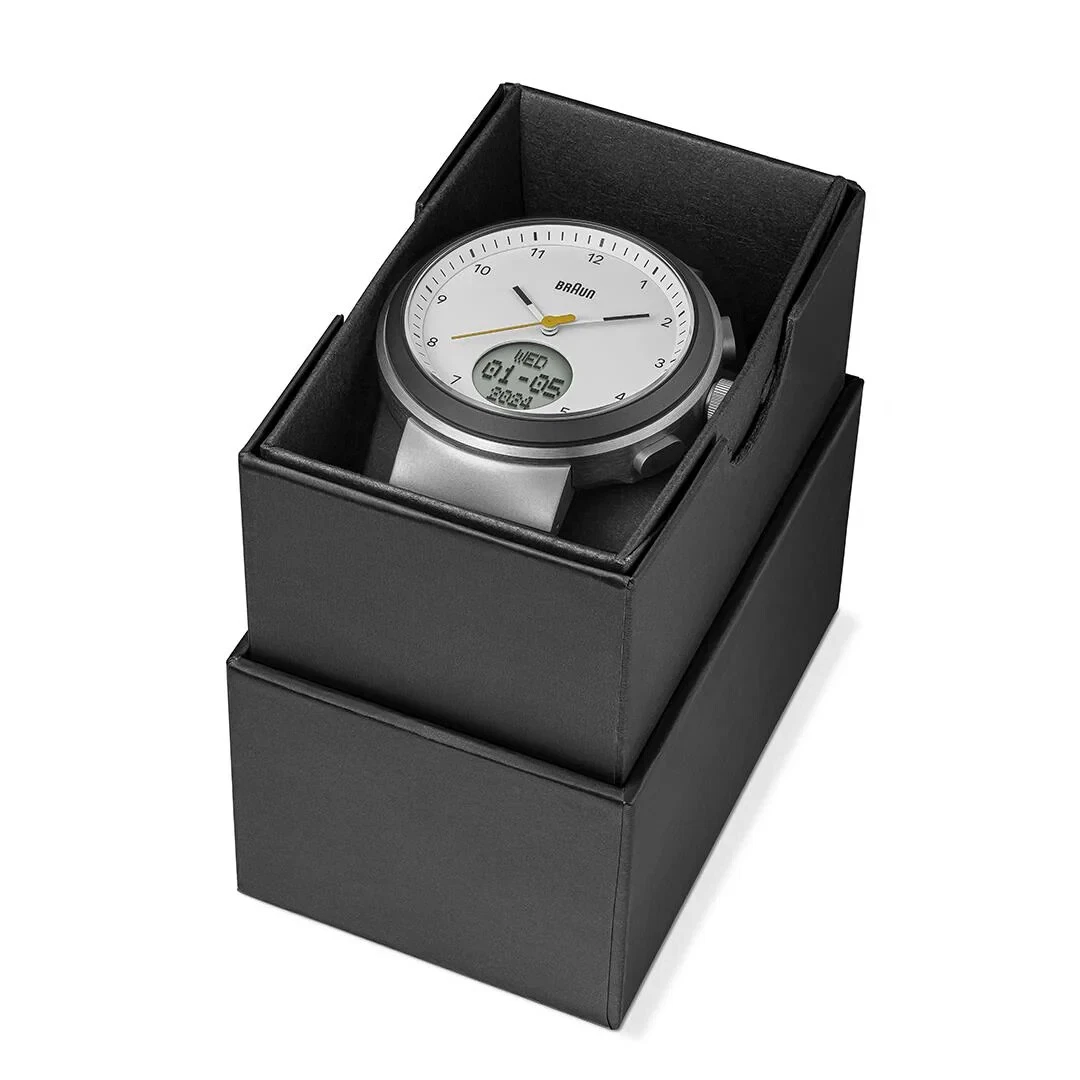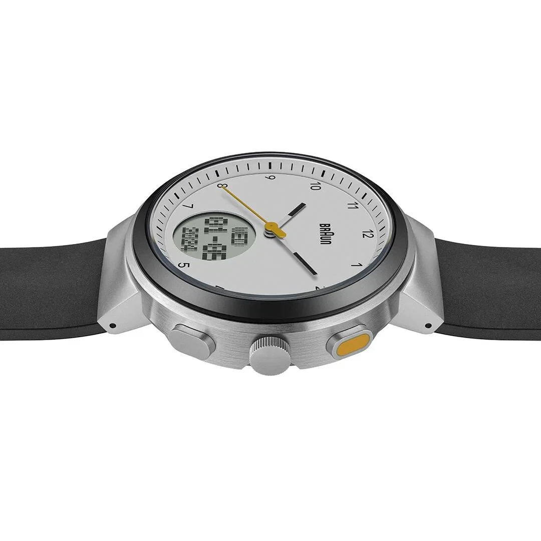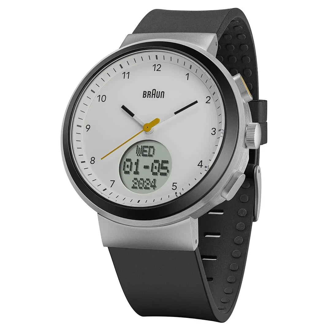 BN0299 Braun Mens Gents Step Counter Watch White Dial Black Silicone Strap New