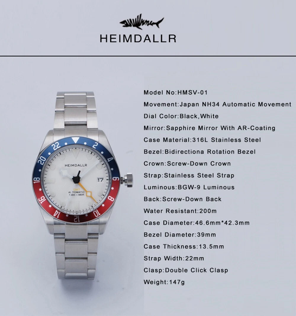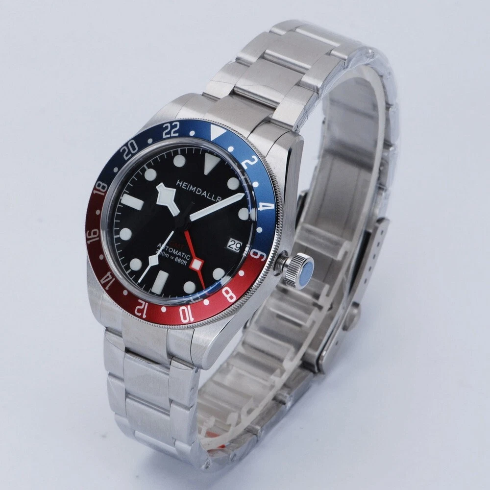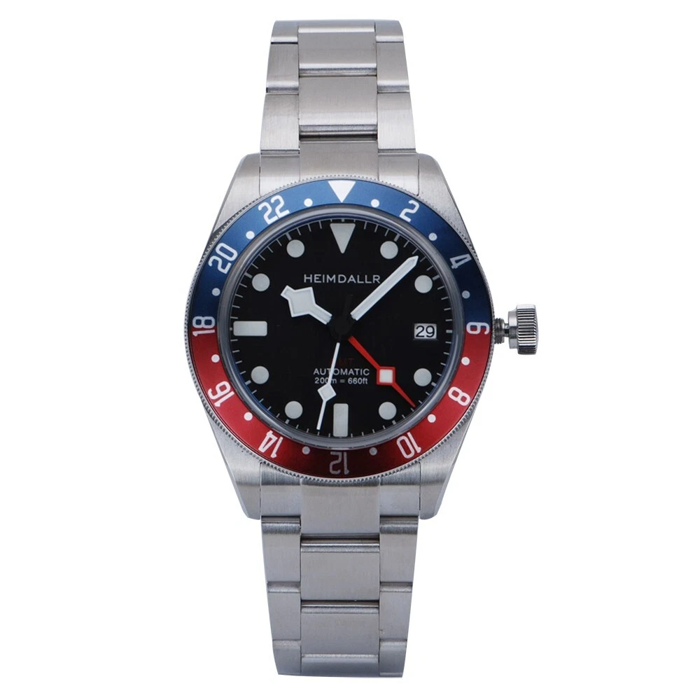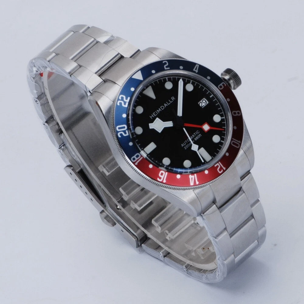 Heimdallr Men Automatic Watch GMT Mechanical 20ATM NH34 Bidirection Rotate Bezel