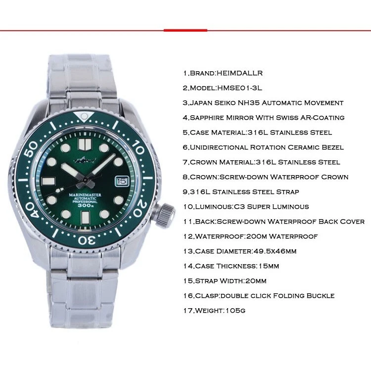 HEIMDALLR Mens Diver Watches Diver Automatic Mechanical Wristwatch 20Bar NH35