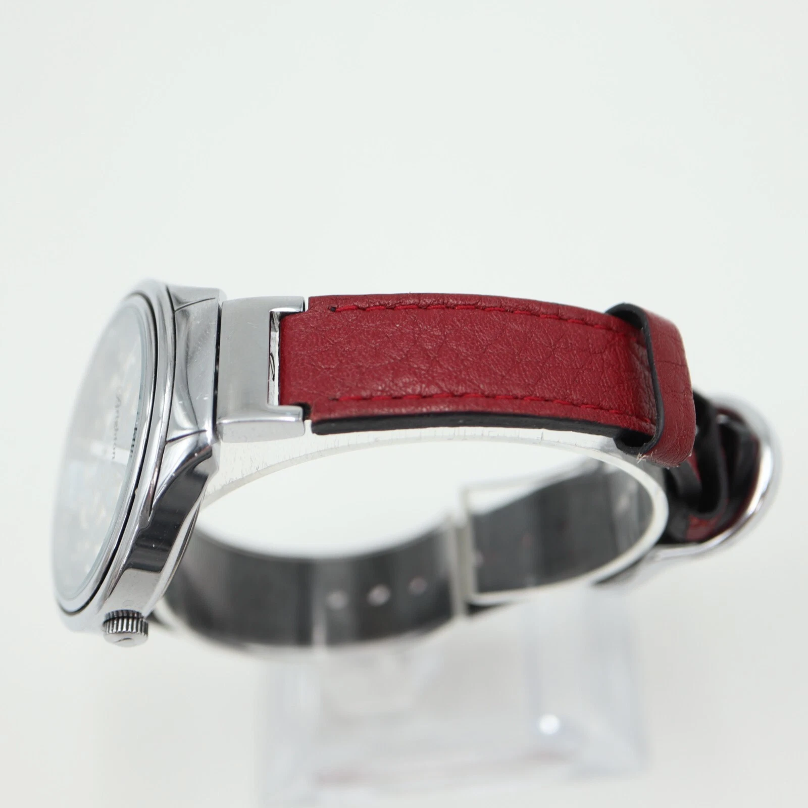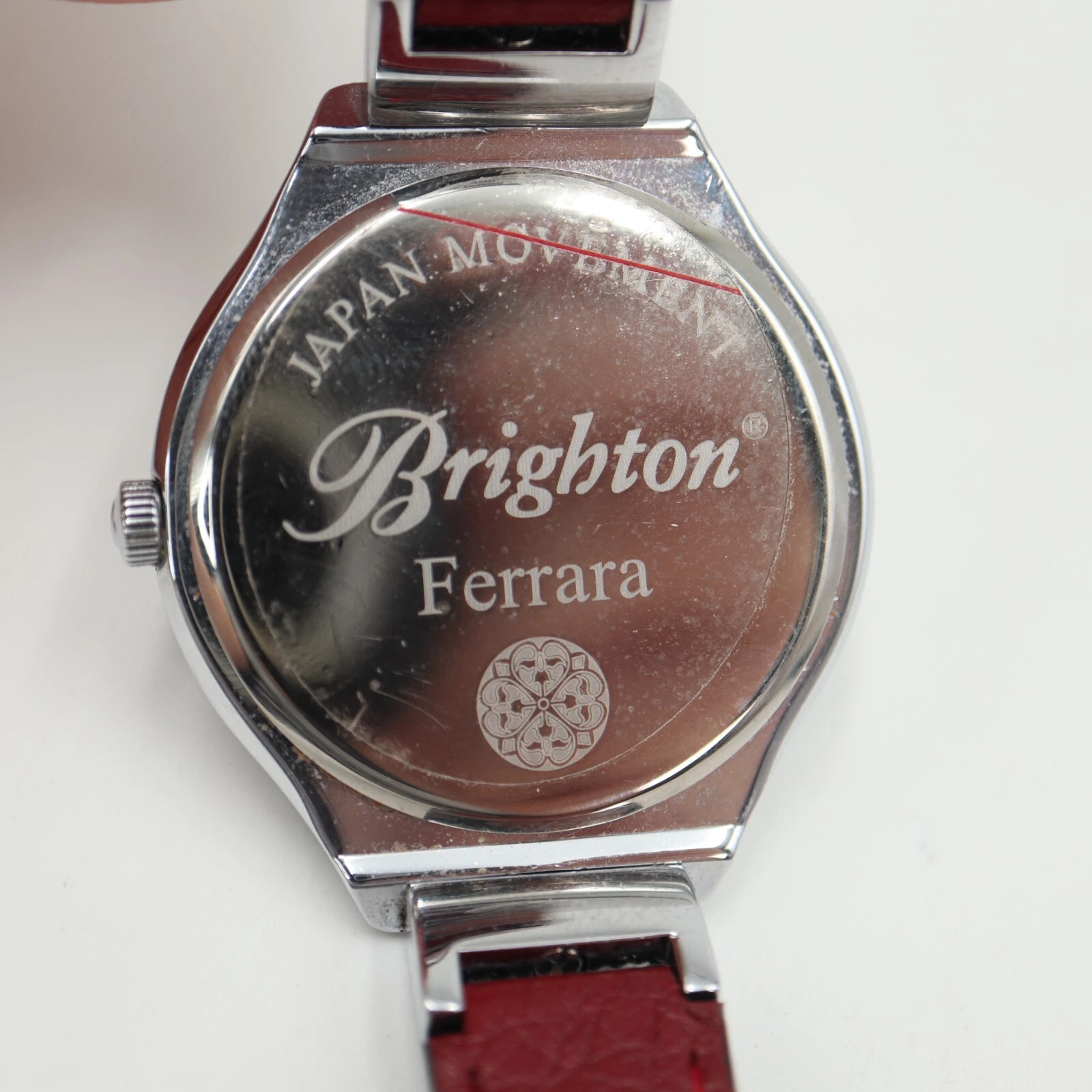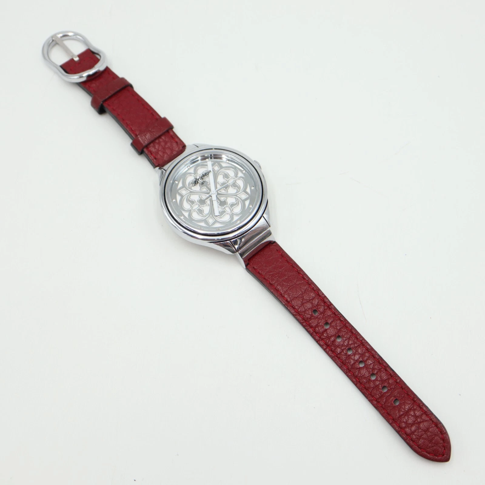 Brighton Ferrara Silve Tone Watch 39mm Dial Black Red Reversible Strap Working
