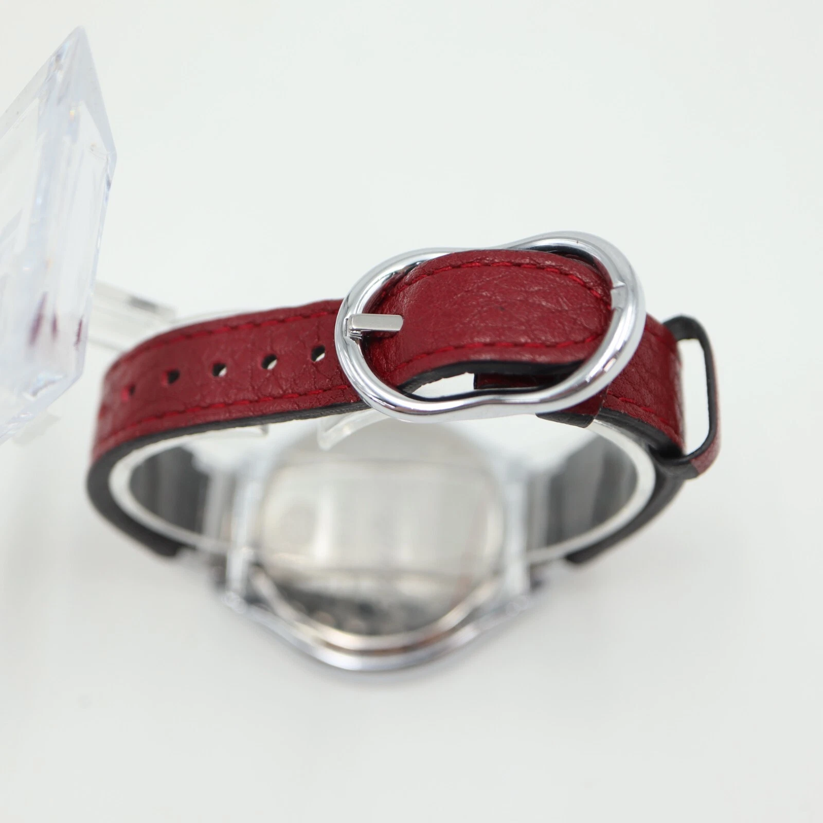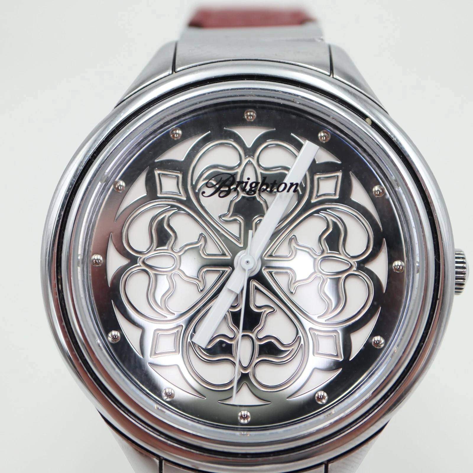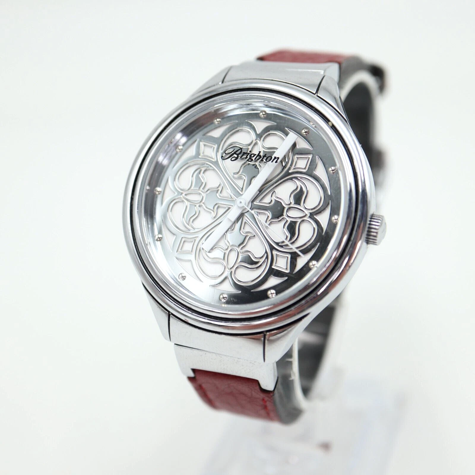 Brighton Ferrara Silve Tone Watch 39mm Dial Black Red Reversible Strap Working