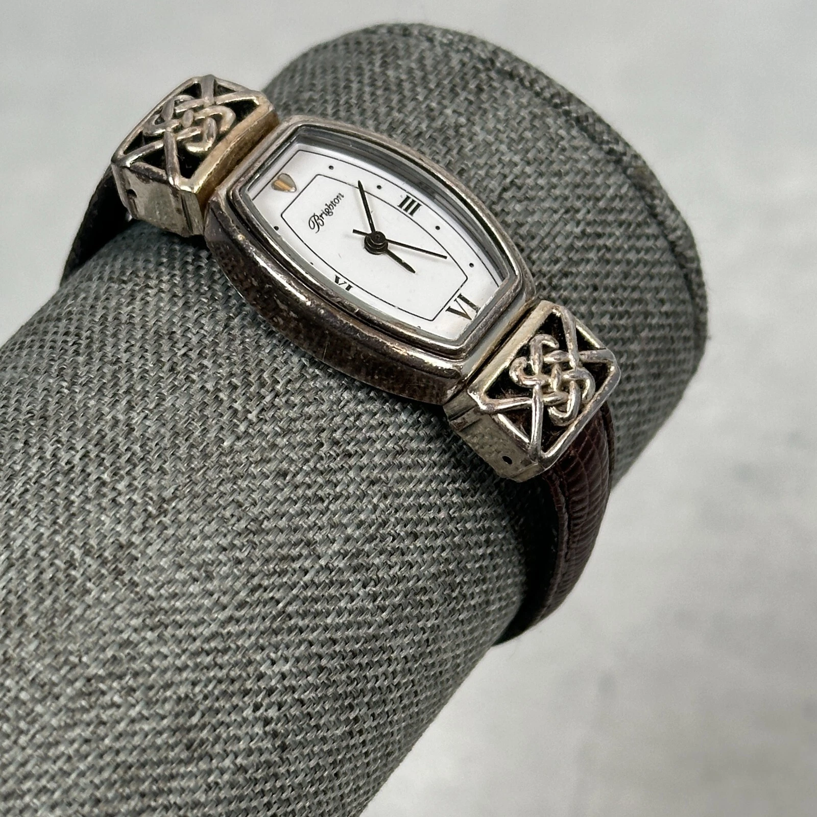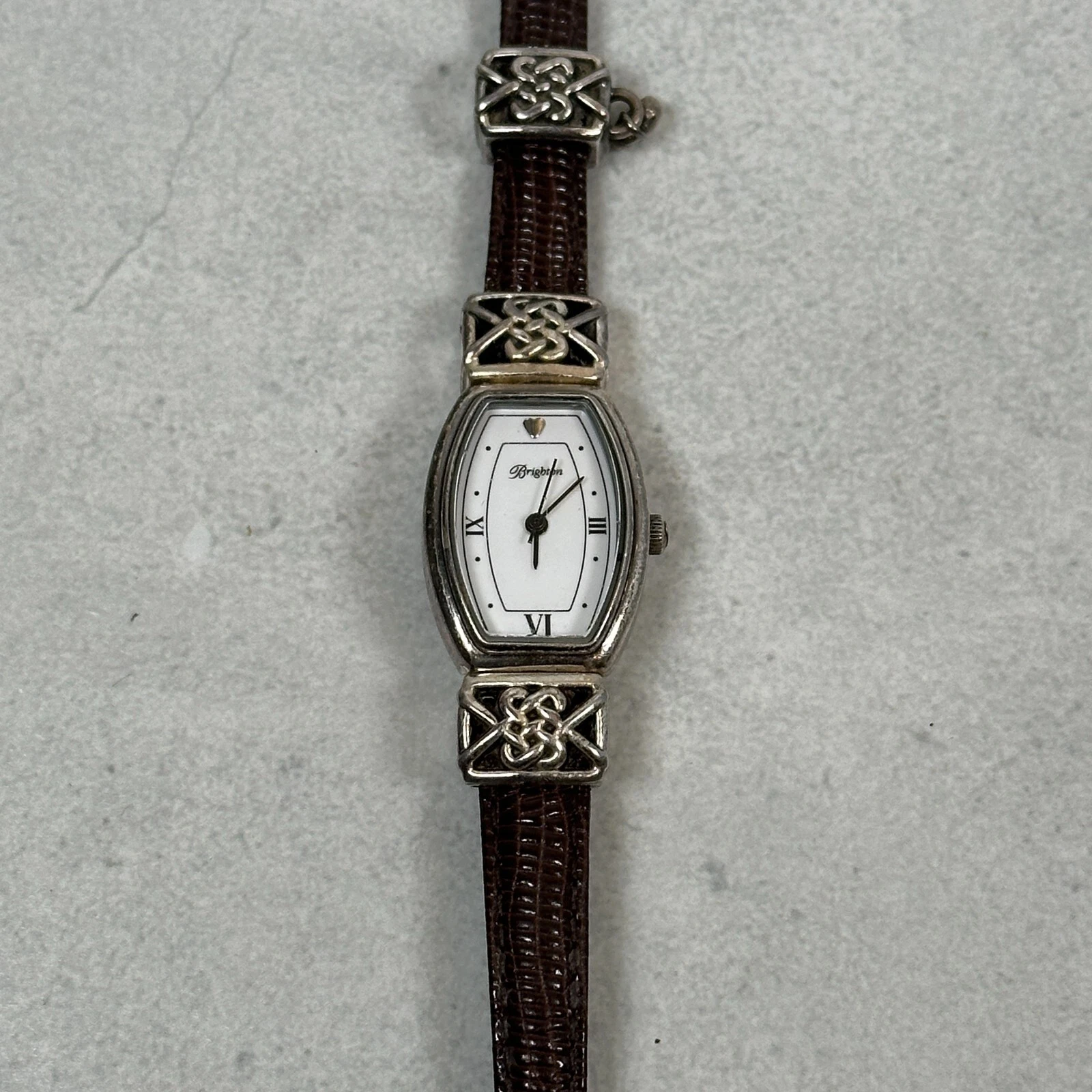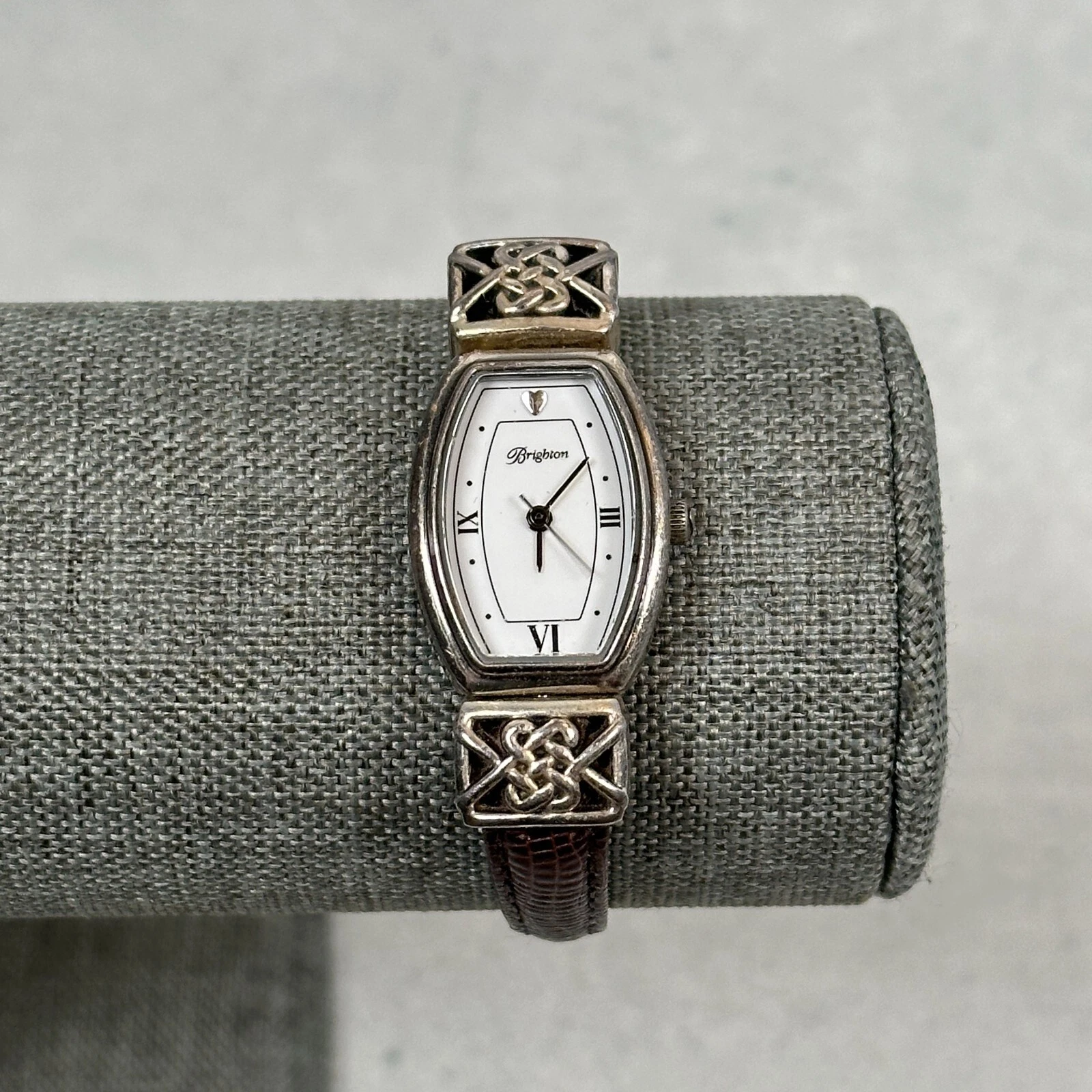 Brighton Watch 20mm Silver Tone Canterbury Brown Leather Band New Battery