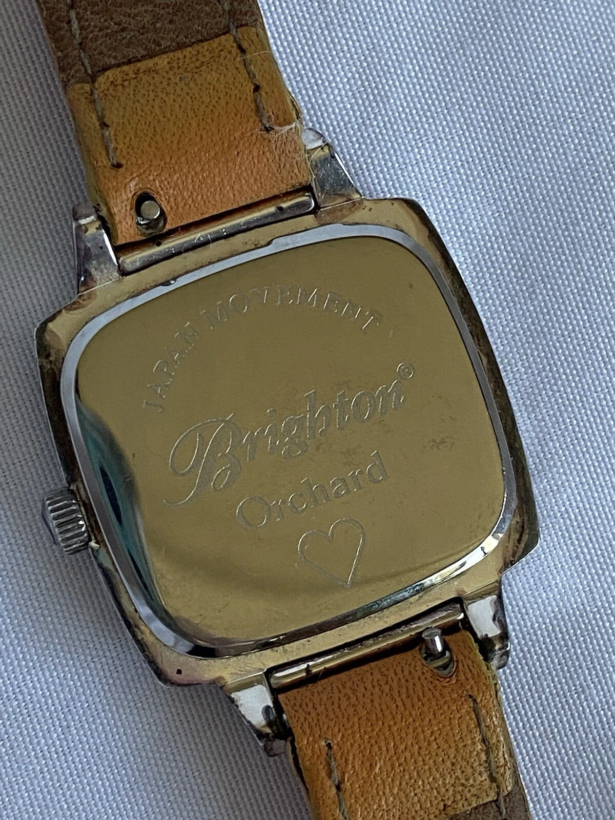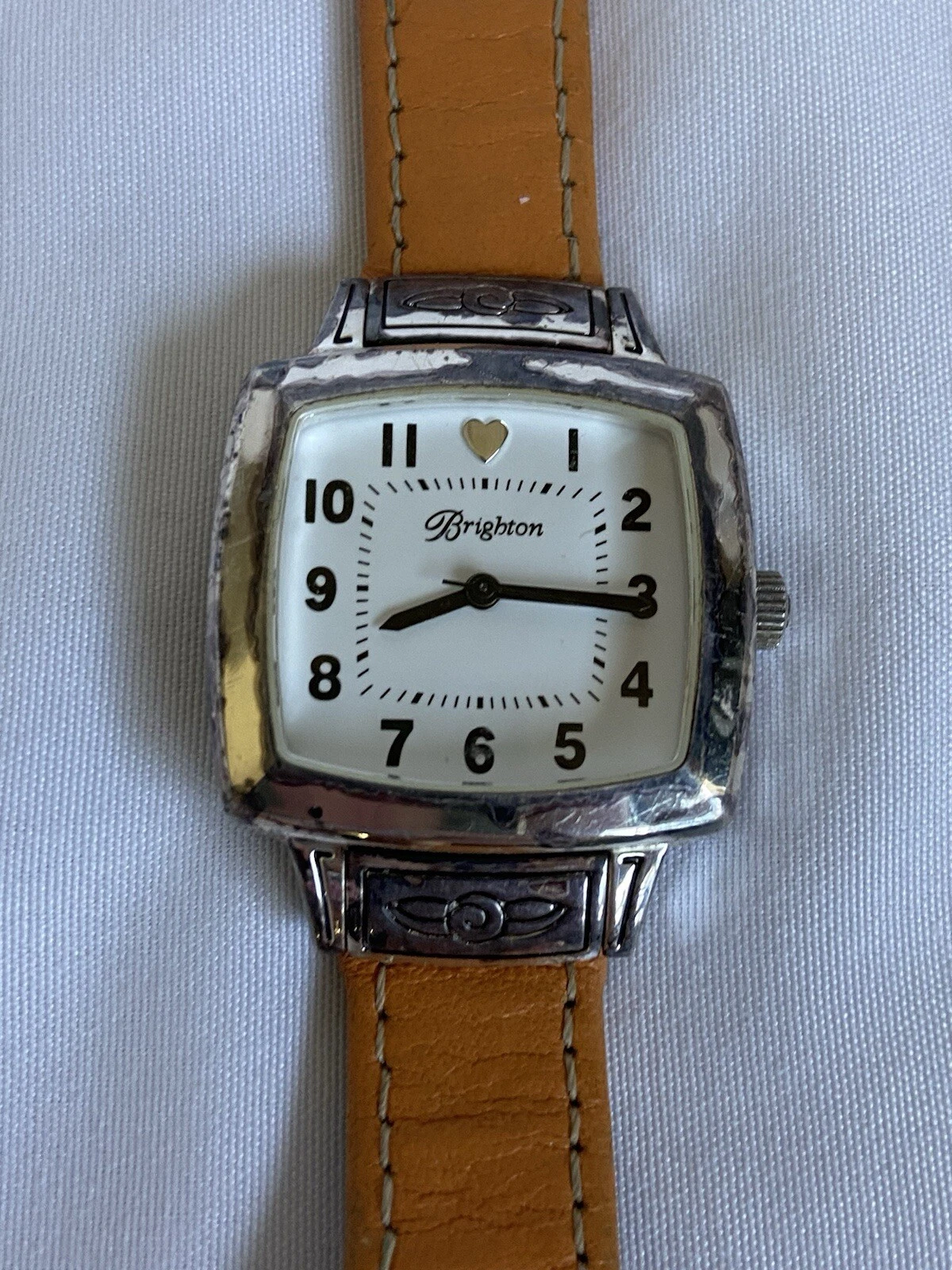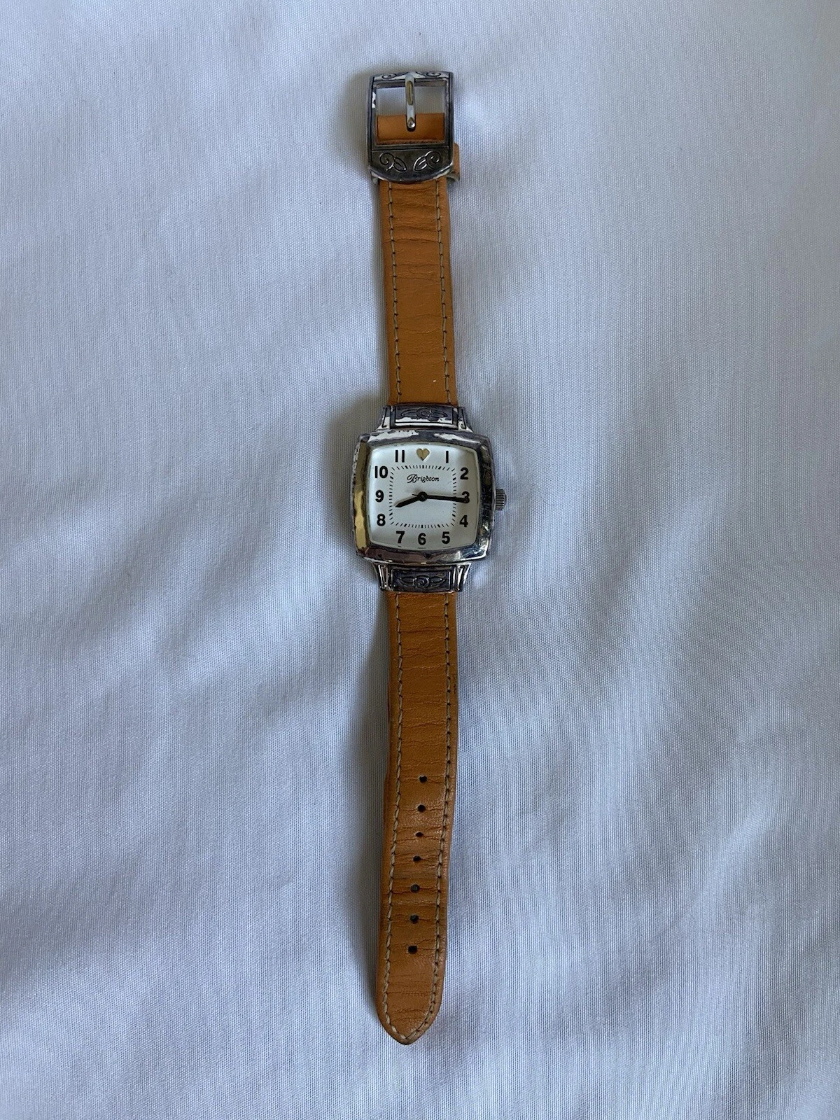 Brighton Orchard Watch Silver Square White Face Orange Leather Band Needs Batt