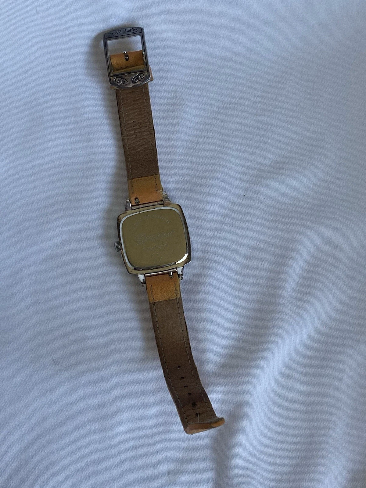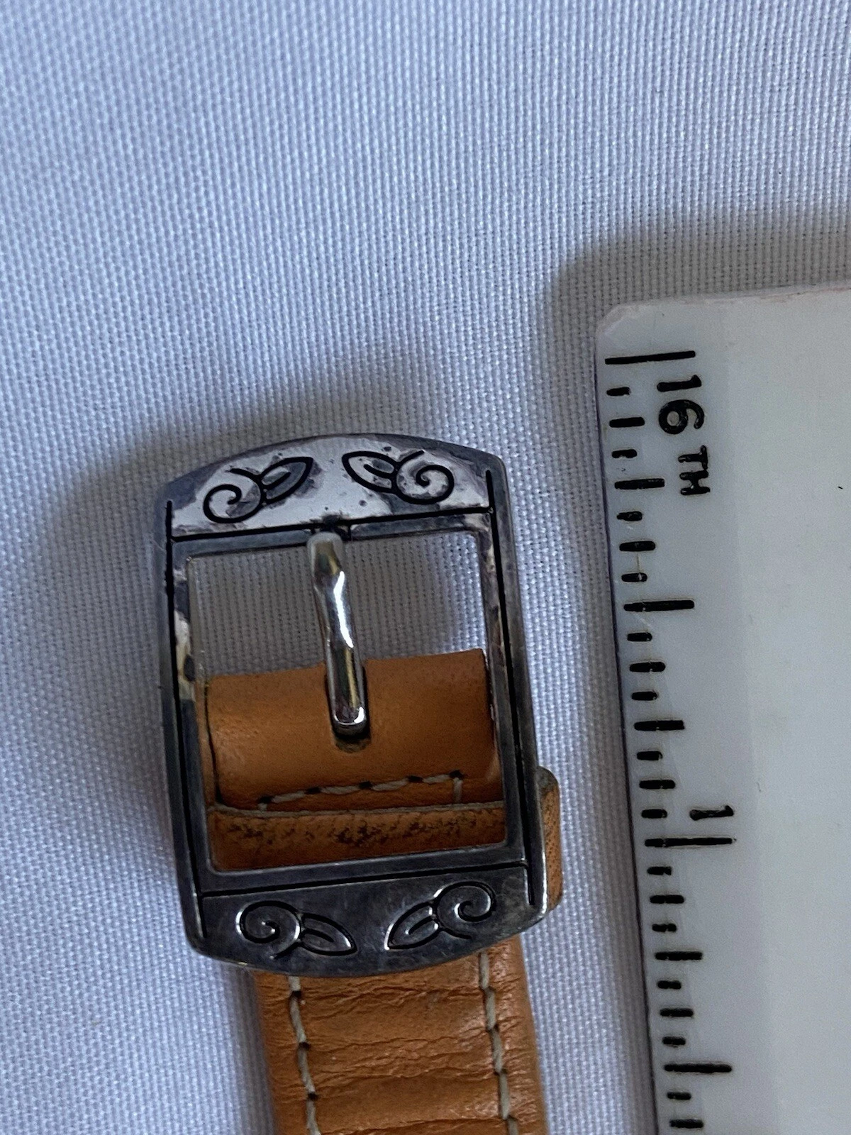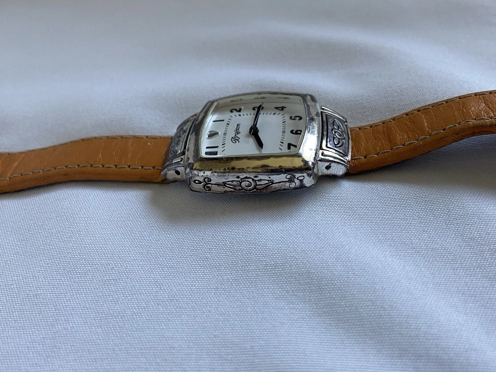 Brighton Orchard Watch Silver Square White Face Orange Leather Band Needs Batt