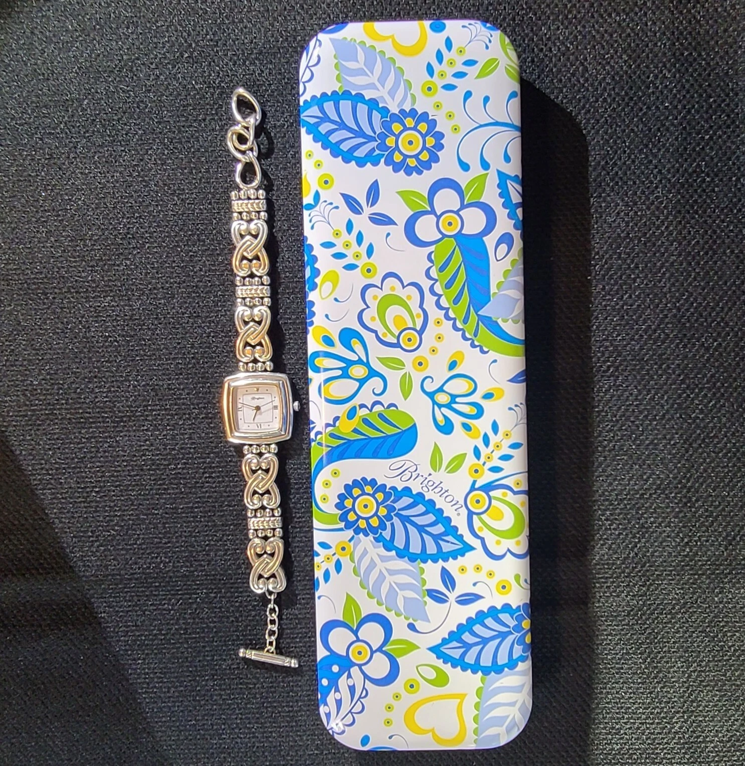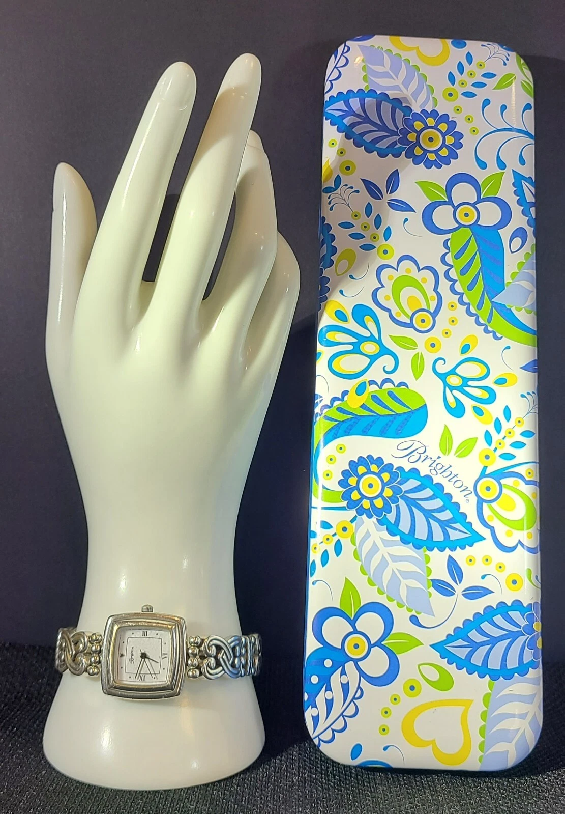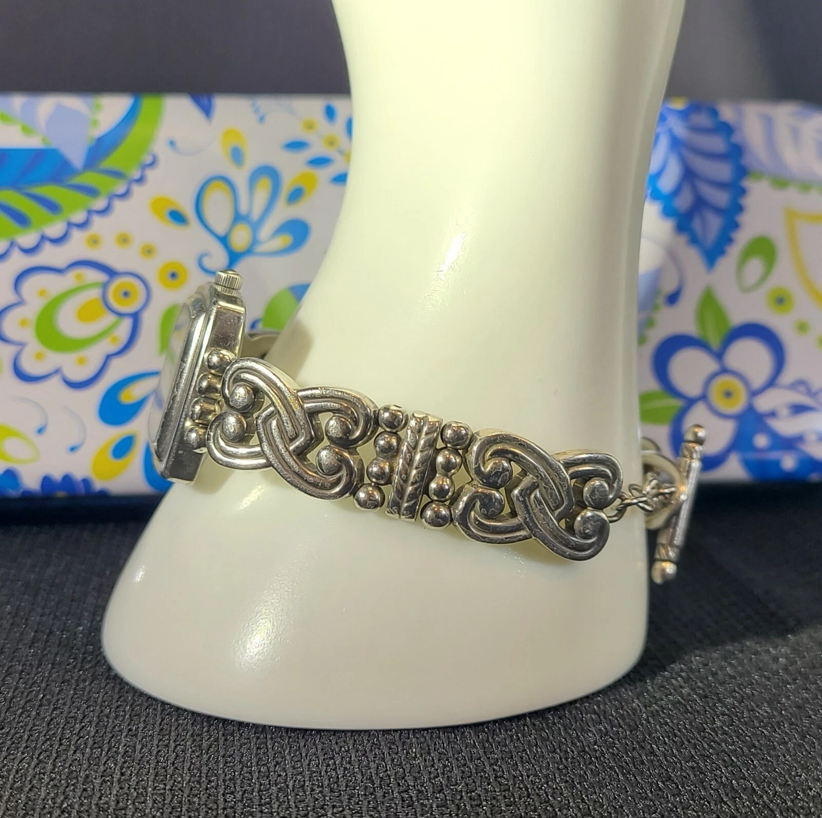 BRIGHTON "Santa Rosa" WATCH Silver Hearts Band *Bar Clasp *with Box *New Battery