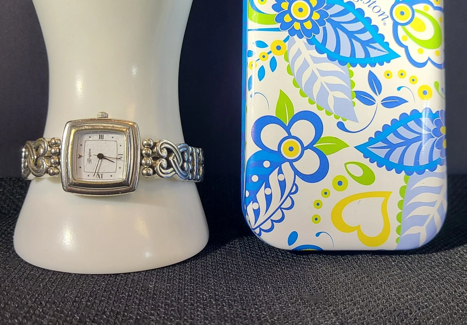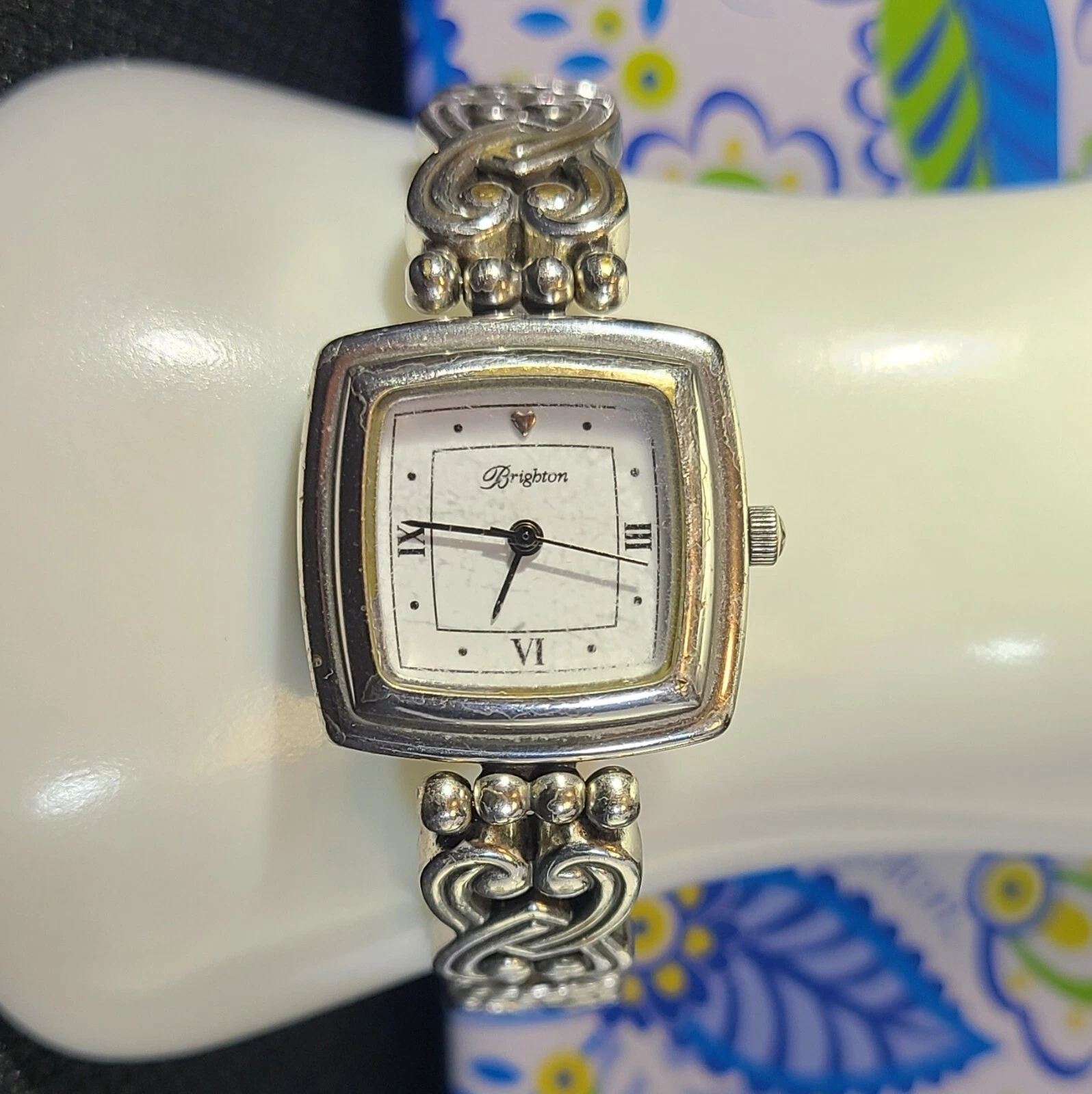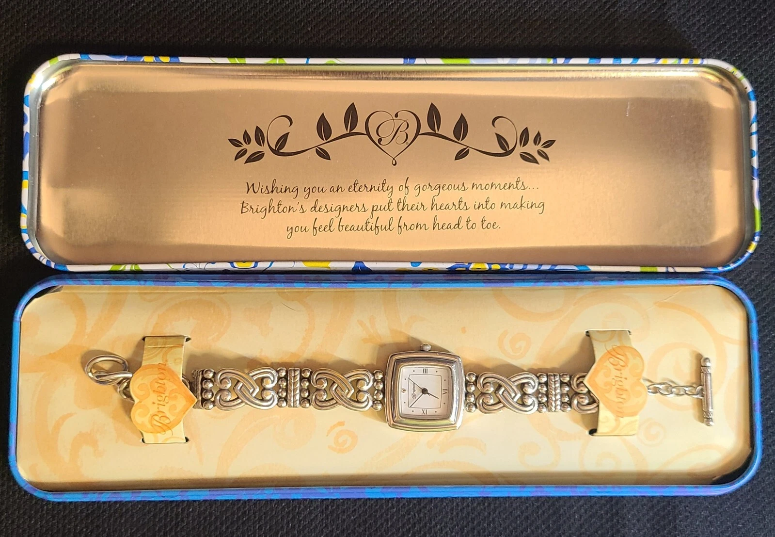 BRIGHTON "Santa Rosa" WATCH Silver Hearts Band *Bar Clasp *with Box *New Battery