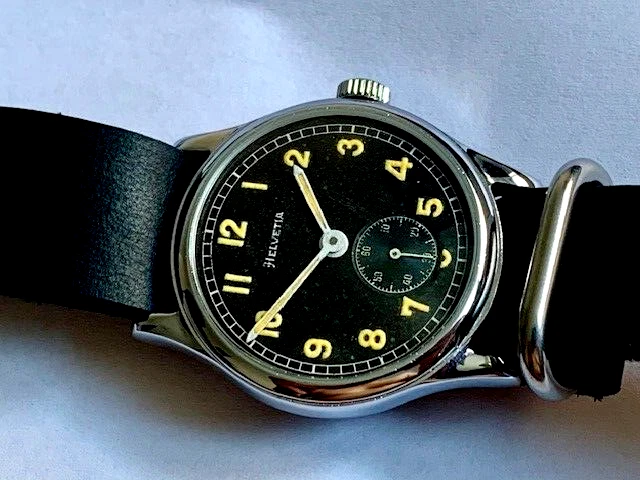 German military watch Helvetia D-H, chrome, 1940s WWII