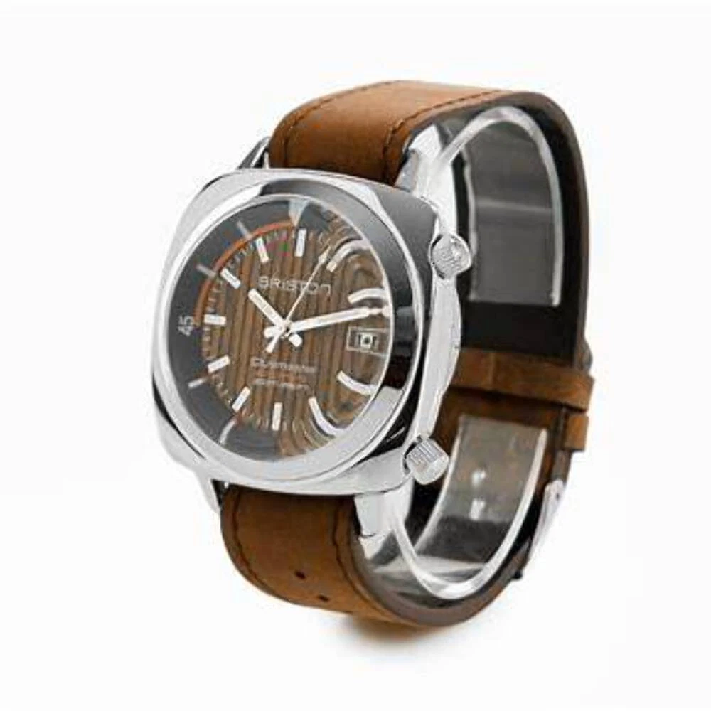 Briston Clubmaster Diver Automatic Watch 42mm Brown Dial Brown Leather Strap 186