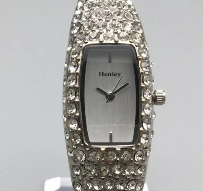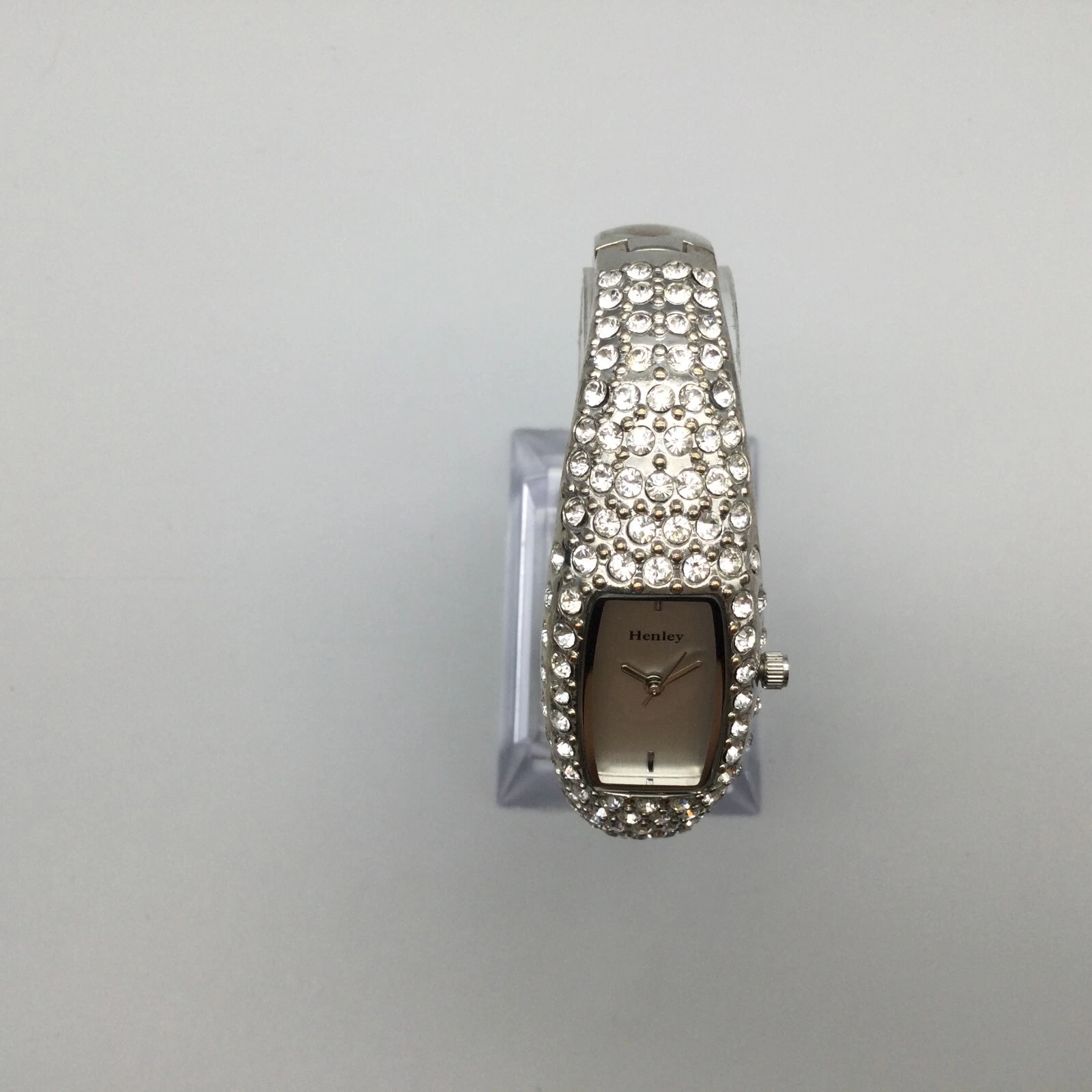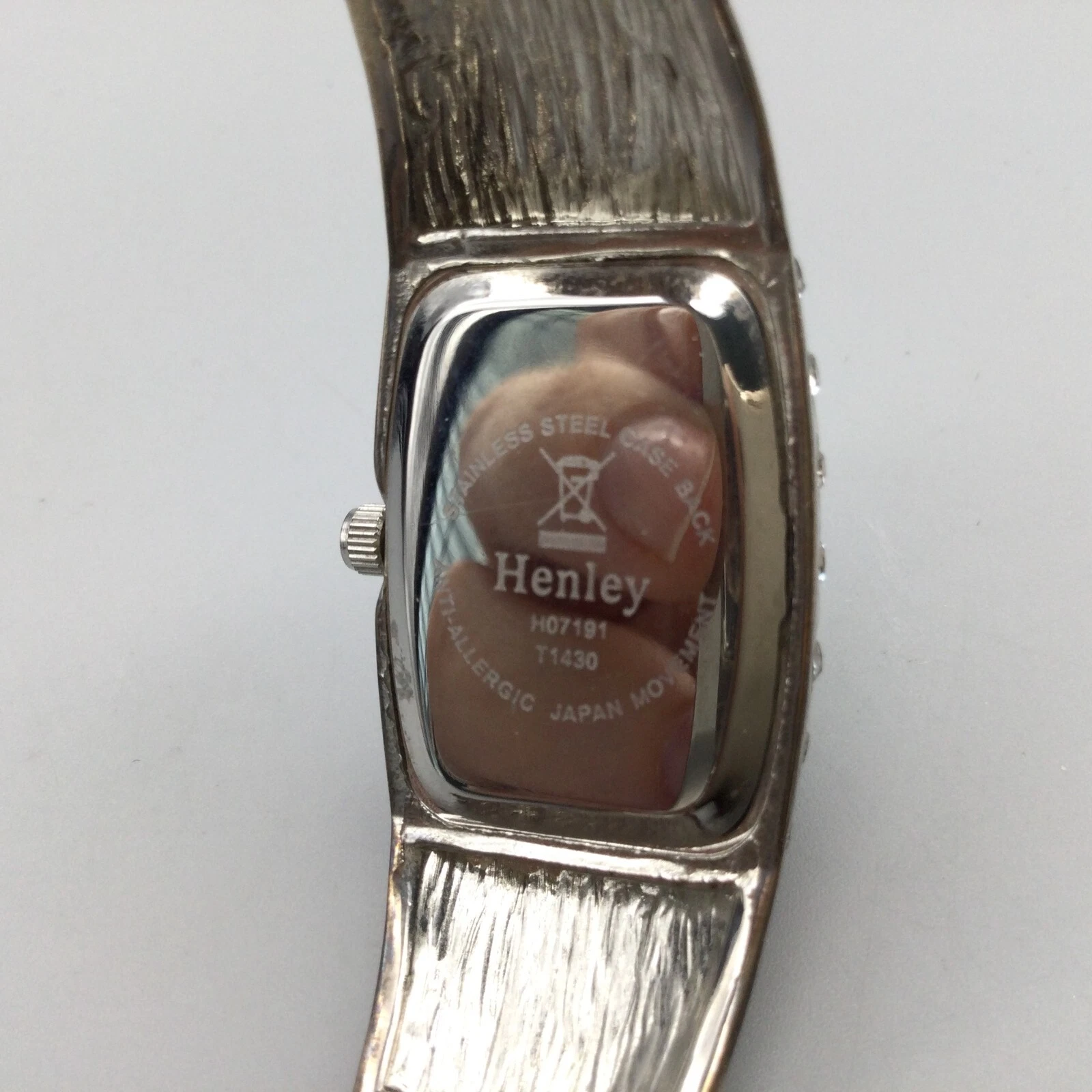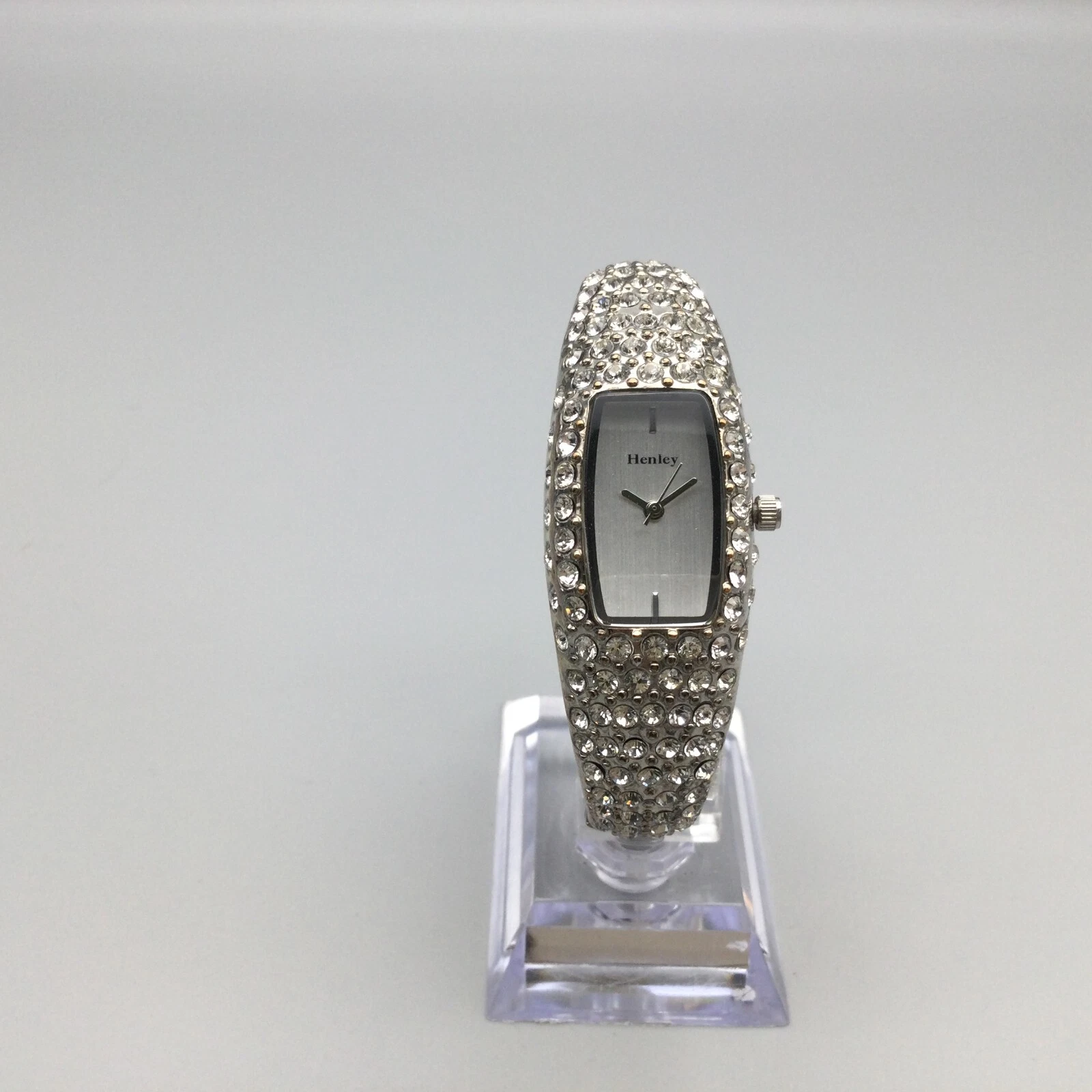 Henley Watch Women 19mm Silver Tone Bling Hinged Cuff Band New Battery 6.5"