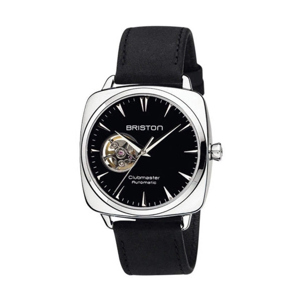Briston Clubmaster Iconic Automatic Watch 40mm Black Dial Black Leather Strap 18