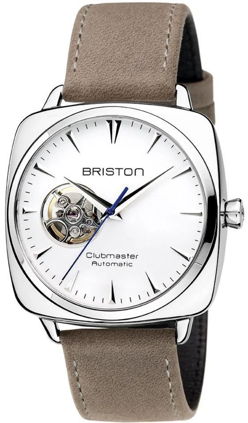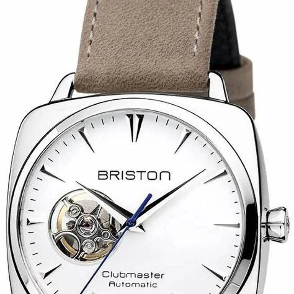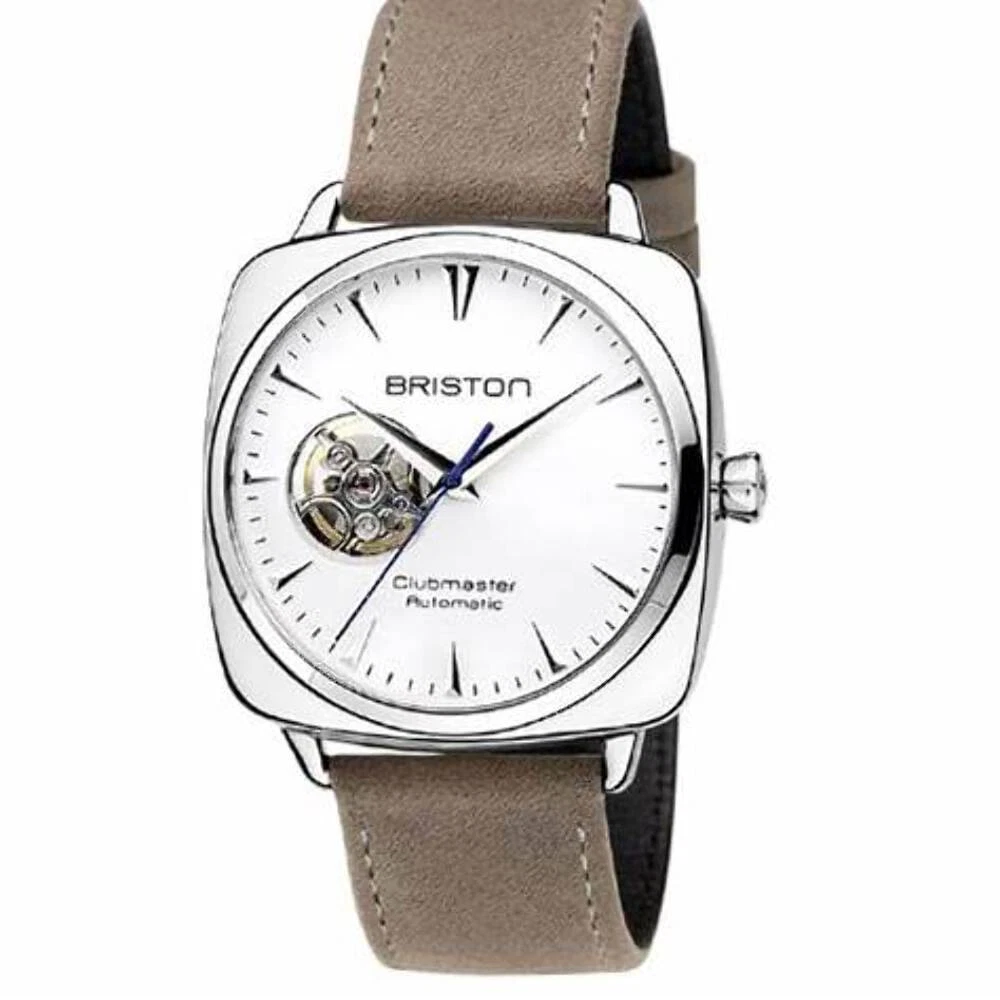 Briston Clubmaster Iconic Automatic Watch 40mm White Dial Grey Leather Strap 187