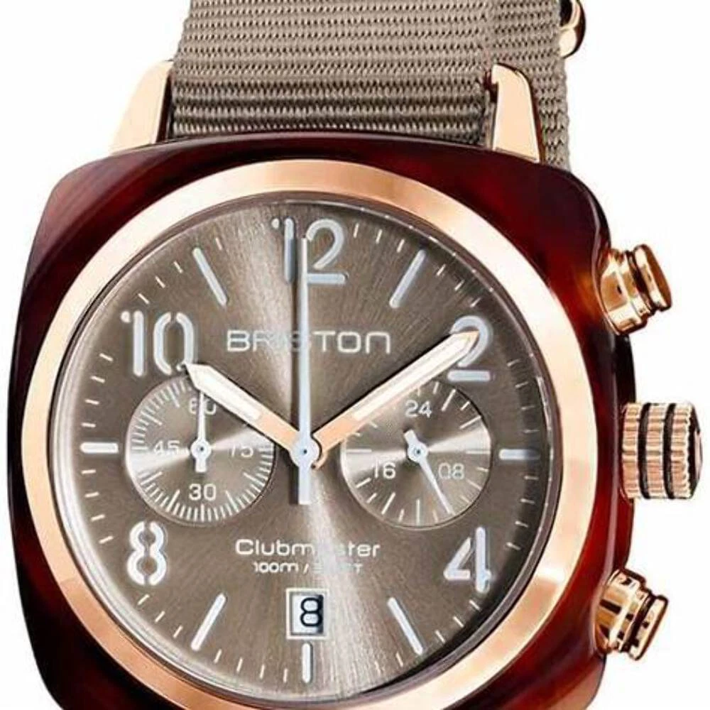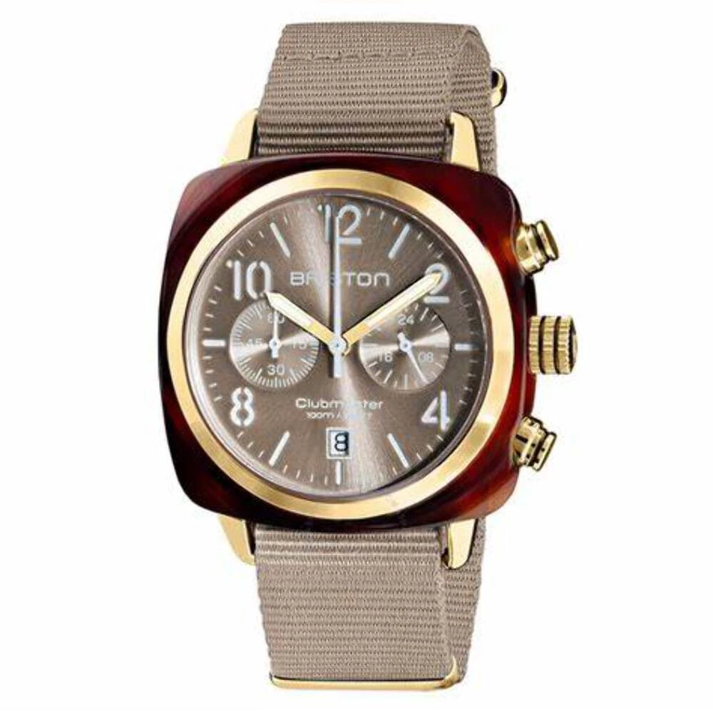 Briston Clubmaster Classic Chronograph 40mm Gold Acetate Grey Dial Grey NATO Str