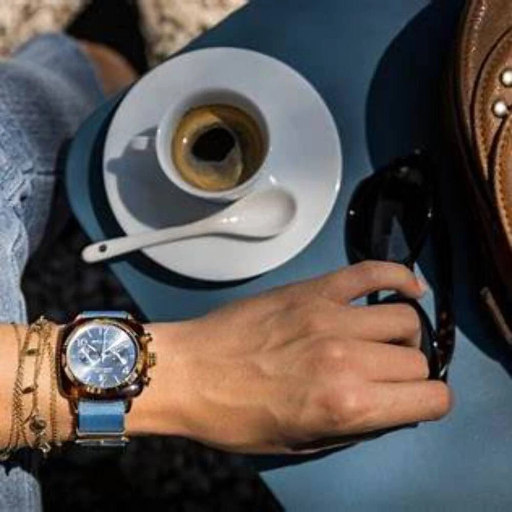 Briston Clubmaster Classic Chronograph 40mm Gold Acetate Blue Dial Blue NATO Str
