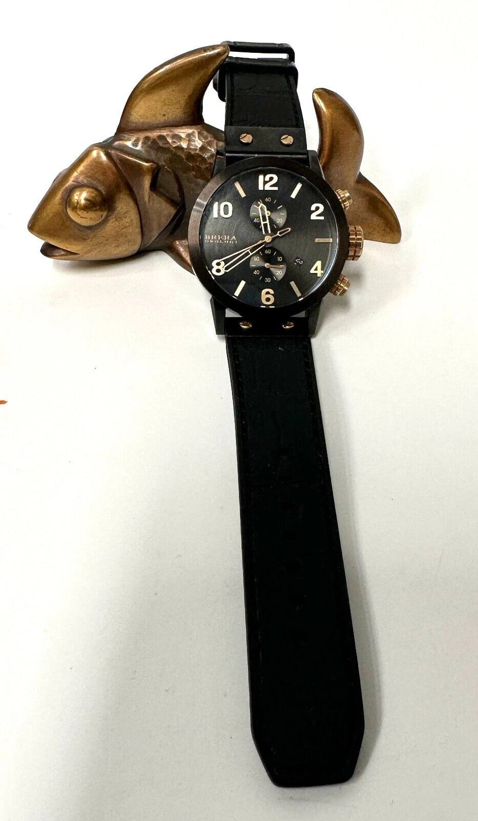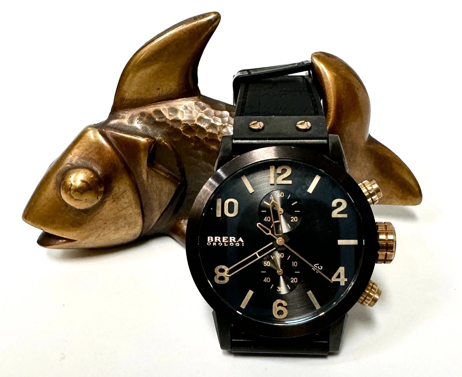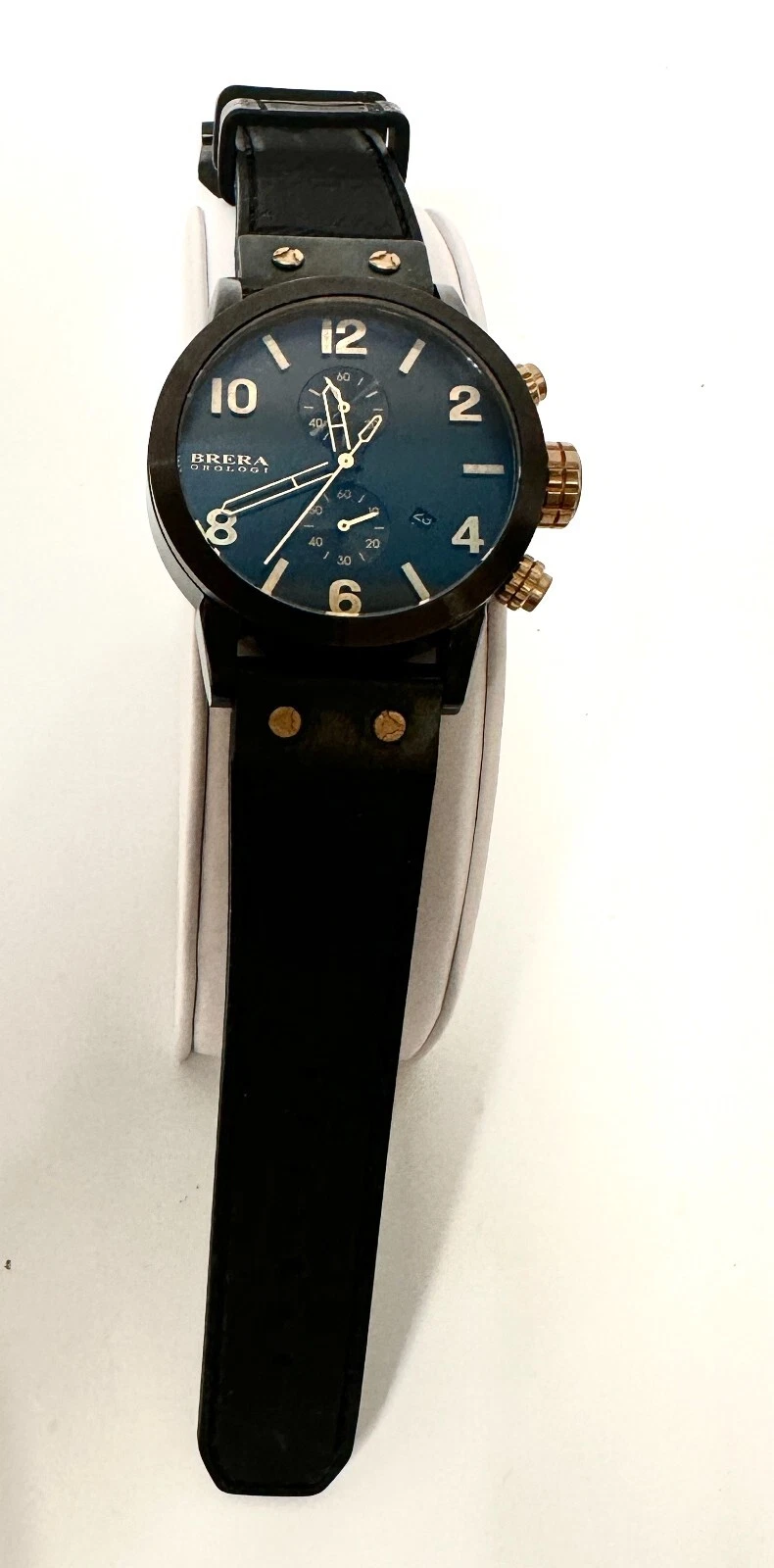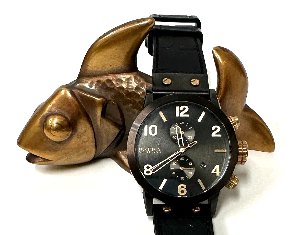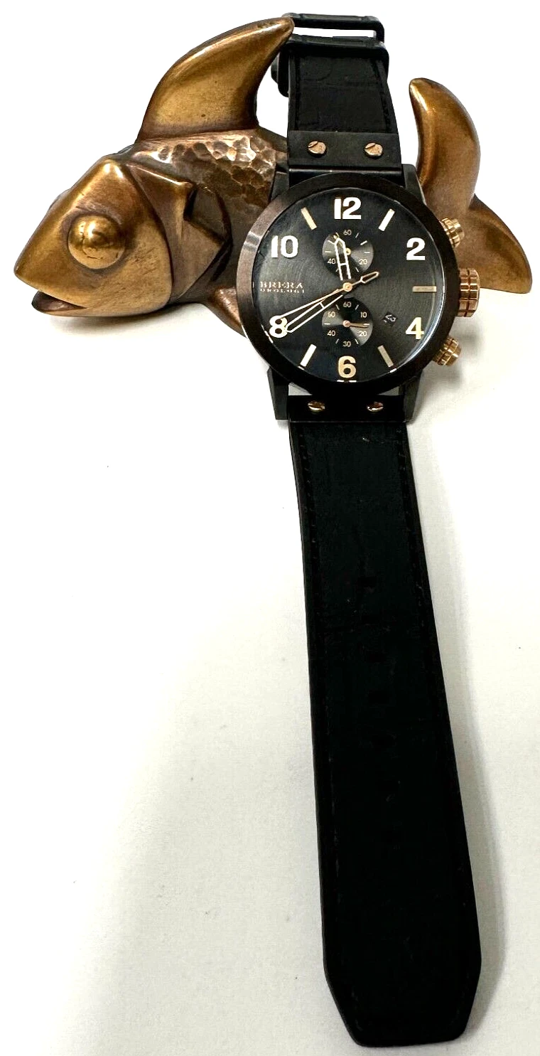 BRERA OROLOGI MENS 42MM BK STAINLESS CHRONO,DAY, NOTTE WATCH BK/GD ACO4 RET $999