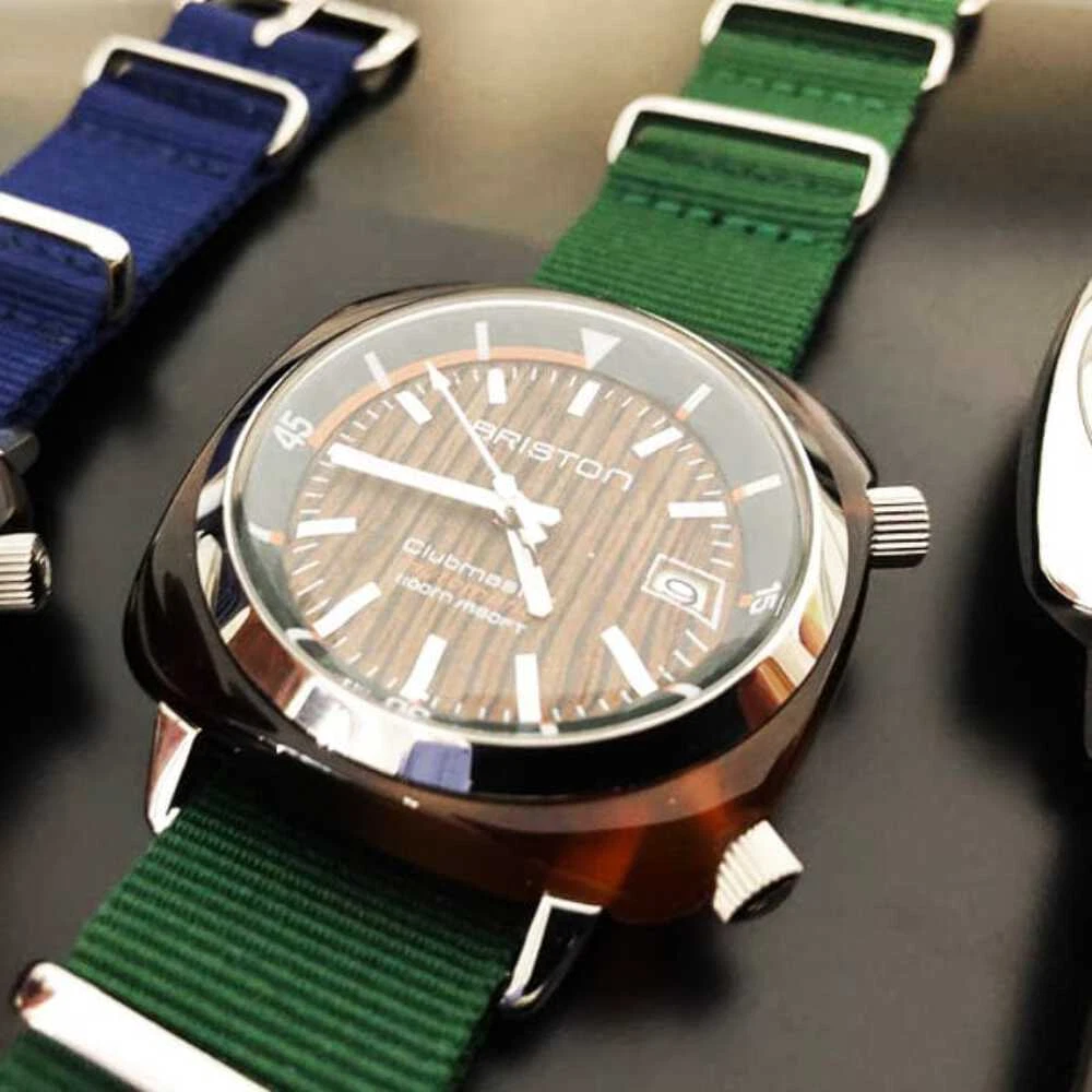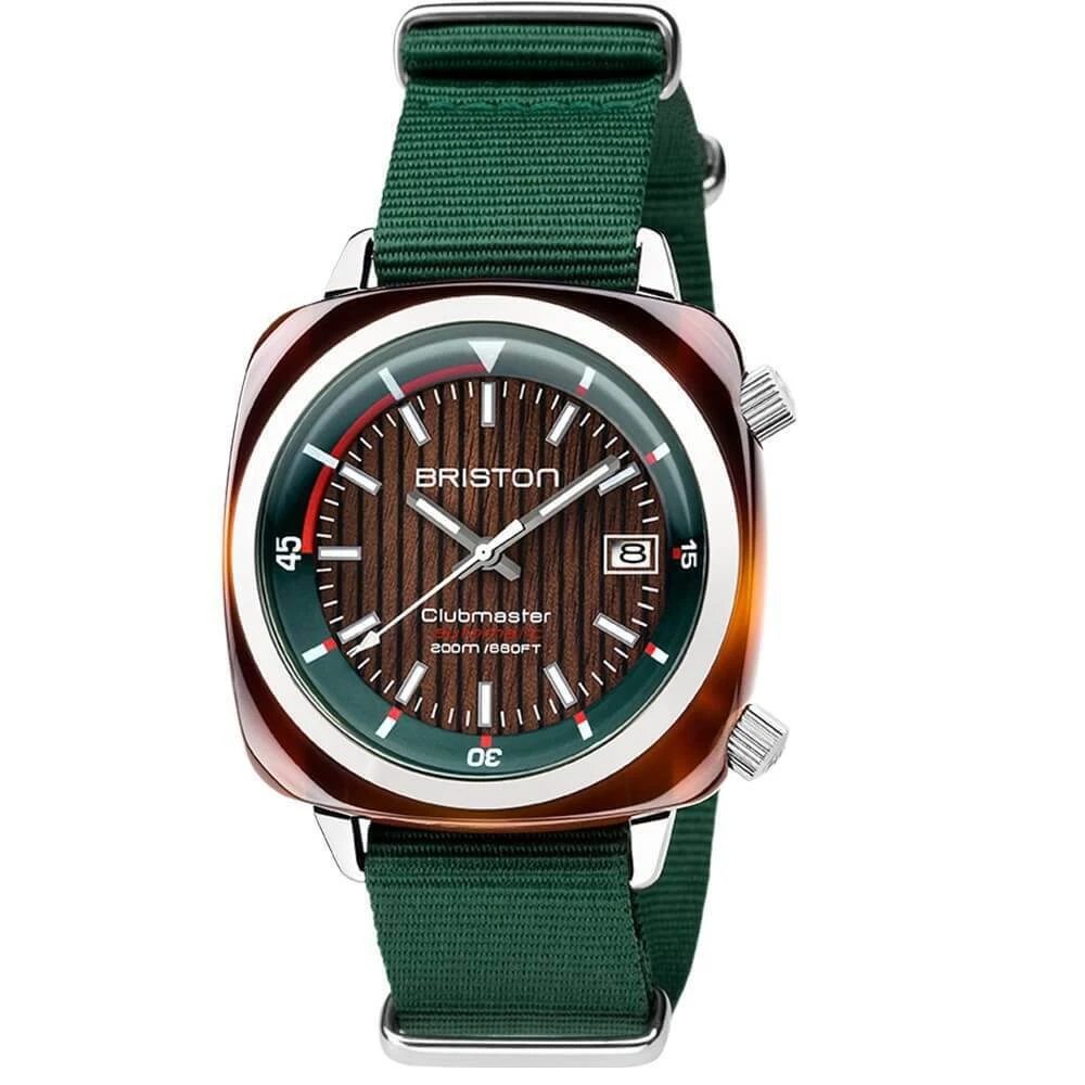 Briston Clubmaster Diver Automatic Watch 42mm Brown Dial Green NATO Strap 18642.