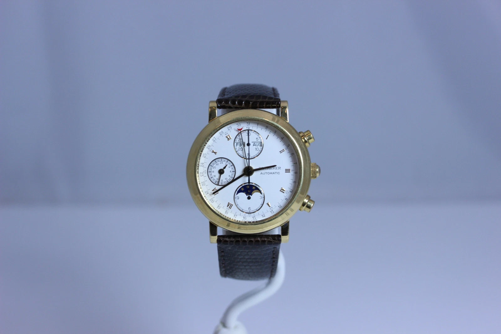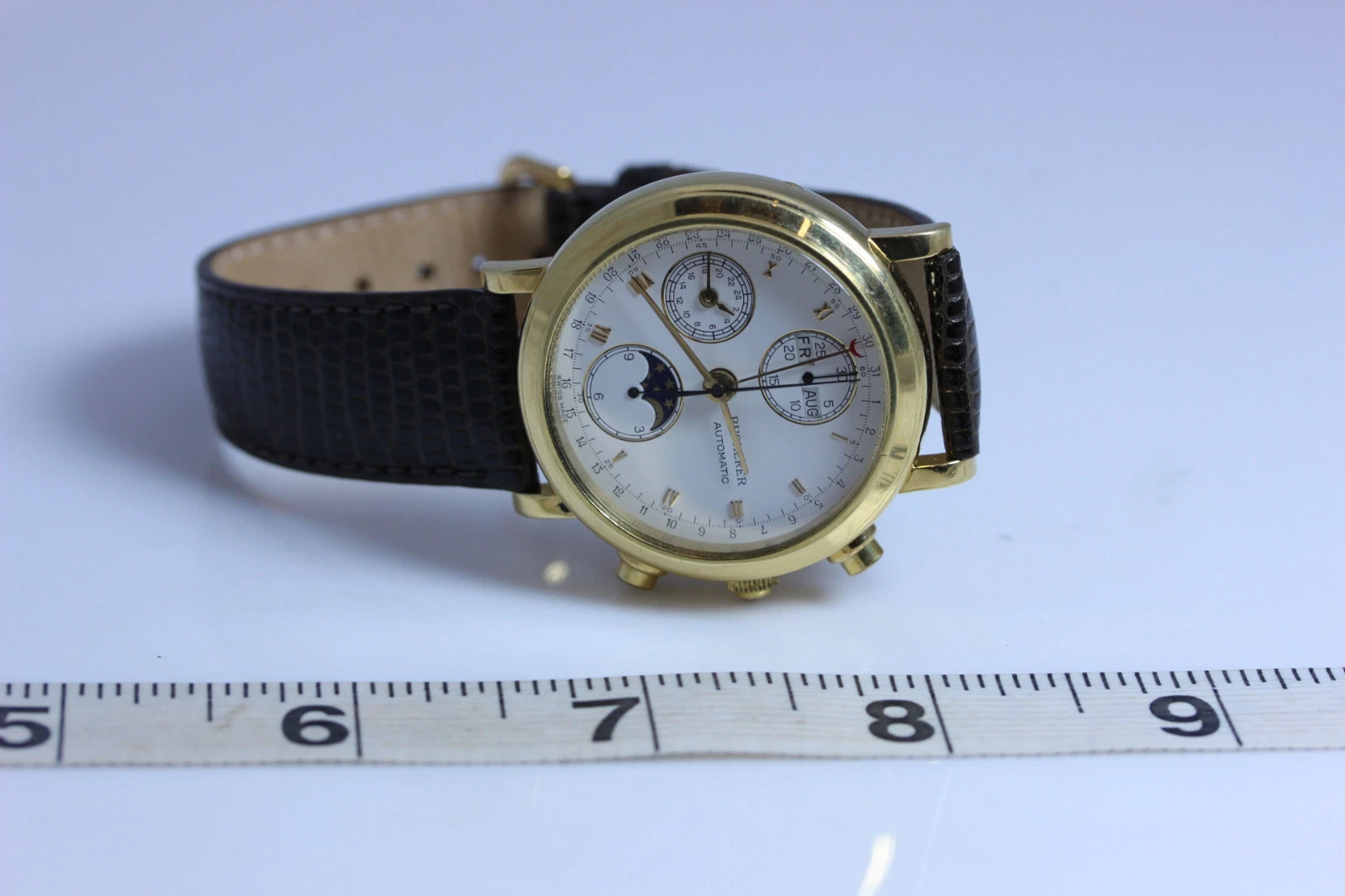 18K Bucherer Automatic Moonphase Chronograph Watch on Lizard Skin Band- 4070