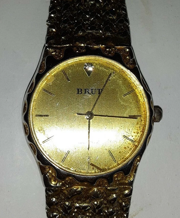 Vtg Retro BRUT Dress Watch HEAVY Gold tone Untested.