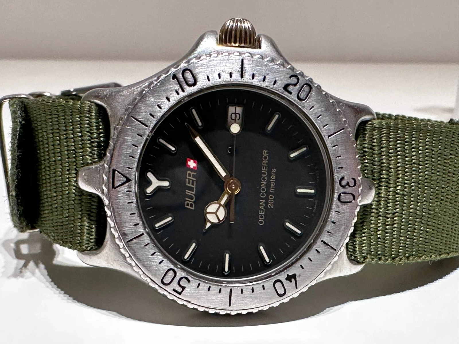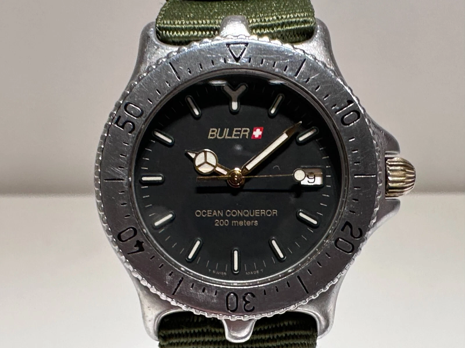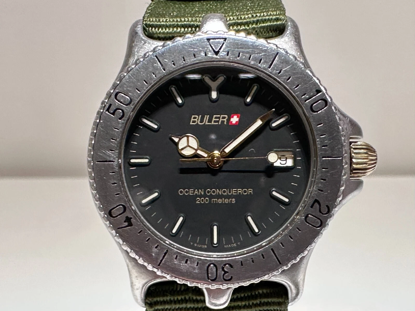 VINTAGE RARE DIVER 200M ST. STEEL SWISS MEN'S WATCH "BULER" OCEAN CONQUEROR