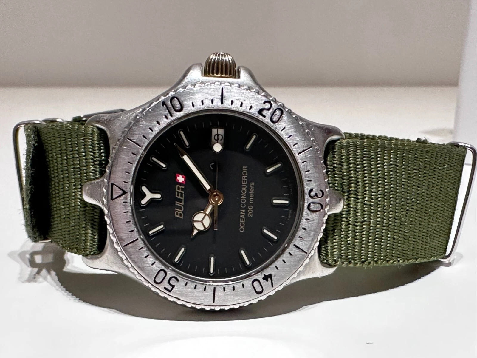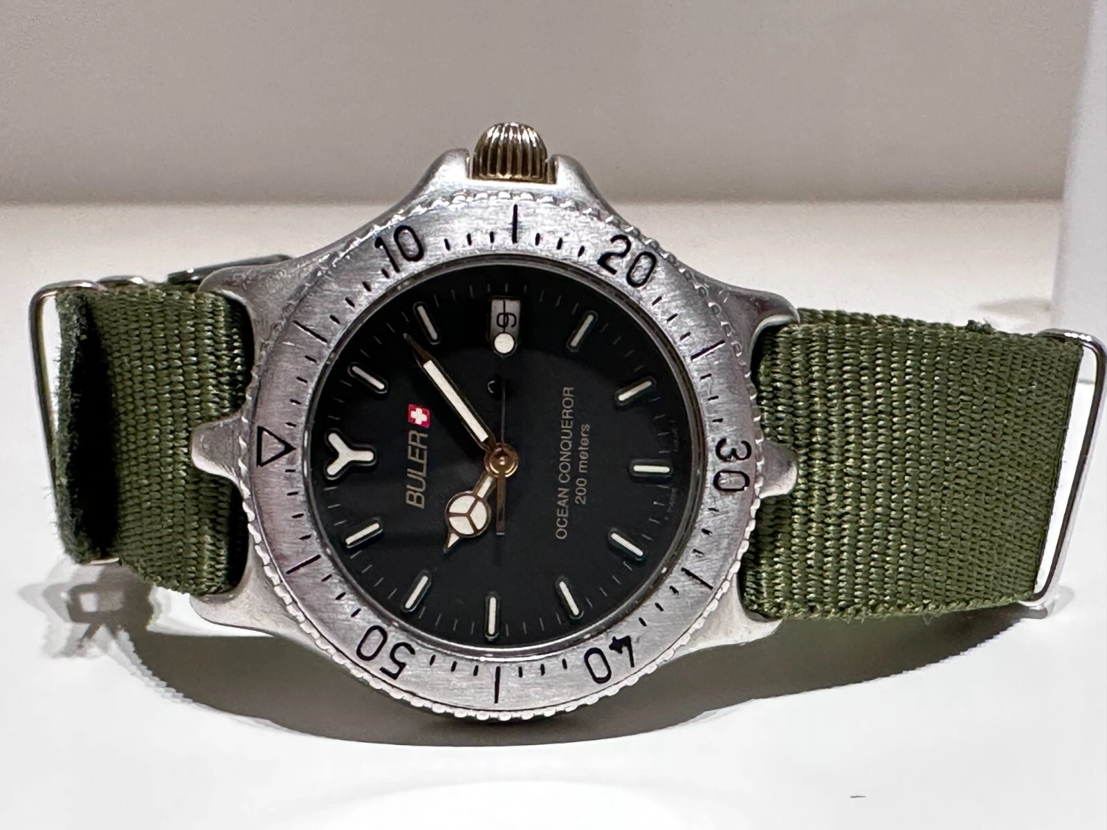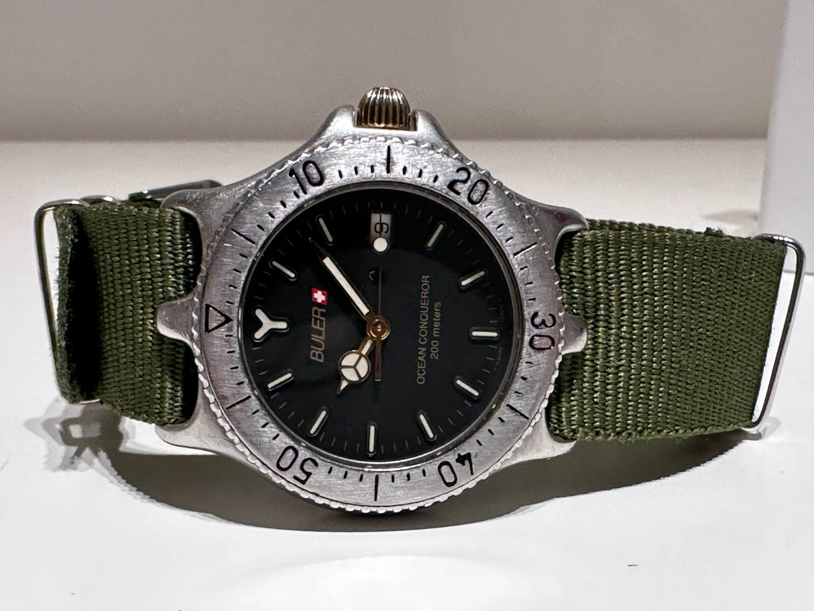 VINTAGE RARE DIVER 200M ST. STEEL SWISS MEN'S WATCH "BULER" OCEAN CONQUEROR