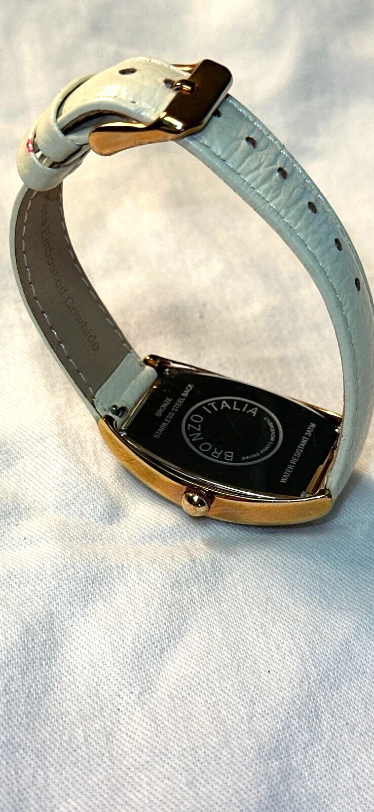 Bronzo Italia Watch Women Rose Gold Tone Black Pebbled Leather Band