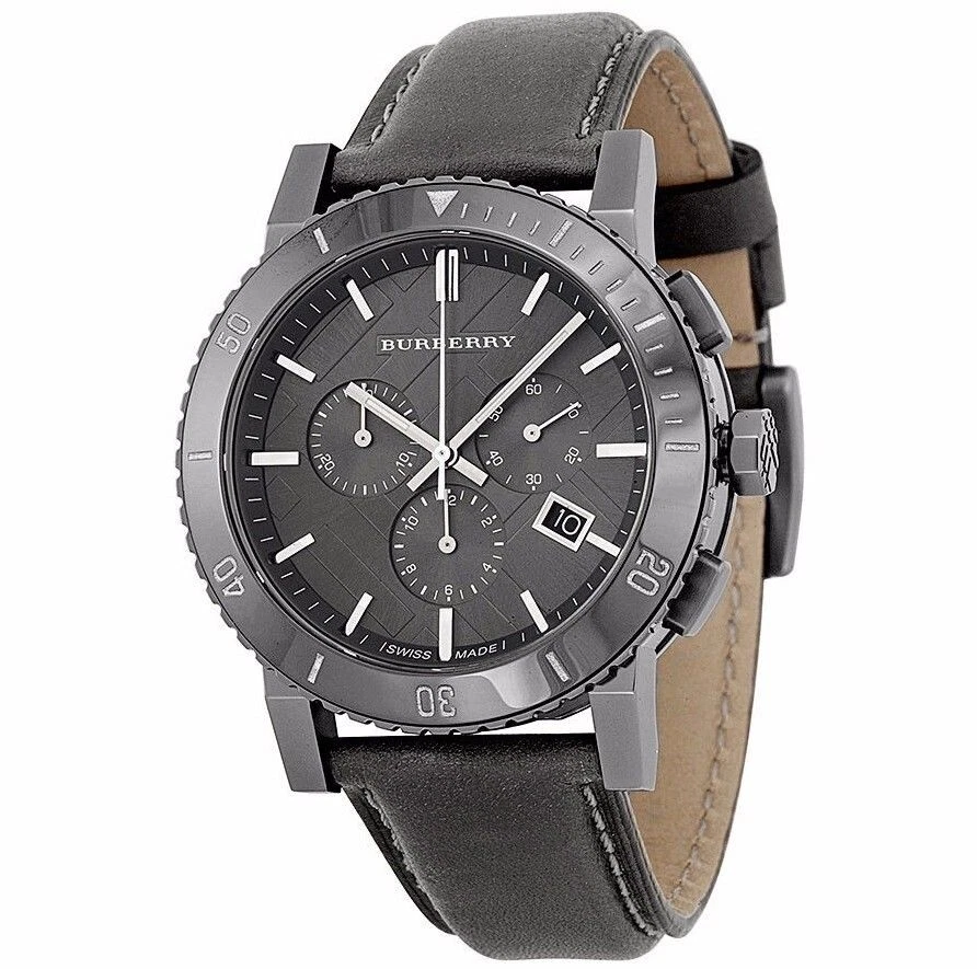 BURBERRY Chronograph Grey Dial Grey Leather Men's Watch $895