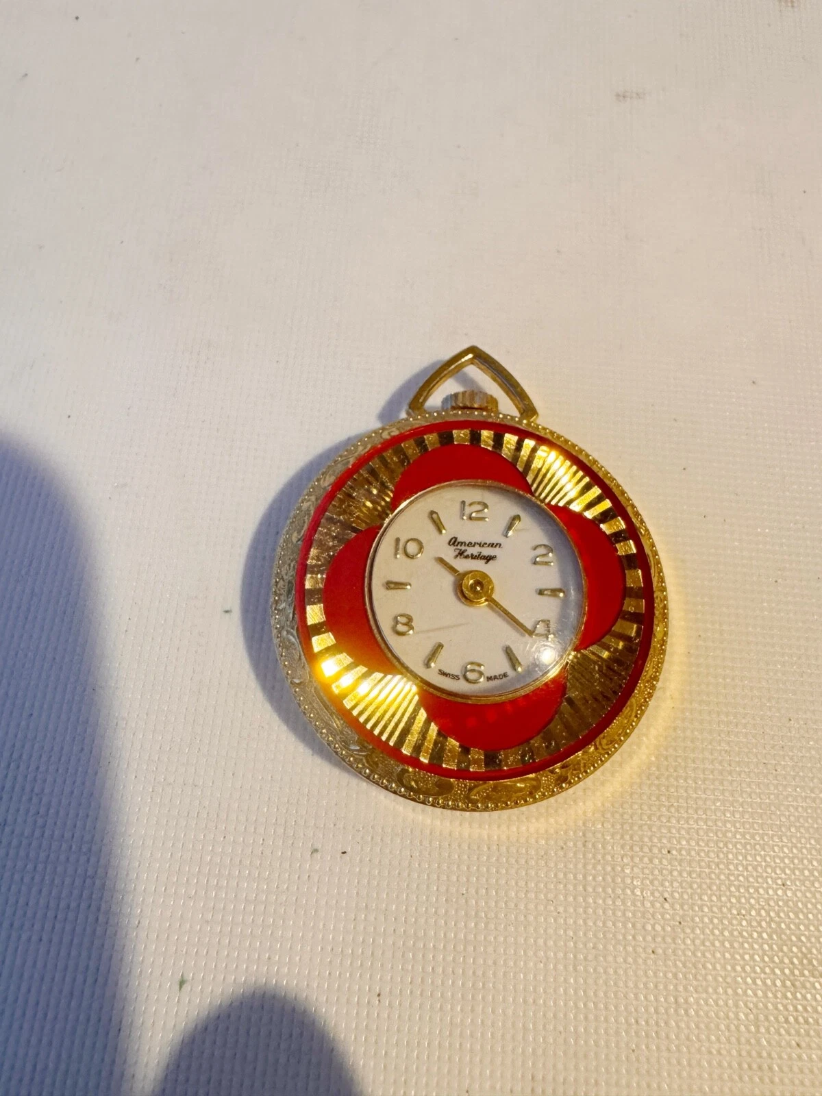 Vintage Swiss American Heritage Women's Pendant Pocket Watch 34mm Case, Running