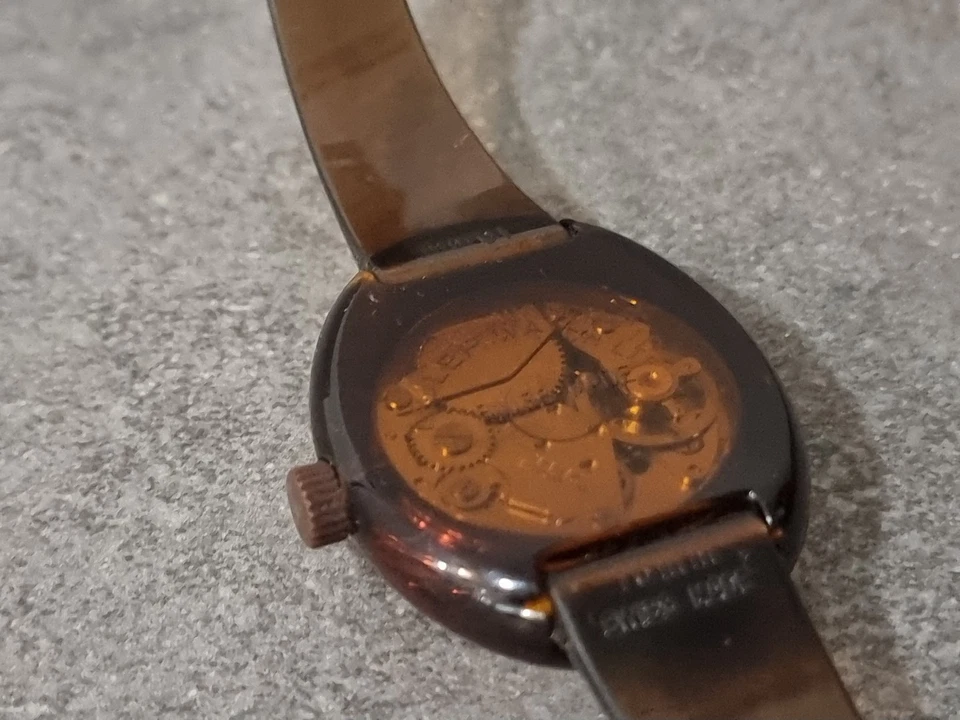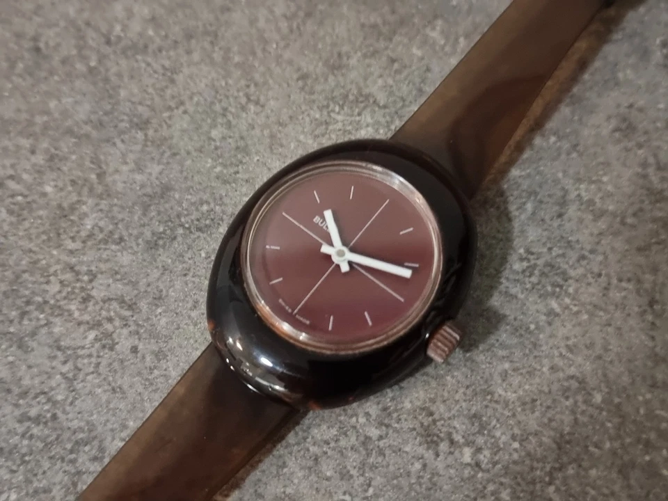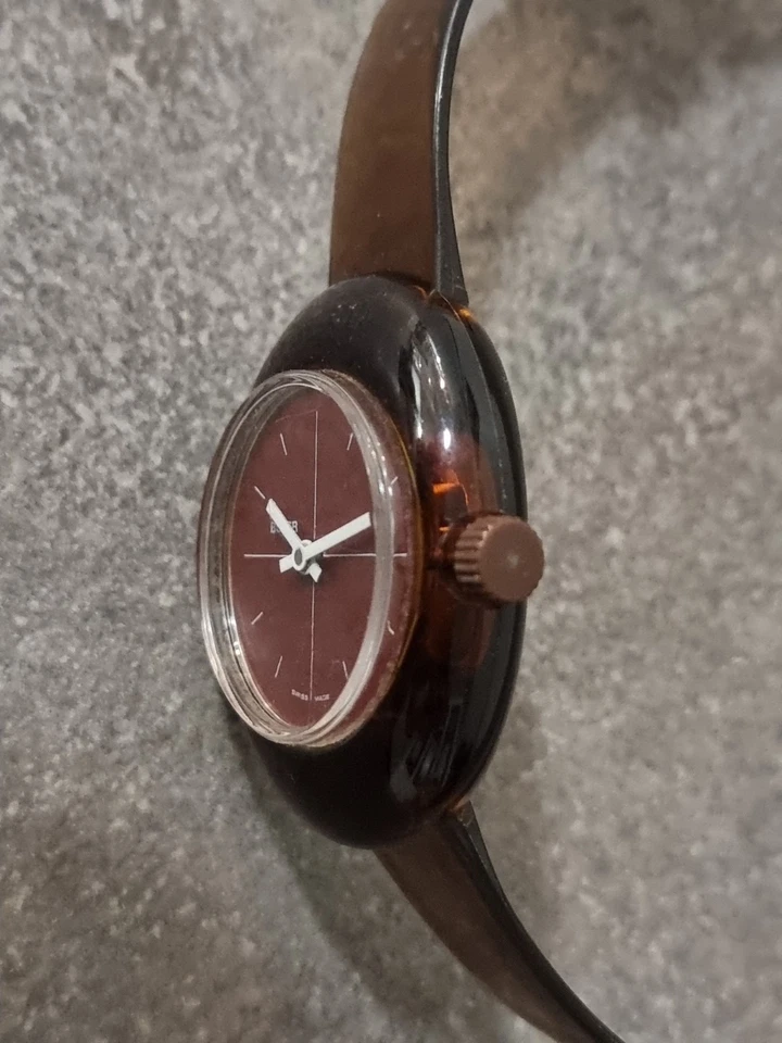Rare Vintage BULER Transparent Brown Plastic Swiss Mechanical Watch All Original