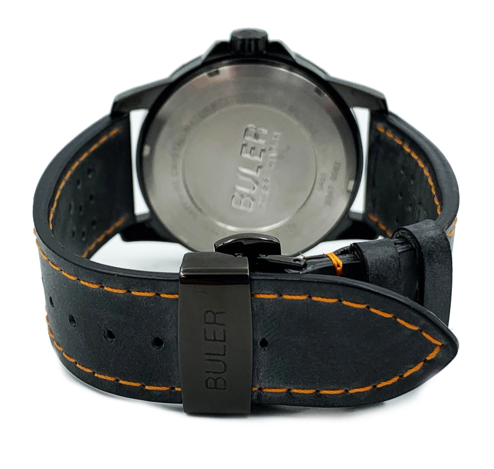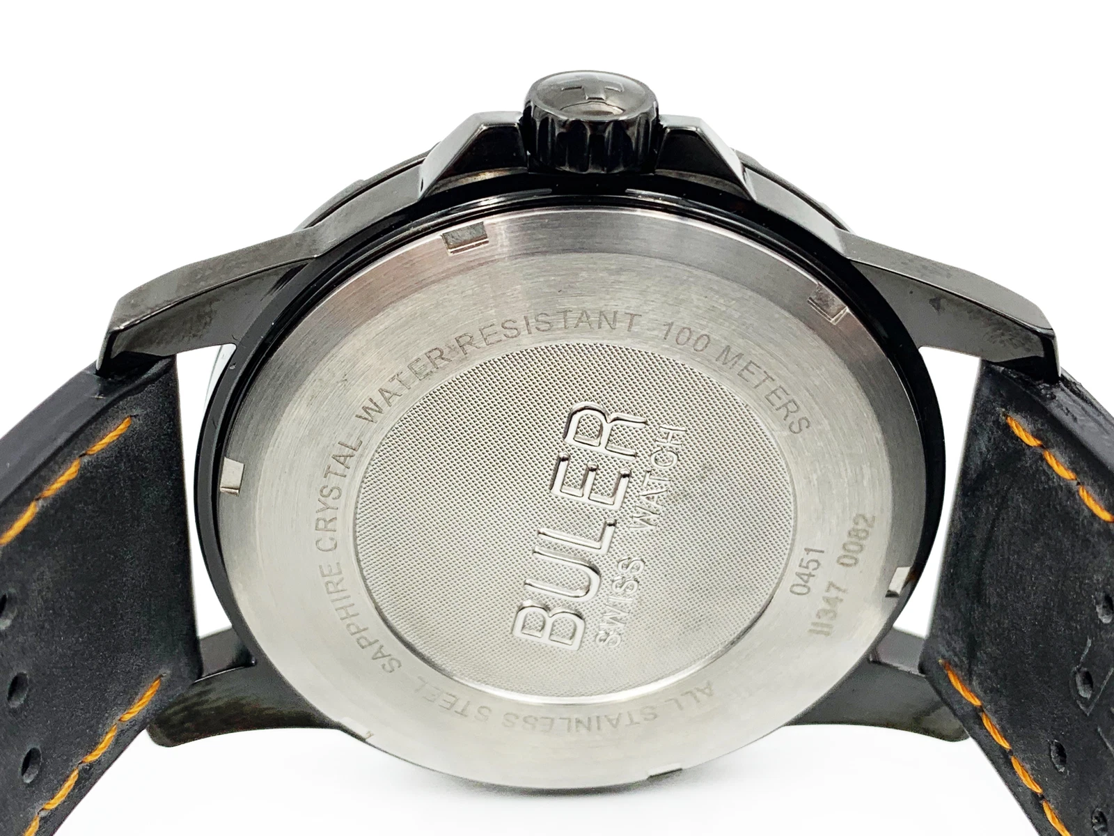 Buler Sea Hunter Steel Black Dial Leather Strap Quartz Mens Watch 45141