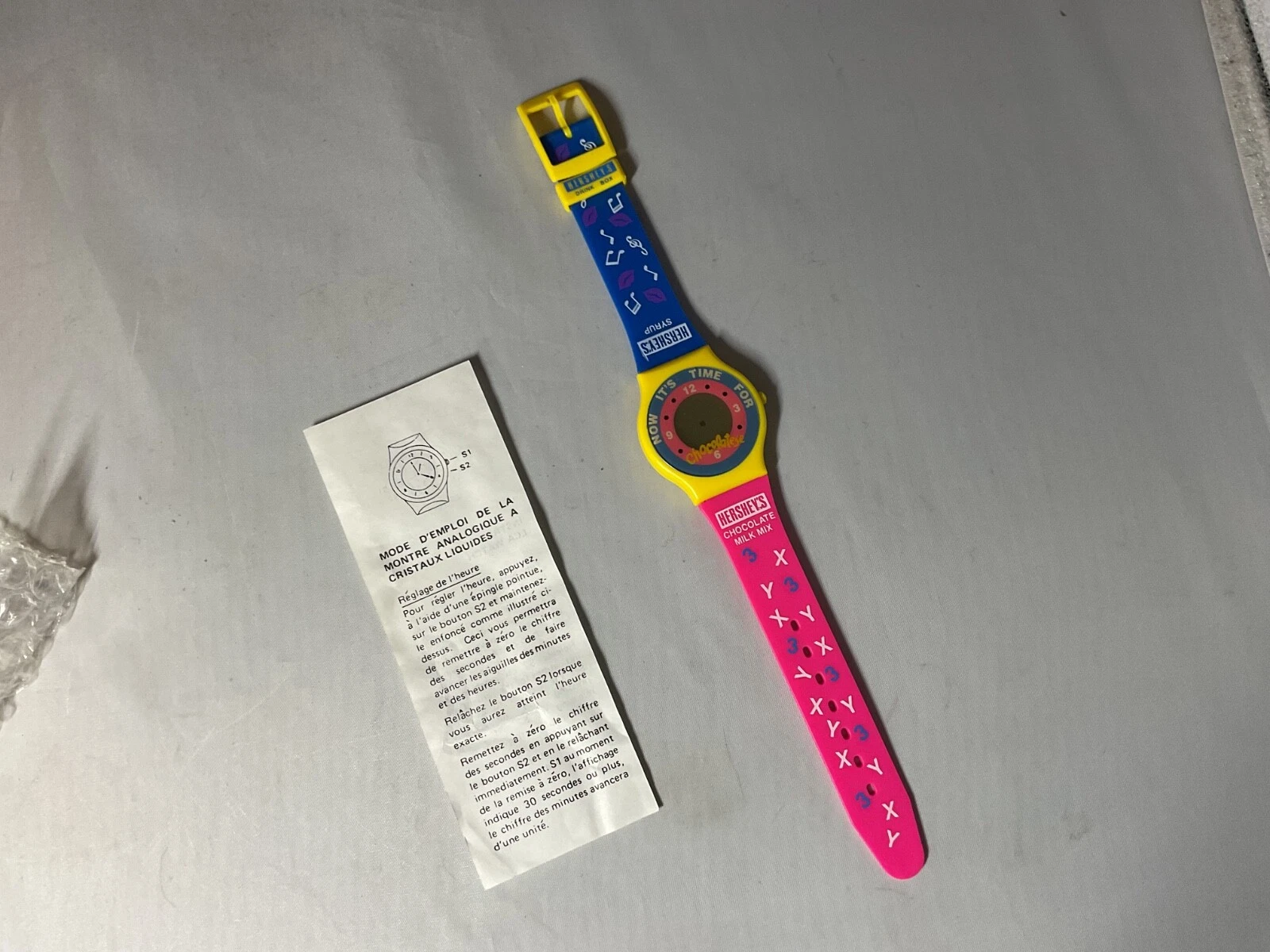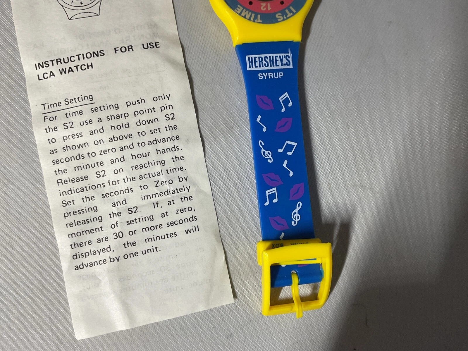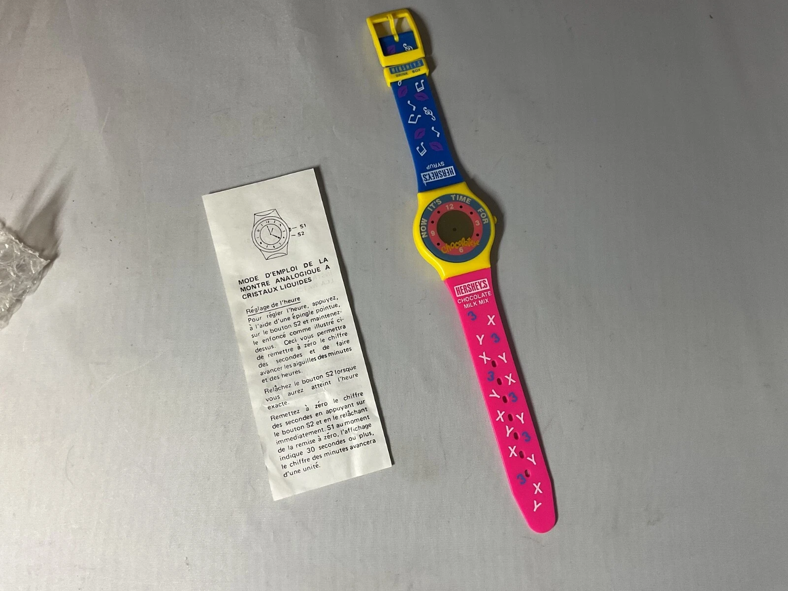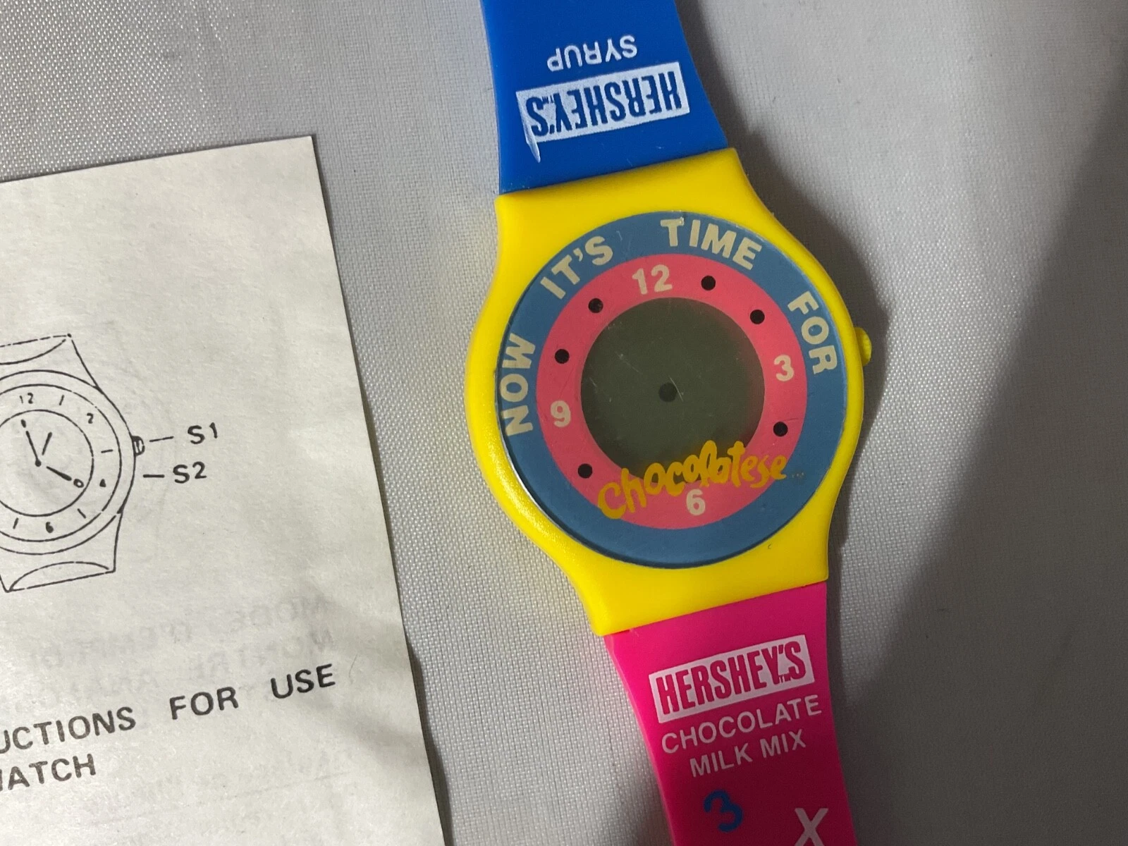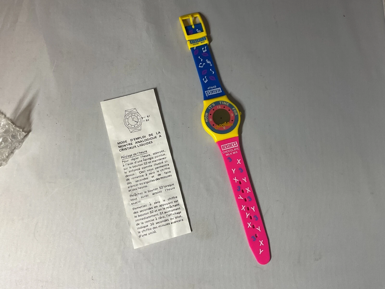 VINTAGE HERSHEYS SYRUP PINK/BLUE BAND WATCH Digital 1990 -B35