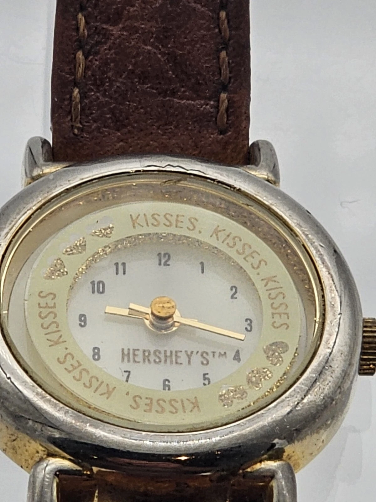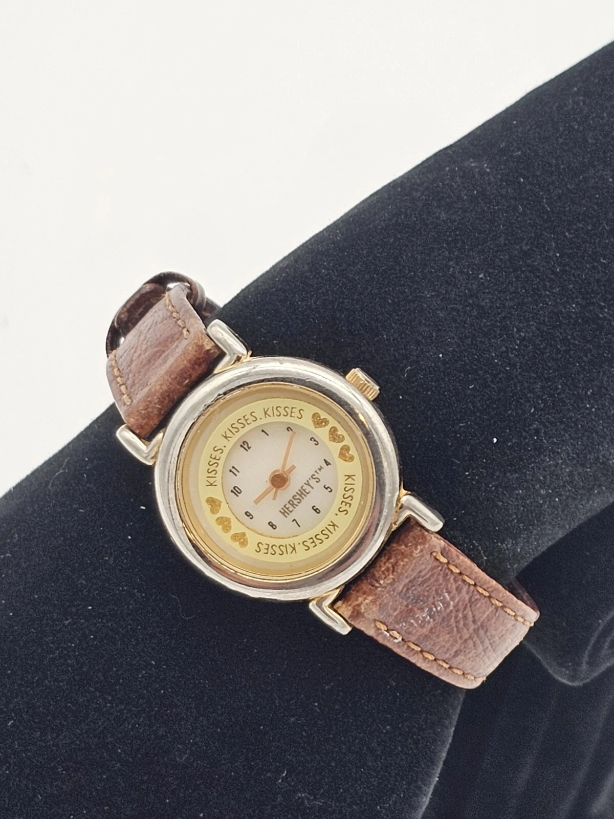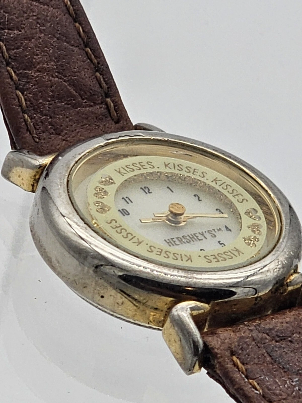 Vtg Hershey's Kisses Watch Women's Gold Tone 1996 Leather Band New Battery