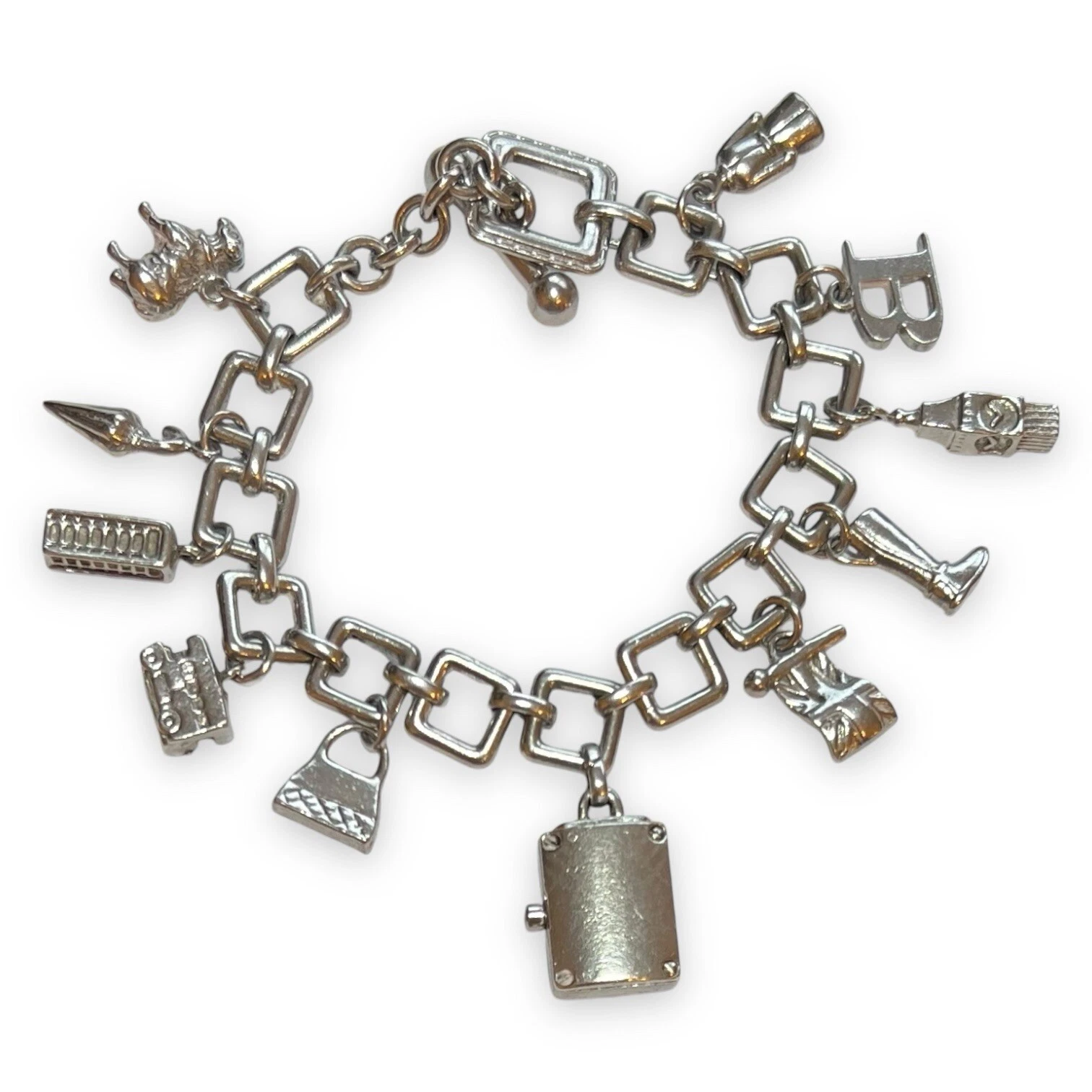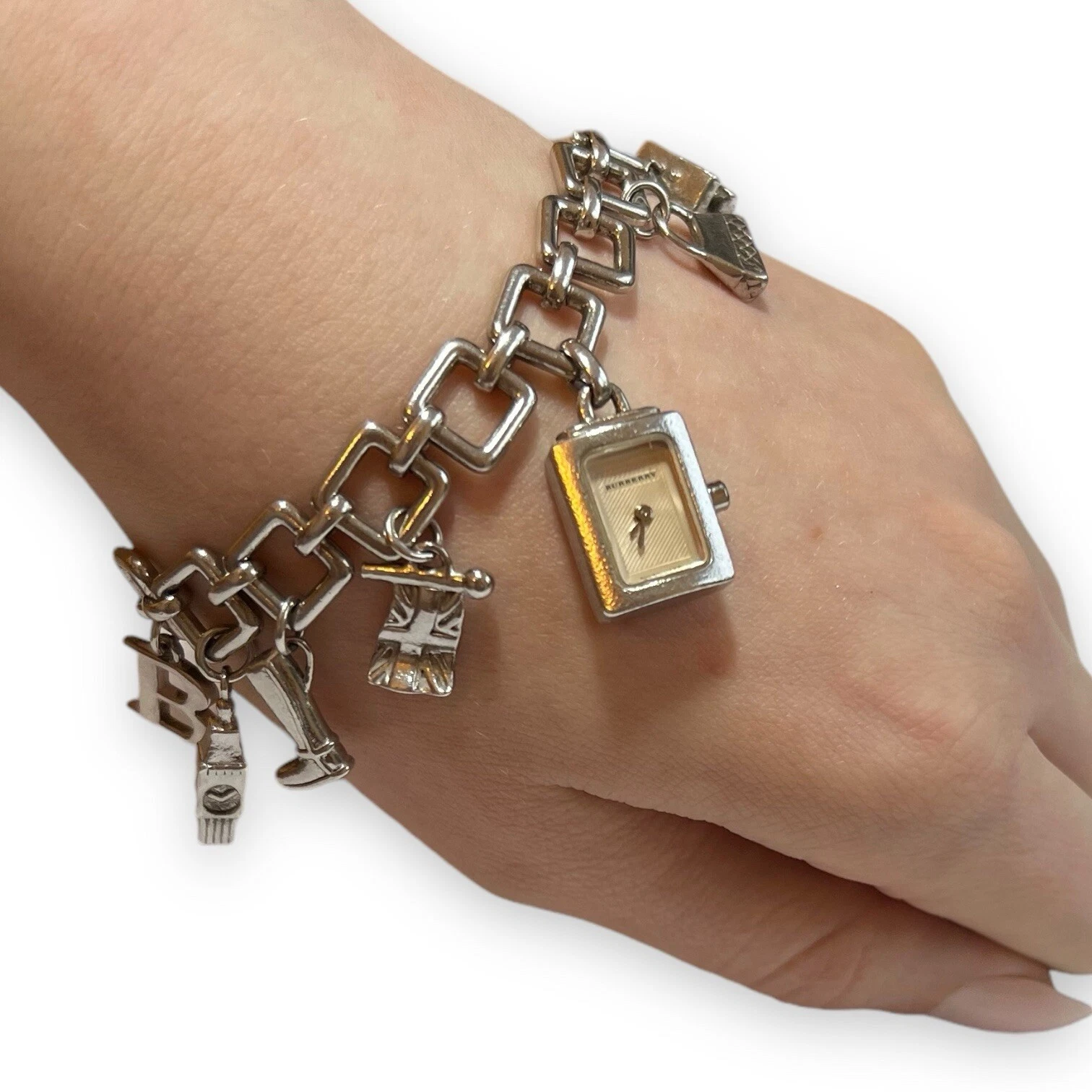 Vintage RARE Burberry Watch Charm Bracelet 925 Silver Y2k 2000s